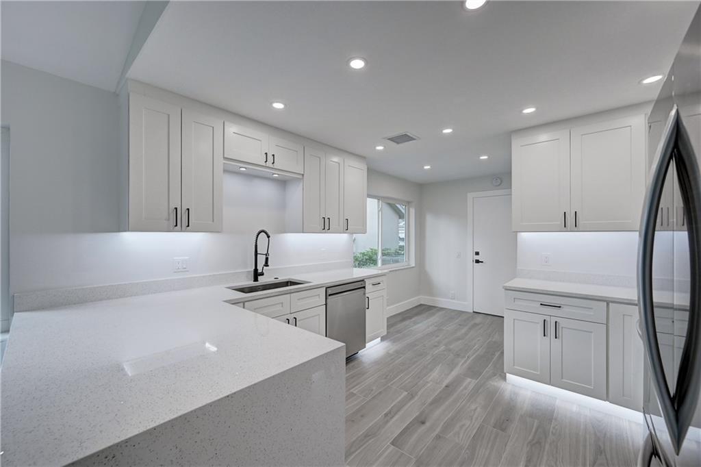 Beautifully & tastefully updated home in the highly sought after Forest Ridge neighborhood. This home shows and looks like a model home with High vaulted ceilings in the main area of the home, with LED recessed lighting through-out. Some of the home features include All New: Tile Flooring throughout, Fixtures, Ceiling Fans, Interior Doors, Kitchen, LG Stainless Steel Appliances, Cabinets, Quartz Counters, Impact Windows/Doors/Marble Sills, Electric Panel updated. Just completely painted Interior & Exterior of the Home. New Electric Garage door opener. Washer/Dryer 2 yr. young, Newer A/C. Sprinkler System Front & Back yard and Ring on Wi-Fi. All water lines are CPVC. Fenced Yard with a charming Patio and new Sod. If New & Modern is what you’re looking for, then Welcome Home!