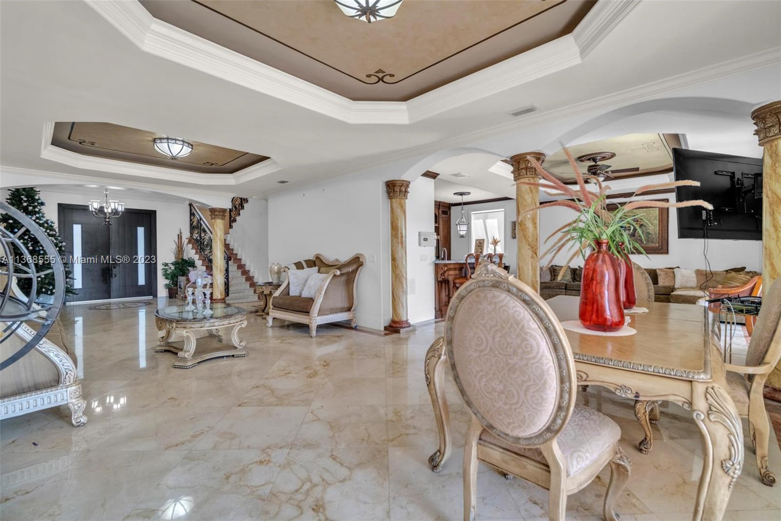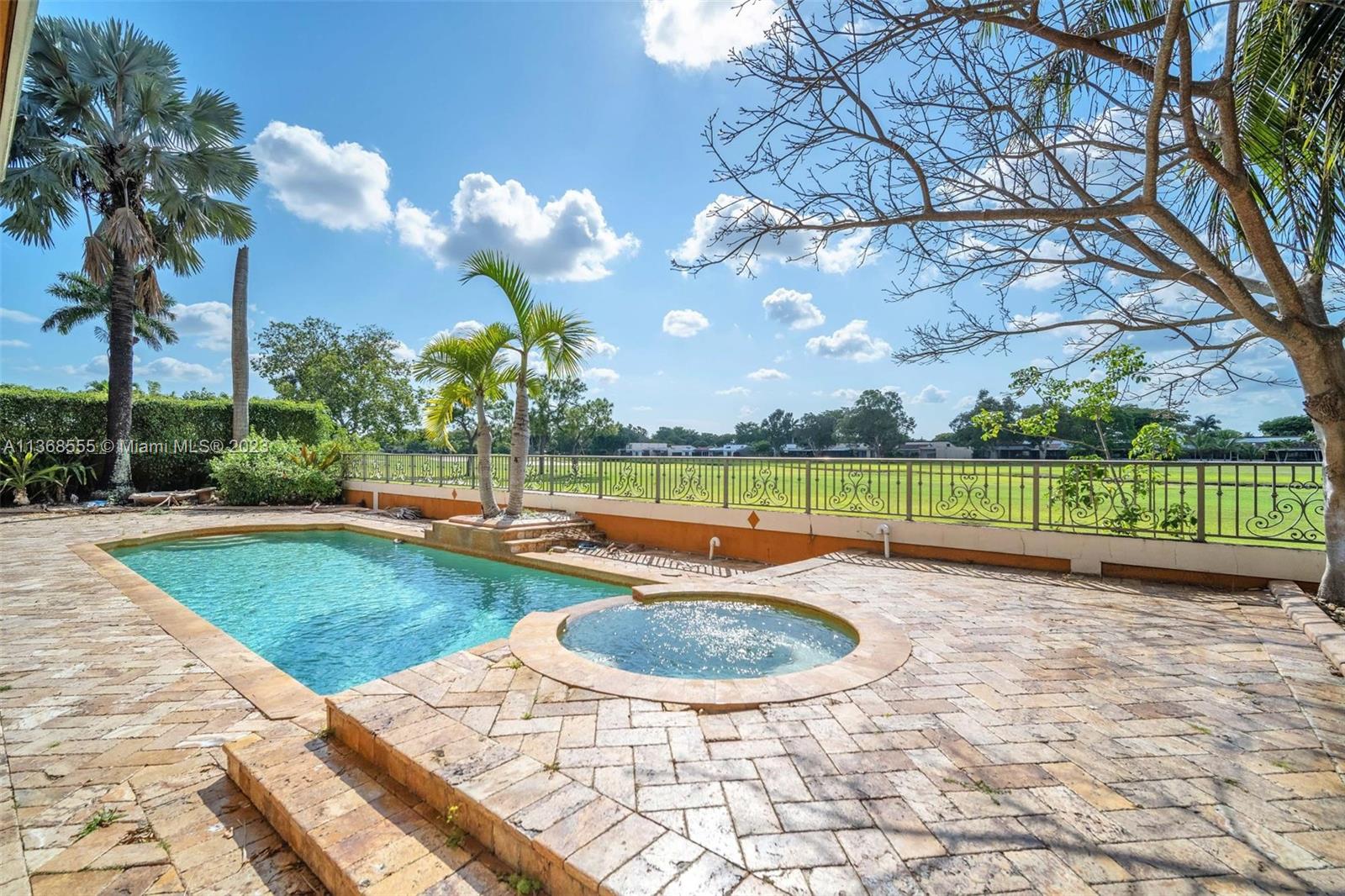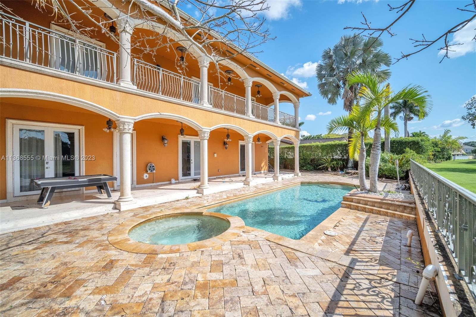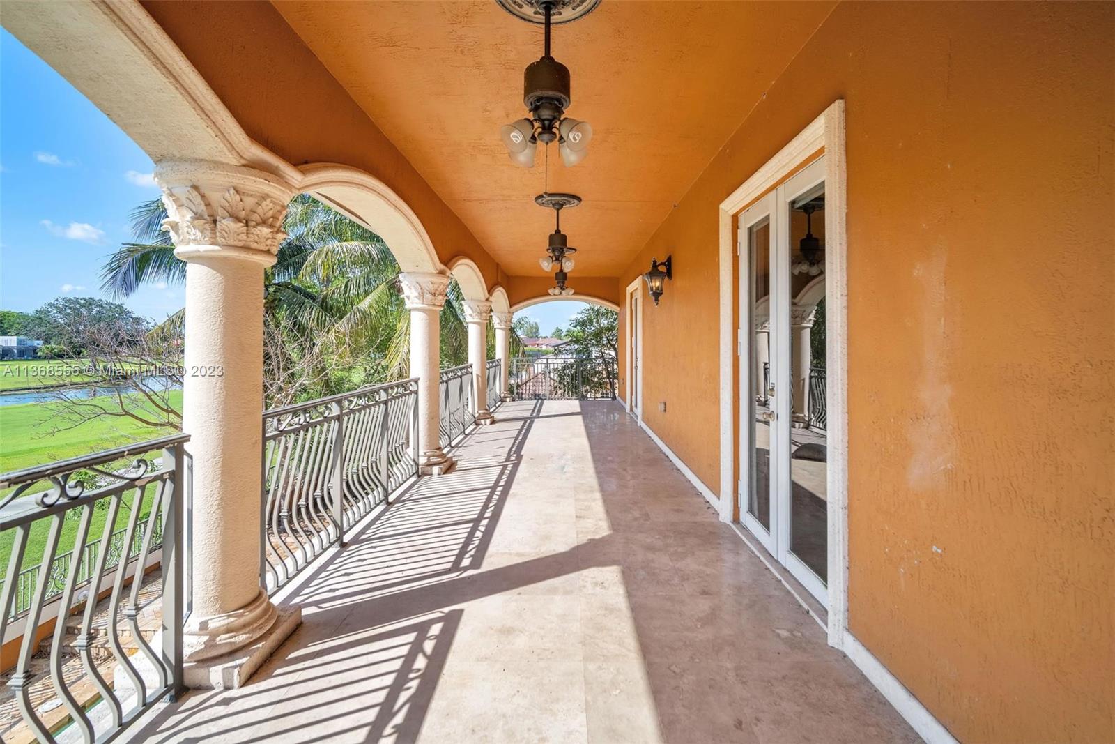 Luxury and elegance throughout this 2-story jewel! Resort style home includes pool & jacuzzi. Watch the sun set. A breath-taking view of the Country Club of Miami Golf Course. The picturesque detail on the ceilings complements the marble floors throughout the home. Custom cabinetries adore the walls of the kitchen which is adjacent to a spacious formal dining area. Each bedroom is oversized and accommodates family members with private bathrooms. This split-level floor plan also has a full downstairs bedroom for your guest to enjoy. Experience sophistication at its best as you open custom French doors leading to an extraordinary huge upstairs master bedroom with an enormous sitting area and equally large bathroom. Large balcony. Welcome home, this is a must-see property!