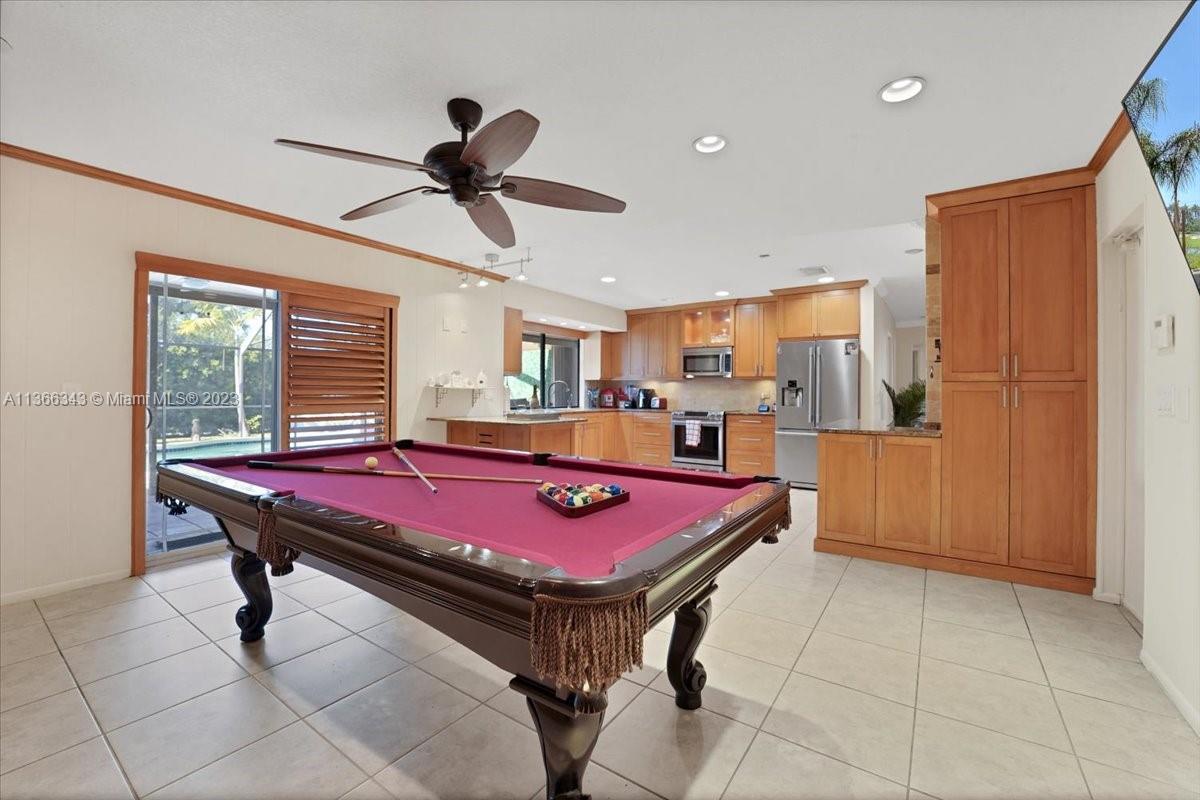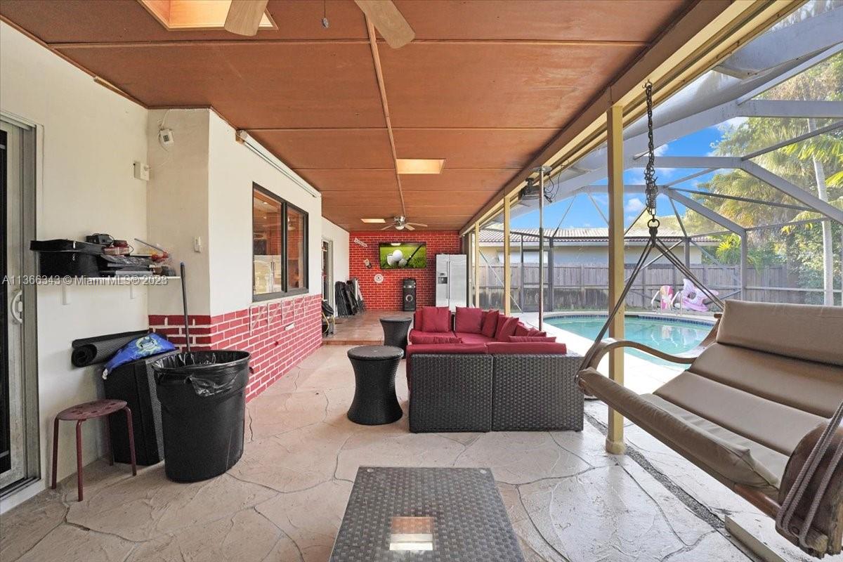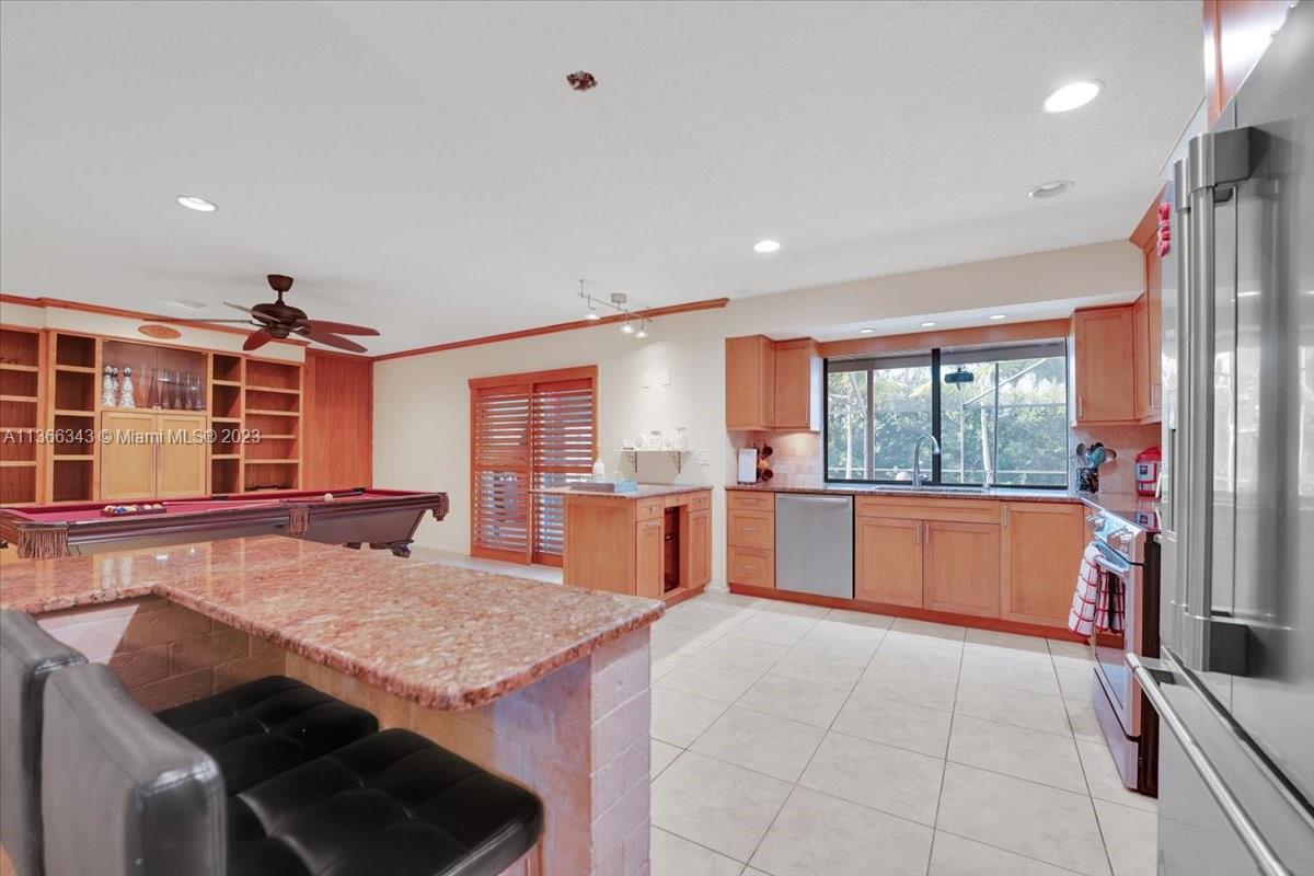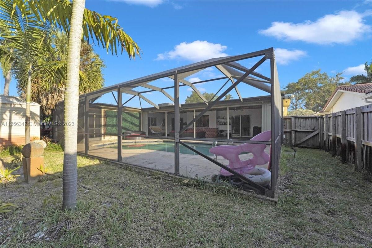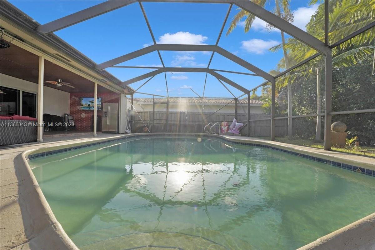 This lovely 3 bedrooms plus den and bonus room located in Hollywood Hills PRIME LOCATION close to world class shopping, restaurants, 5 minutes from Hard Rock and close to Beaches. Inside, the home features soft close wood cabinetry, granite counter tops, and stainless steel appliances in the kitchen. The kitchen also has a pass through window to a 600 sq. ft. lanai, perfect for outdoor entertaining and dining. The lanai overlooks the HEATED POOL with domed screening for added privacy. There is also a backstreet entrance with a concrete slab and gazebo, perfect jet sky or boat.