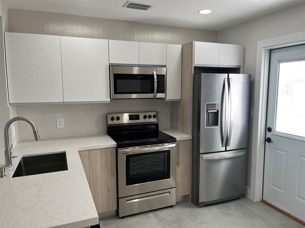 Modern, simple style fully renovated 3/2 with high quality branded kitchen cabinetry. All new bathrooms, flooring, and appliances including upgraded tankless water heater. Beautiful ceiling fans and electrical fixtures. Laundry room with built in cabinets and office area. All wooden fence around the property with double gates for easy access and private pool with patio deck. Shed included with the house.