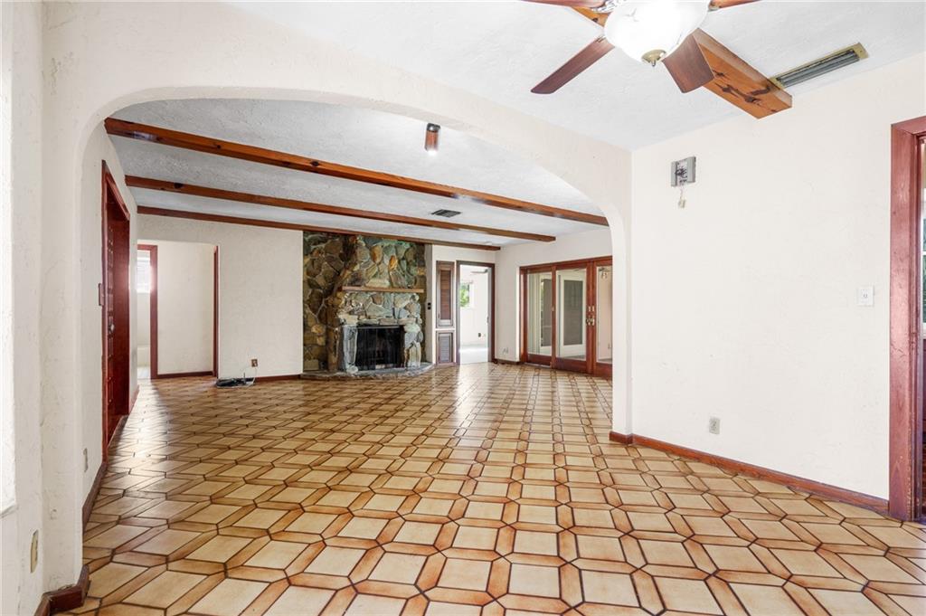 Fireplace Fixer-Upper! This classic home is waiting for just the right investor or remodeler looking for a blank slate. So much potential in this 3 bedroom 2 bath pool home with full-house generator and bonus room. Kitchen is updated with quartz countertops and new shaker cabinets. The rest can be transformed into your dream home. Beautiful screened pool area and outdoor barbecue. Corner lot has parking on both sides. Primary bedroom has a sauna. New electrical and panel, new water heater, newer shutters and storm windows, two AC units, one new.