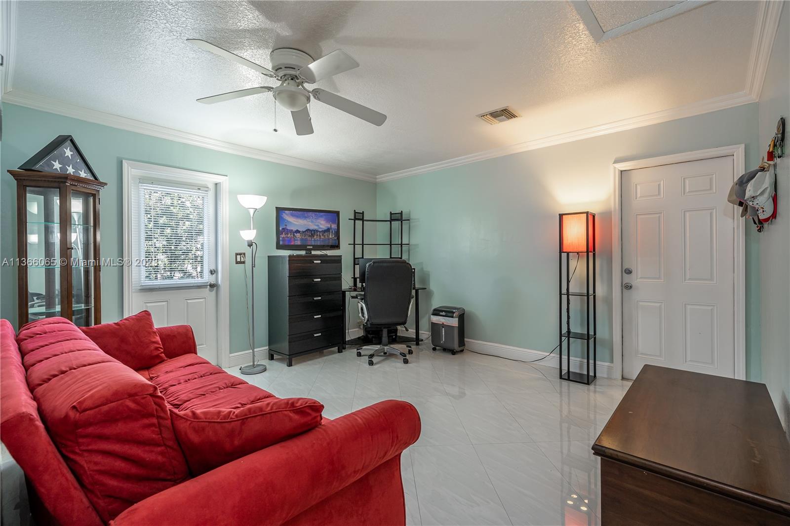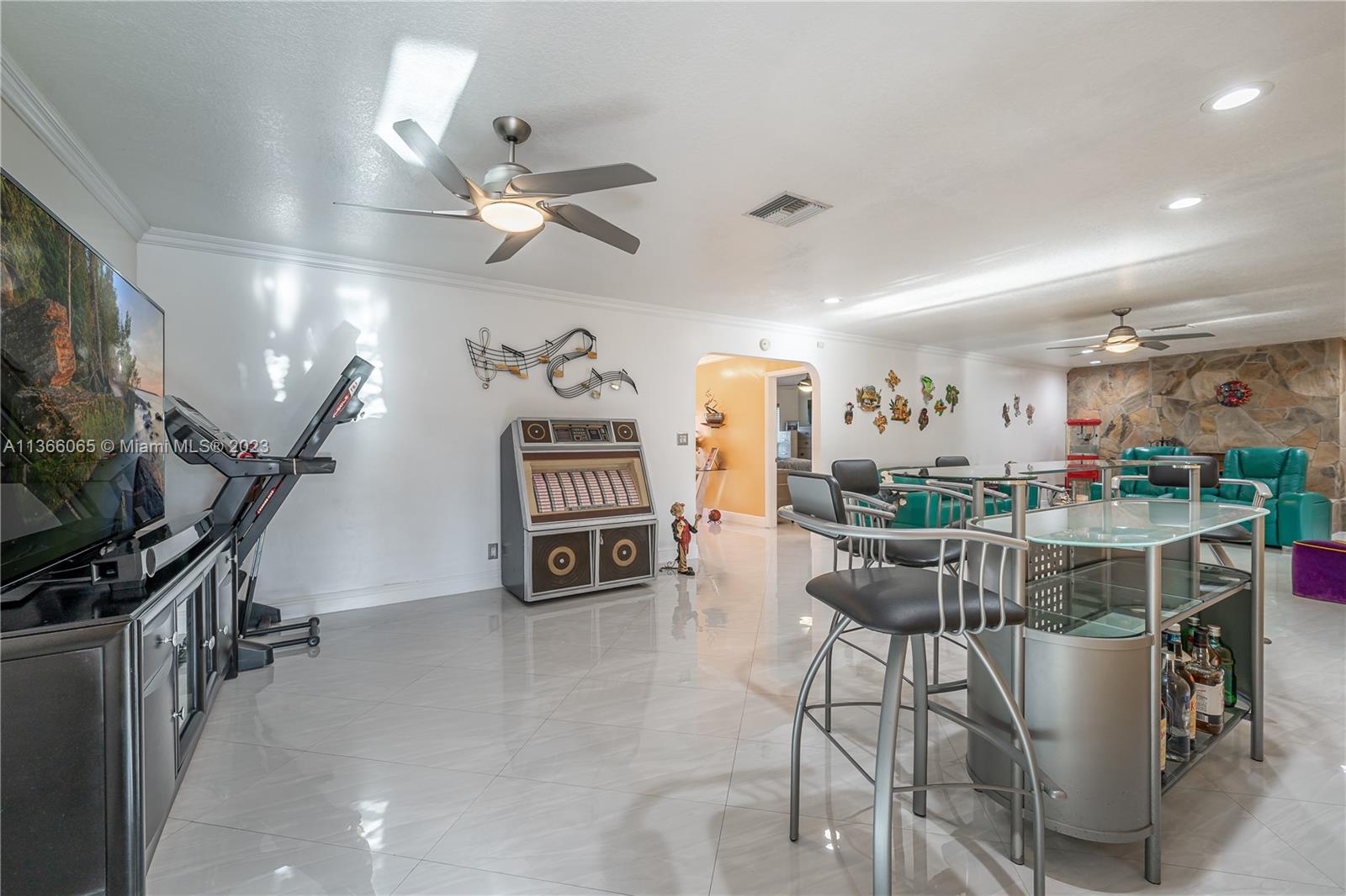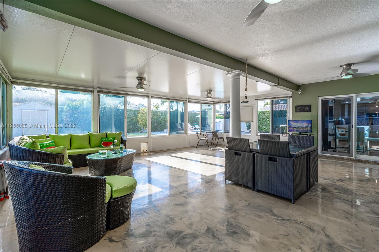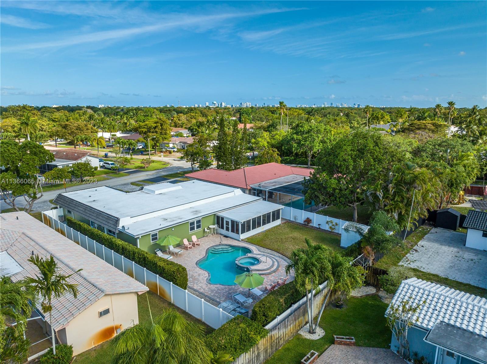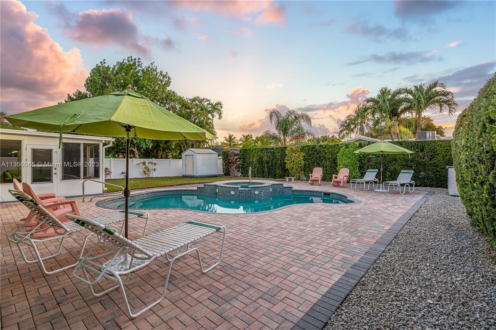 If you like to ENTERTAIN.... this ONE STORY 4 bedrooms 2 baths SINGLE FAMILY w/ Salt Water HEATED POOL & JACUZZI is for YOU!! Sitting on MORE THAN 1/4 acre, this home w/ green space, PVC FENCE, ENCLOSED FLORIDA ROOM, Sprinkler System, 2 car garage, extra freezer & GIGANTIC PAVED CIRCULAR DRIVEWAY will take your breath away! This house has it all: HURRICANE IMPACT WINDOWS AND DOORS including garage door, LARGE & MODERN KITCHEN, STAINLESS STEEL APPLIANCES with extra oven, PORCELAIN TILE in all areas except kitchen, dining & enclosed patio which has epoxy. Roof was replaced in 2012. Propane GENERATOR for all the house installed in 2018. AC was replaced in 2021. Pool Pump was replaced on 2020. Both Bathrooms have been remodeled as well. Basically OVER 12,237 sq.ft. of perfection & NO HOA!