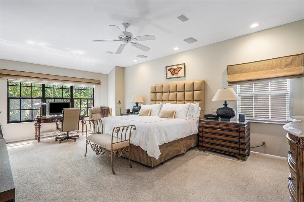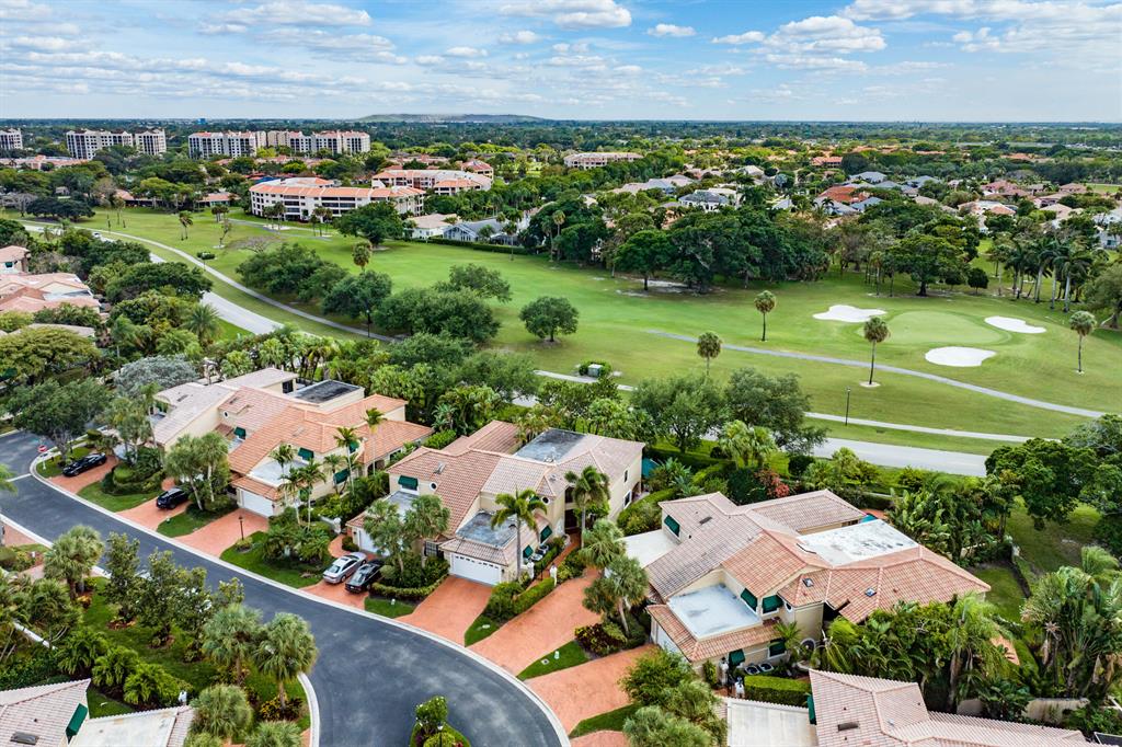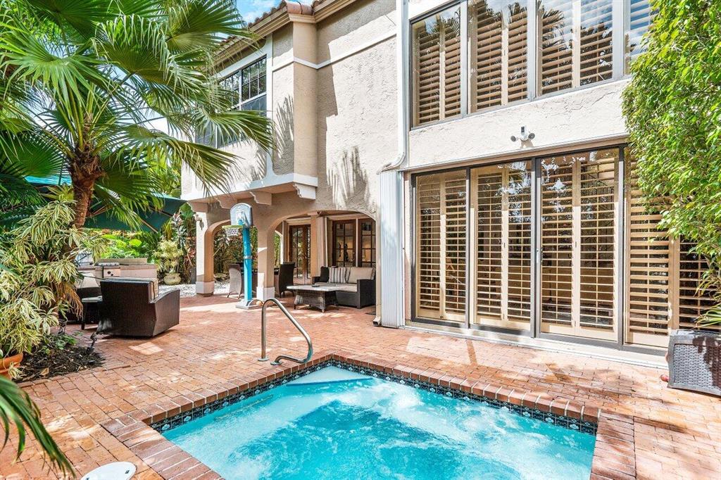 Elegant!This 3 bed,3 bath 2 car garage townhouse w over 2700 sq ft is located in Boca Pointes very distinguished subdivision of Caravelle.This spacious home is light,bright & beautifully updated. Eat in kitchen features white cabinets, very unique stone countertops along w top of the line SS Bosch appliances.The dining & living room is great for entertaining w prewired sound syst. One of a kind Chinese style wall unit ,inside, a bar/entertainment center w storage.Bdrm on 1st floor currently used as an office. On the 2nd fl is very spacious Primary bdrm ,w 2 walk in closets. Beautifully updated bathrm. 2nd bdrm ensuite updated bathrm. Outback is a peaceful tropical retreat with BBQ & heated Jacuzzi. Complete storm protection Impact Glass & Shutters,Communtiy Pool.