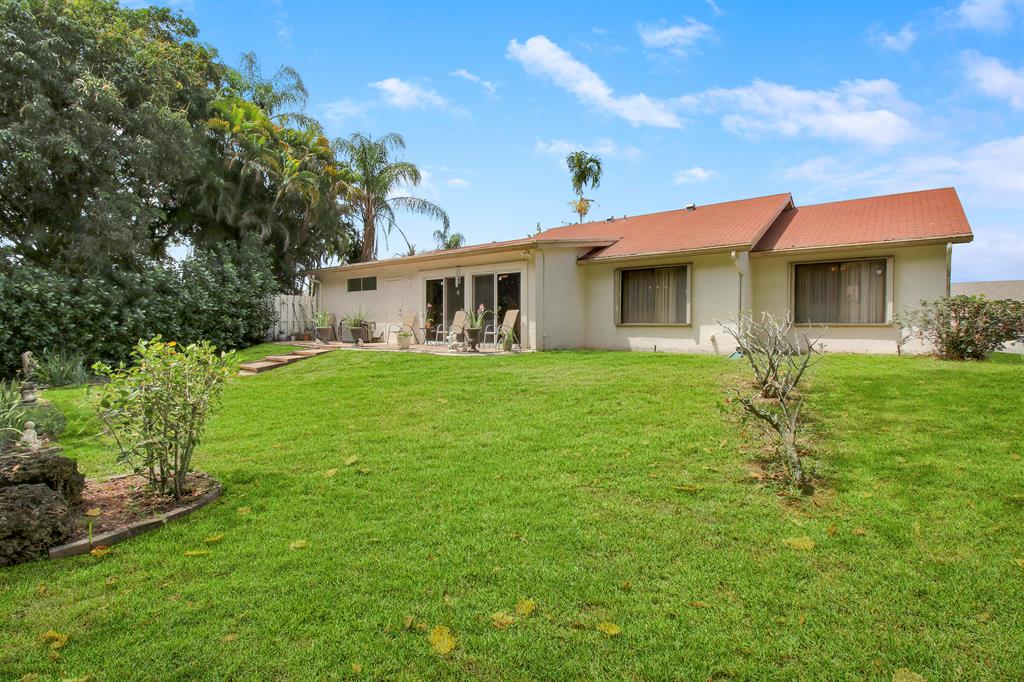 This lovely 2 Bedroom/2 Bath home with a 2 car garage is situated on a quiet cul-de-sac in the sought-after community of Rainberry. The split bedroom floor plan offers privacy, while the open design of the living and dining area creates a comfortable space for entertaining. The kitchen seamlessly flows into the family room and features ample counter space and storage.Step outside onto the open patio to enjoy the beautiful green space, perfect for relaxing or hosting barbeques. The private yard is adjacent to the gorgeous Boca Lago Golf Course, providing a stunning view.Rainberry Park is a wonderful community with low HOA fees and an array of amenities.