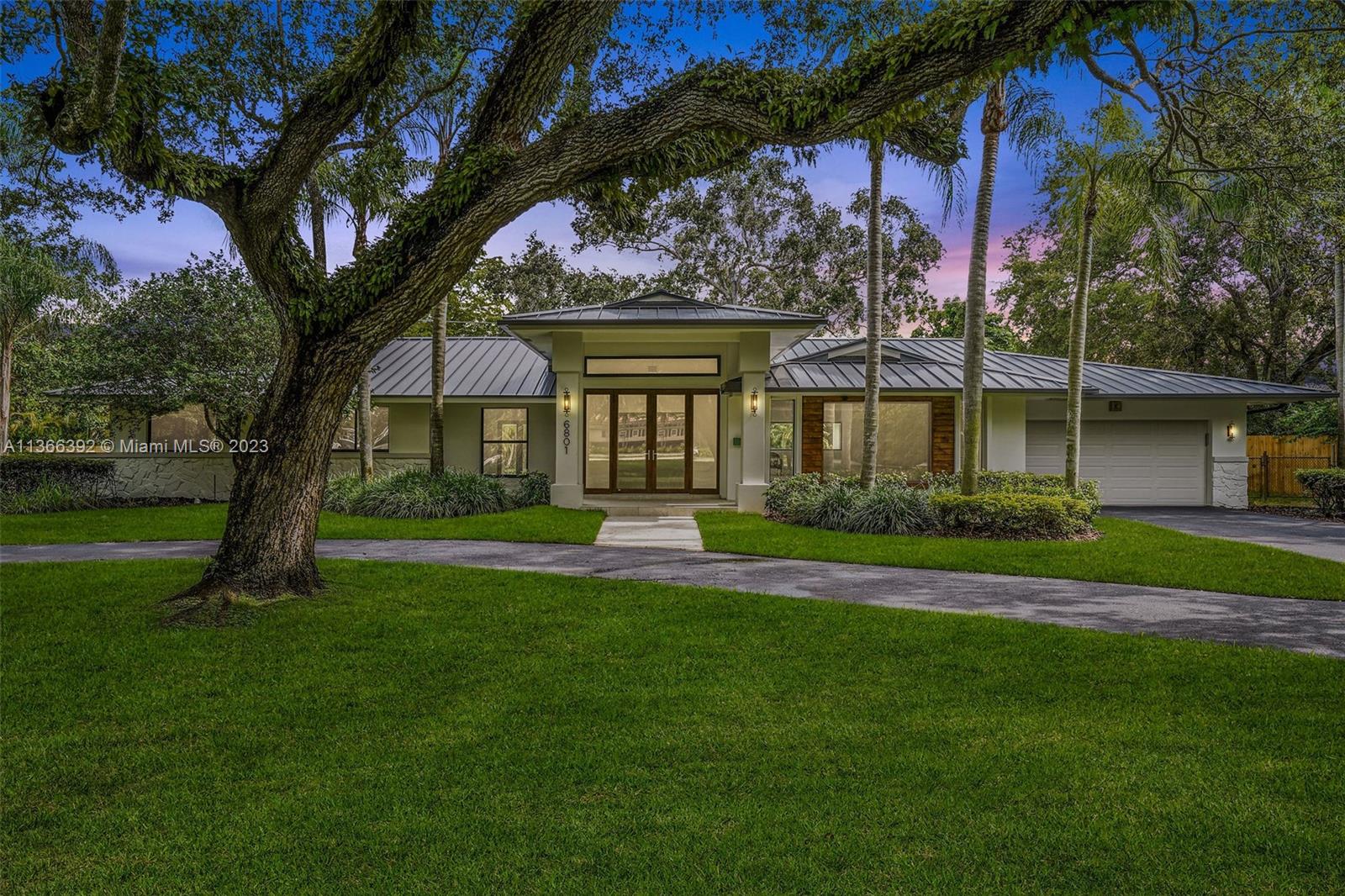 This one-story 4,233 sf Pinecrest residence is nestled on an impressive 37,897 sf lot with completely renovated 5 bedrooms and 3/1 bathrooms. The split floorplan features 2 master suites, spacious flow-through layout including foyer entry, formal living, family room, dining room, breakfast nook, with volume ceilings throughout. All new Kitchen with Bosch appliances overlooking the large covered patio, swimming pool with surrounding artificial turf, and additional expansive grounds and mature trees. New metal roof, impact windows and doors. 2 car garage. Great location – situated minutes from A+ rated schools, dining, and expressways.