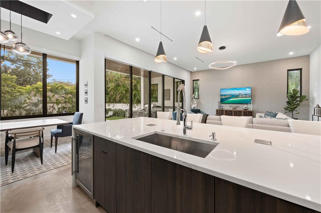 Beverly Hills chic meets tropical Zen retreat in a Rio Vista modern masterpiece! With 4BR/4BA plus a home office and over 3,300sf of living area. This new construction gem is a must see that is sure to dazzle as it offers complete Smarthome technology, 23"x47" porcelain tile flooring, impressive volume ceilings, custom electric shades, dual zoned AC, whole house gas generator and dramatic pocket impact sliding doors opening to a custom heated salt-water pool w/waterfall, autofill, automated lighting & Omni logic compatibility! Gorgeous open kitchen featuring quartz countertops/backsplash, 10' center island w/waterfall edge, under cabinetry LED lighting & Thermador appliances including a 5 burner gas range & 24 bottle wine refrigerator. Finally a home that truly does have it all!