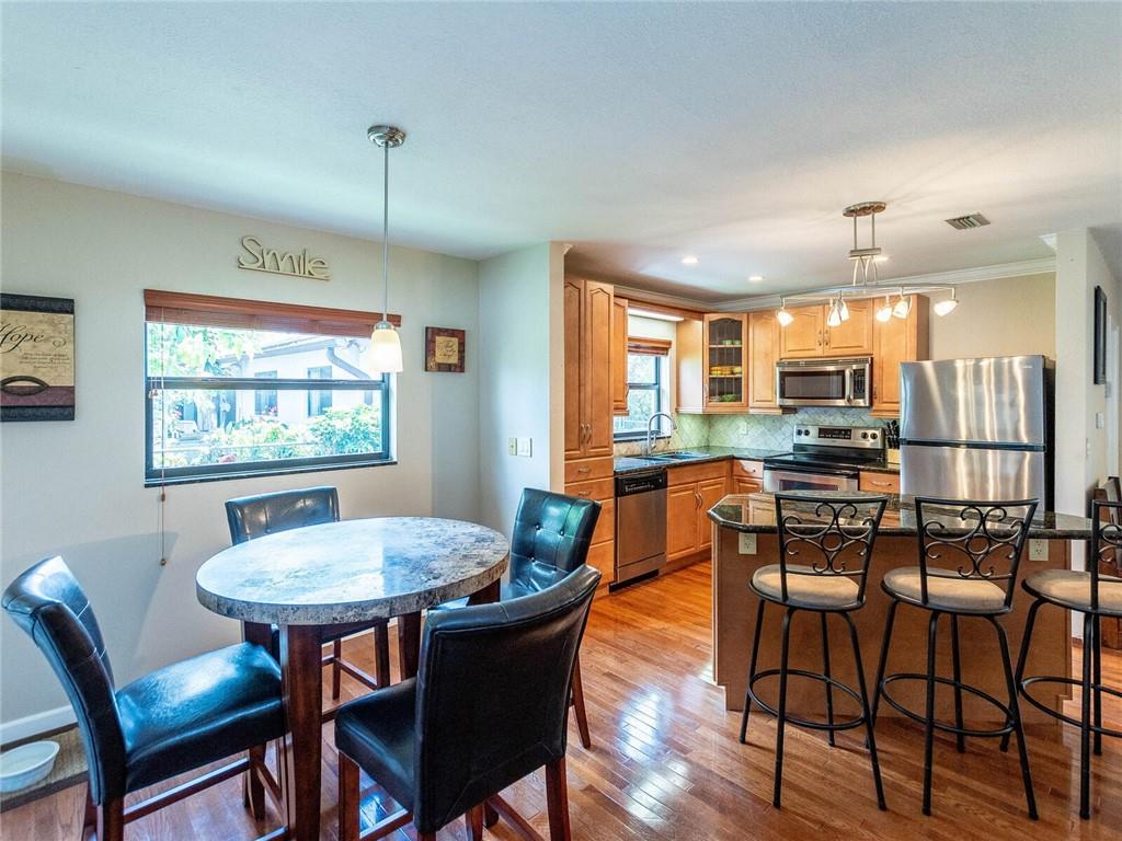 Located in Royal Palm Pointe with NO HOA! Nicely updated with REAL HARD WOOD FLOORS, Kitchen with custom wood cabinetry, granite counters and stainless steel appliances. Open layout & recessed lighting. ALL IMPACT WINDOWS AND DOORS & generator hookup. Both bathrooms are updated with bowl sinks, marble tile and frameless shower doors in primary. Oversized FLORIDA ROOM great for entertaining and cookouts. Spacious backyard big enough to add a pool and completely fenced yard. Roof 2005, Trane AC 2013, Water heater 2018. Don’t miss this one!