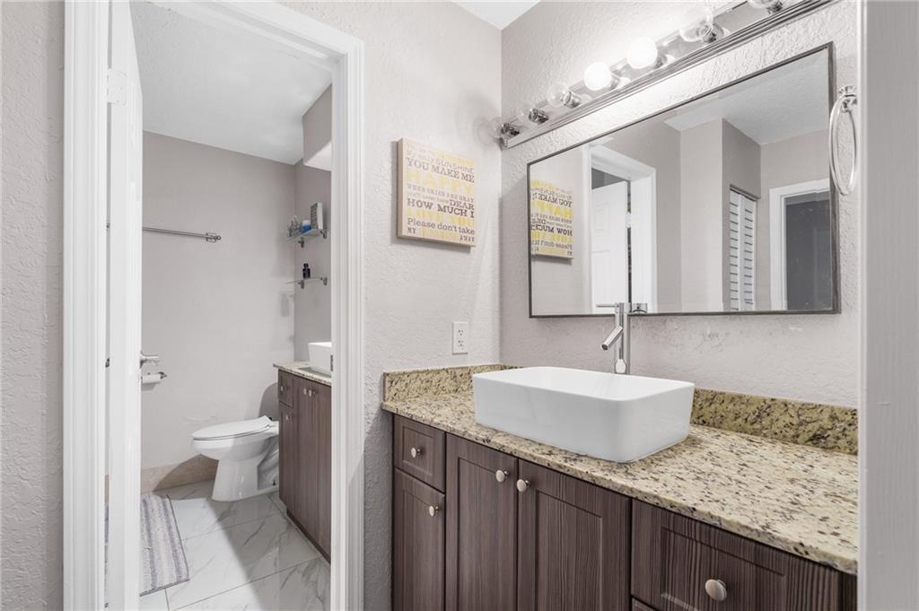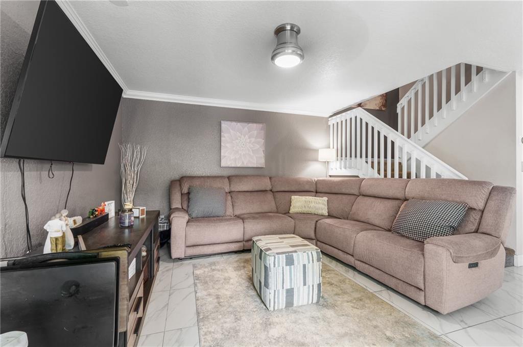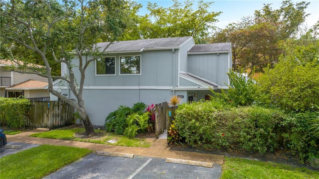 Will not last!! This modern 2/1.5 Townhome features newer stainless steel appliances, updated cabinets, backsplash, and granite counters. Ceiling has knockdown texture, crown molding and recessed lights. Kitchen has vaulted ceilings with skylights. Walk into your private front garden patio and relax under the beautiful gardenia tree. Enjoy your second outdoor area off of the dining area or balcony from Master bedroom upstairs. Tile floors downstairs throughout and carpeted bedrooms. Nest thermostat and shed stay with house. Private driveway for 2 cars. Beautiful Golf course, pool and tennis just steps away. Association covers the Roof. BRAND NEW AC, water heater is 2 years old and roof is 3 years old. Come check it out today!