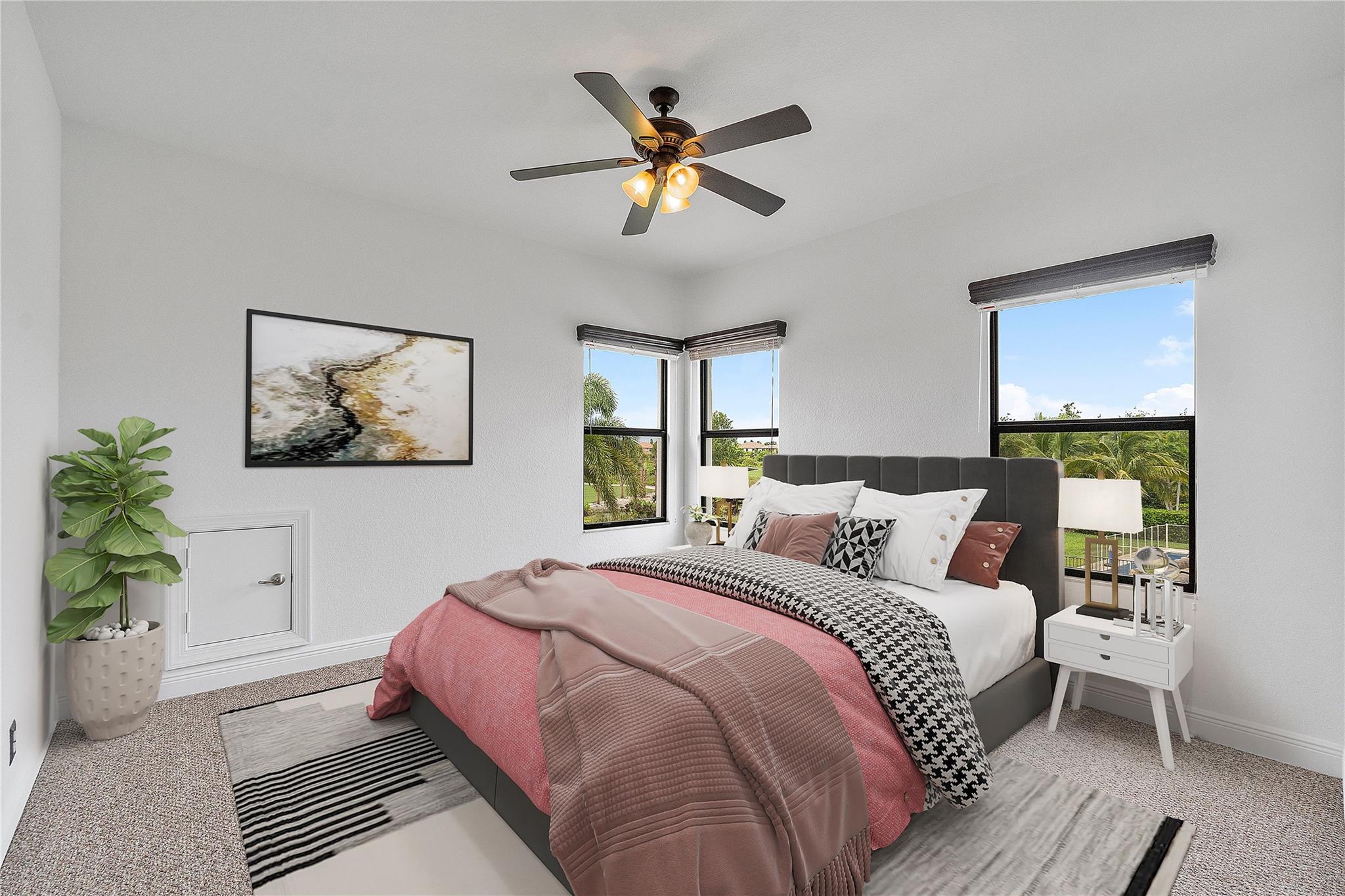 This 5-bed, 3-bath stunning home is on a beautiful cul de sac with stunning views of the 12th Hole. 1st floor Primary Bedroom has direct views of the golf course and also boasts custom built-in closets. Home Theater with an entertainment center in the 5th bedroom. Recently redesigned, the pool is complete with expanded new travertine paver deck and new diamond brite with safety rail on steps, backyard has upgraded fencing. The long extended driveway allows for multiple vehicles. Custom garage with built-in cabinets and new upgraded epoxy floors are ideal for secure storage. This community has a clubhouse, complete with a gym, spa, 2 resort-style pools, tennis, and restaurant. The interior has just been painted. Enjoy the convenience of walking to the golf course from your backyard!