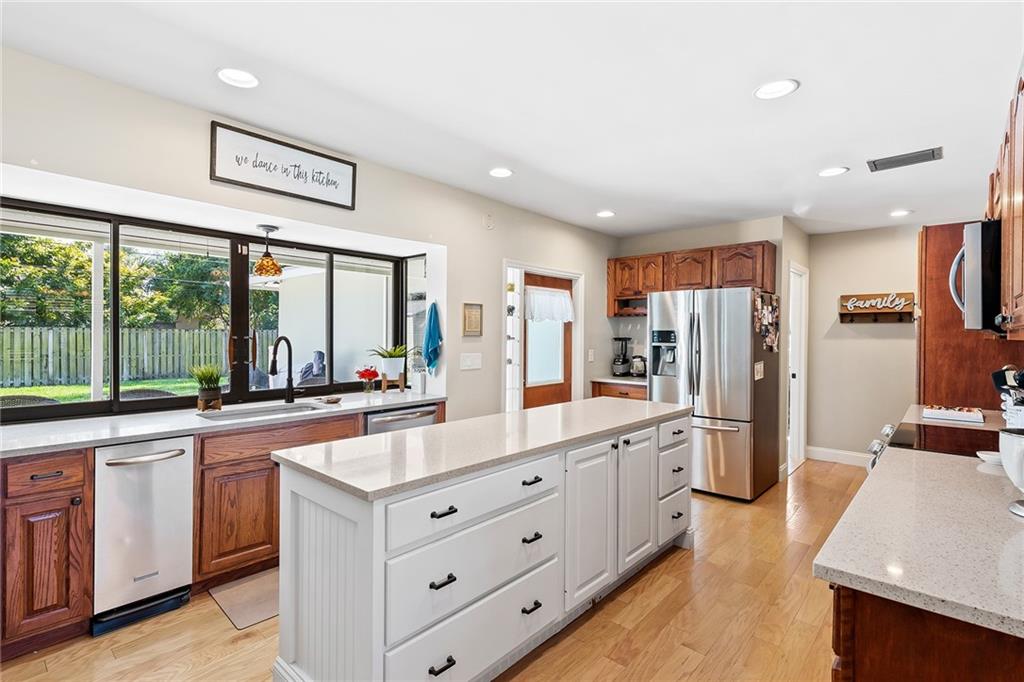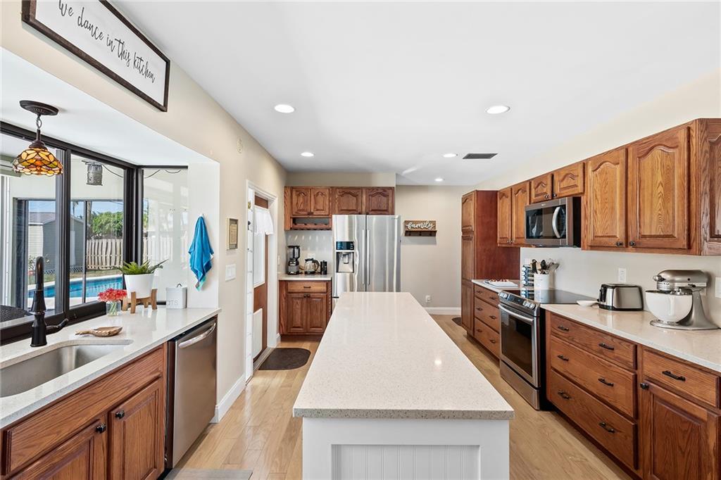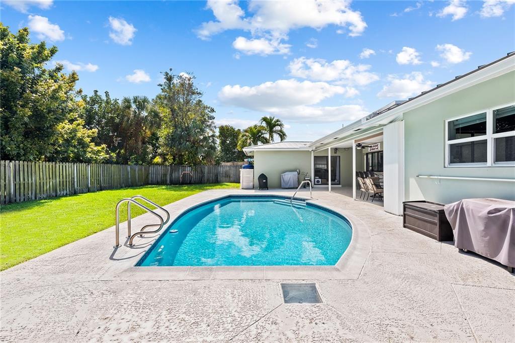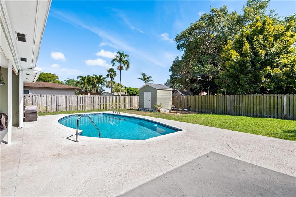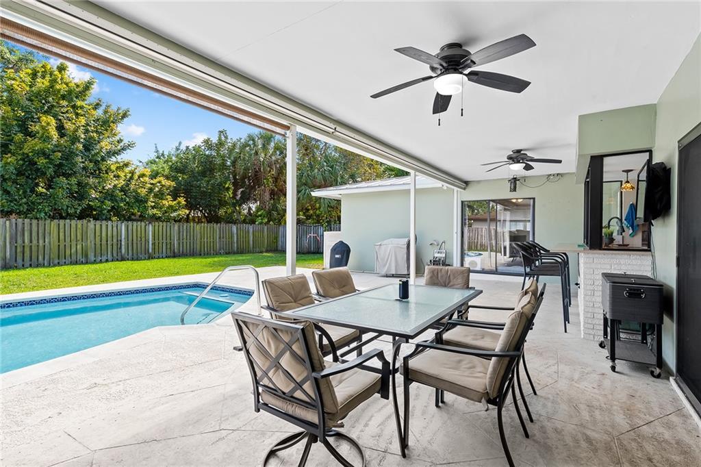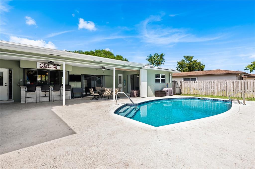 Captivating 4 bedroom home on impressive 10,000+ sq ft lot in sought-after Plantation Park. Serene fenced backyard with covered patio and inviting pool deck provides ideal environment for relaxation and entertaining. Open floor plan with spacious family and dining area. Completely renovated kitchen with pass through window to covered outdoor patio. Expansive owners suite with walk-in closet and renovated private bath. Wood flooring throughout common areas and bedrooms with tile in owners suite and bathrooms. Newly paved circular driveway with two car garage and metal roof. Accordion shutters and impact windows provide convenient opening protection. New AC installed and pool recently resurfaced. Home sits peacefully on a cul-de-sac road with no through traffic.