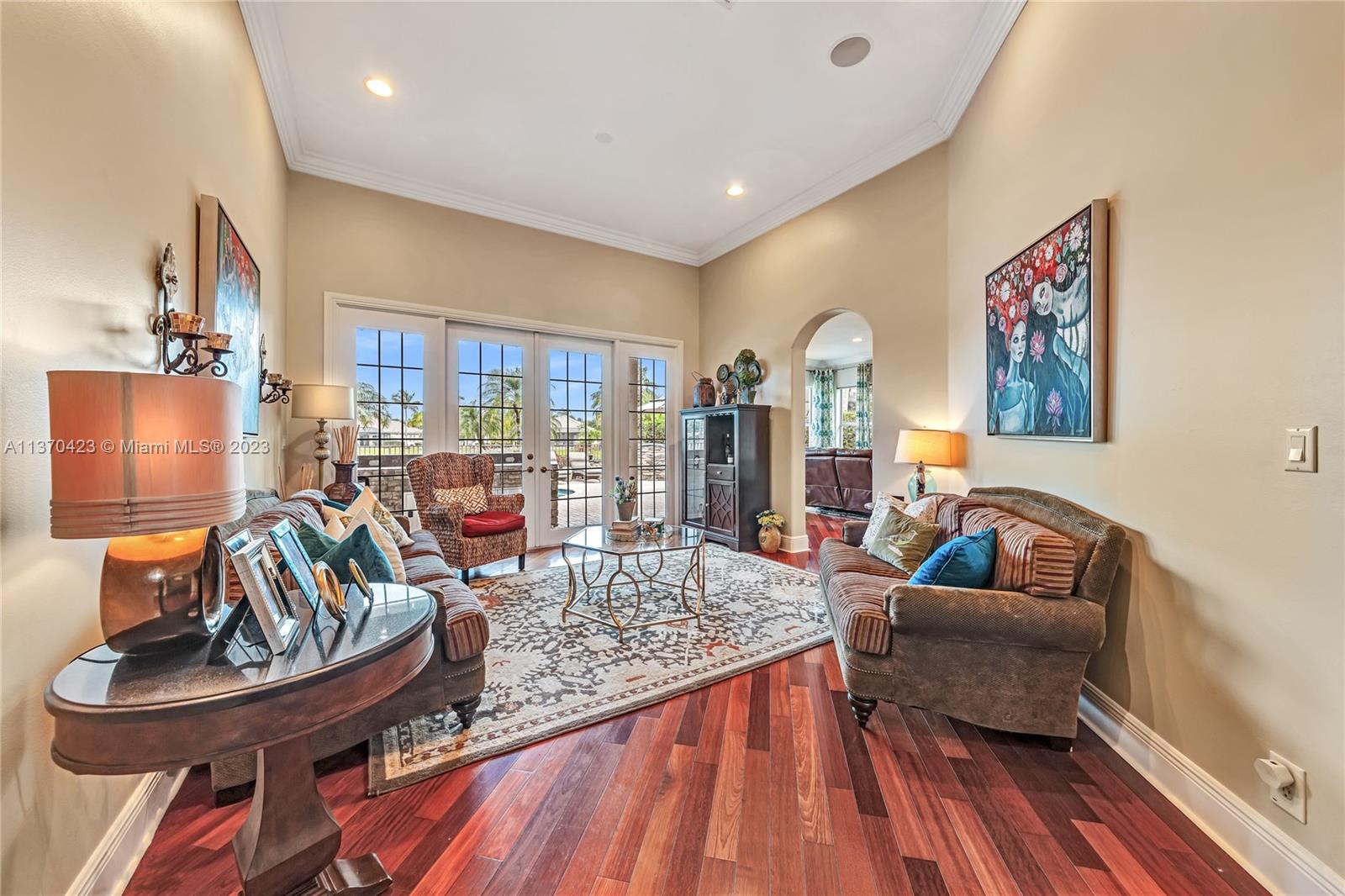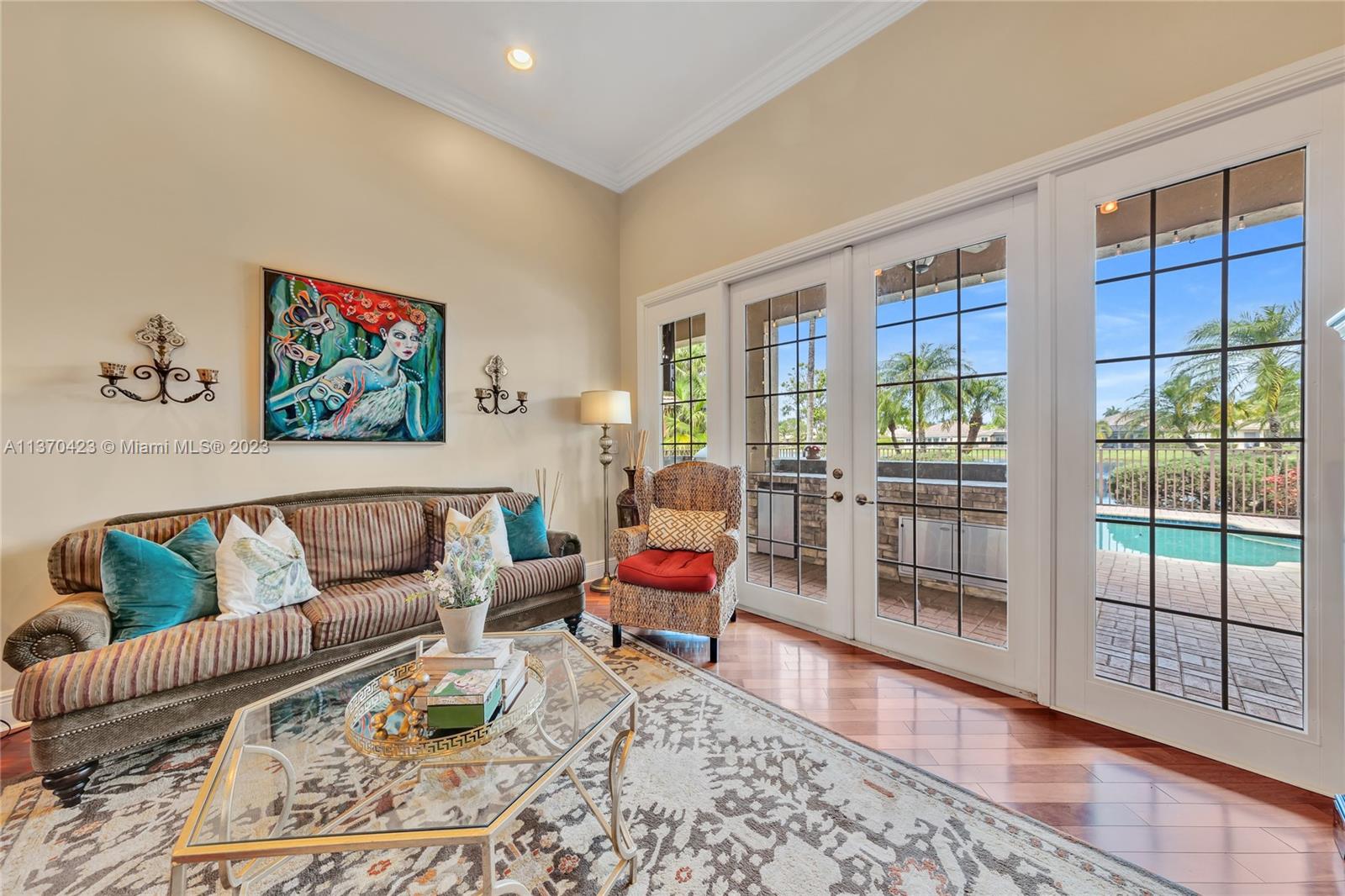 Dream home offers stunning water views on large 14,000+ sqft pie-shaped lot w/plenty of space to spread out and relax.Grand Bay Model w/triple split floor plan. Spacious patio & pool area features custom built stone veneer BBQ grill & island w/matching fire pit & stunning views of the water. Real wood floors throughout & kitchen boasts high-end appliances and ample counter space to entertain family & friends. Conveniently located near Pine Trails, Liberty, and Veterans Park and a short drive from Heron Bay w/plenty of shopping and dining options as well as A Rated Schools.Clubhouse, gym, pool, community room, and tennis/pickle ball courts making this home and community the perfect place to call home! Don't miss out on the opportunity to make this incredible property your own.