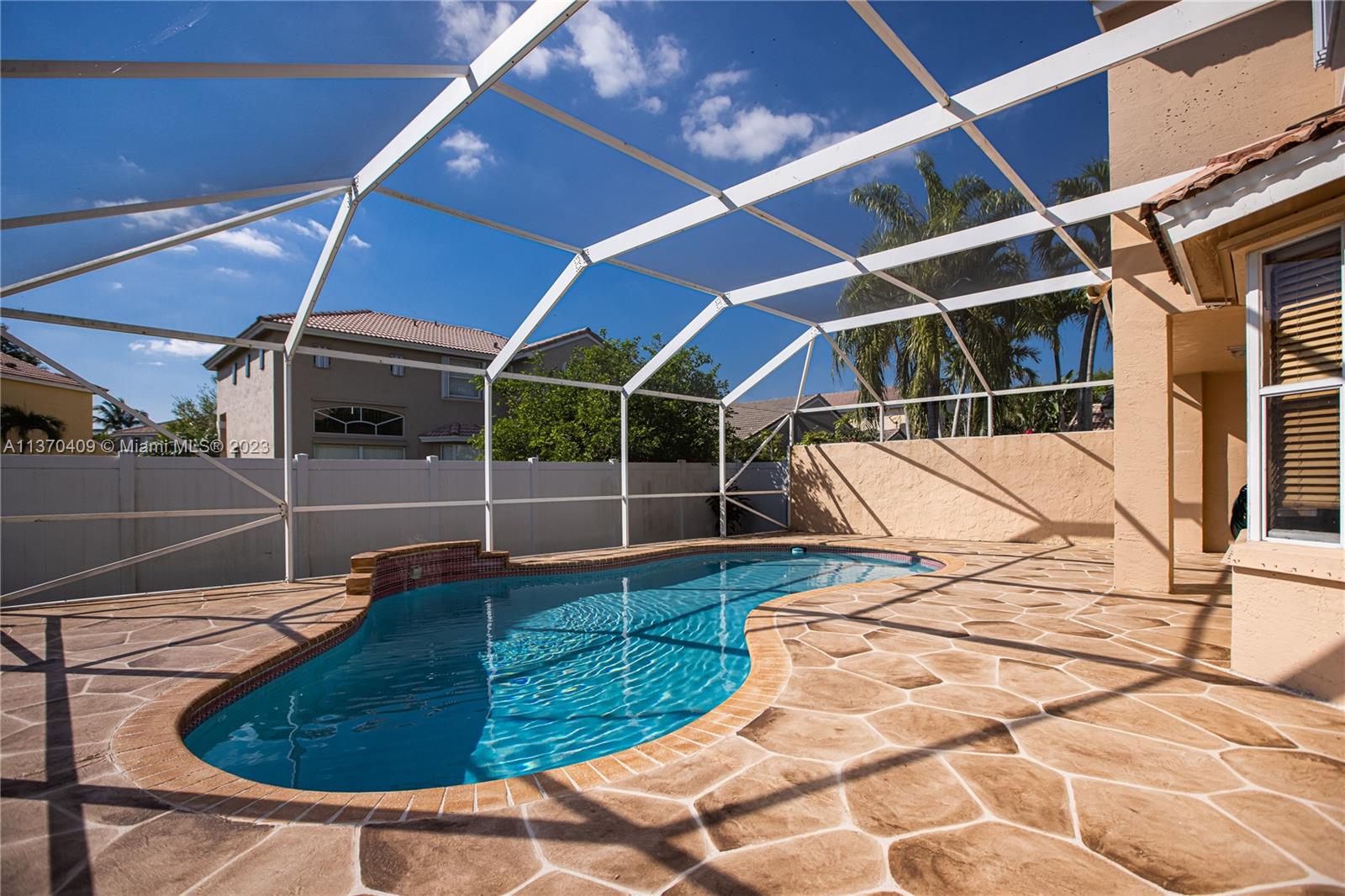 Come see this spectacular single family home with pool in the guard-gated community of Estancia in Pembroke Pines. It features 4 bedrooms, 2.5 remodeled bathrooms, a formal dining room, living room area, plus a bright and spacious family room next to the amazing eat-in kitchen. It also features a spacious laundry room, a 2 car garage with first floor and second floor, roman tub & walk-in closet in the master bedroom. Family-friendly community with amenities including a pool, fitness center, clubhouse, basketball court, & a play ground. A+ schools.