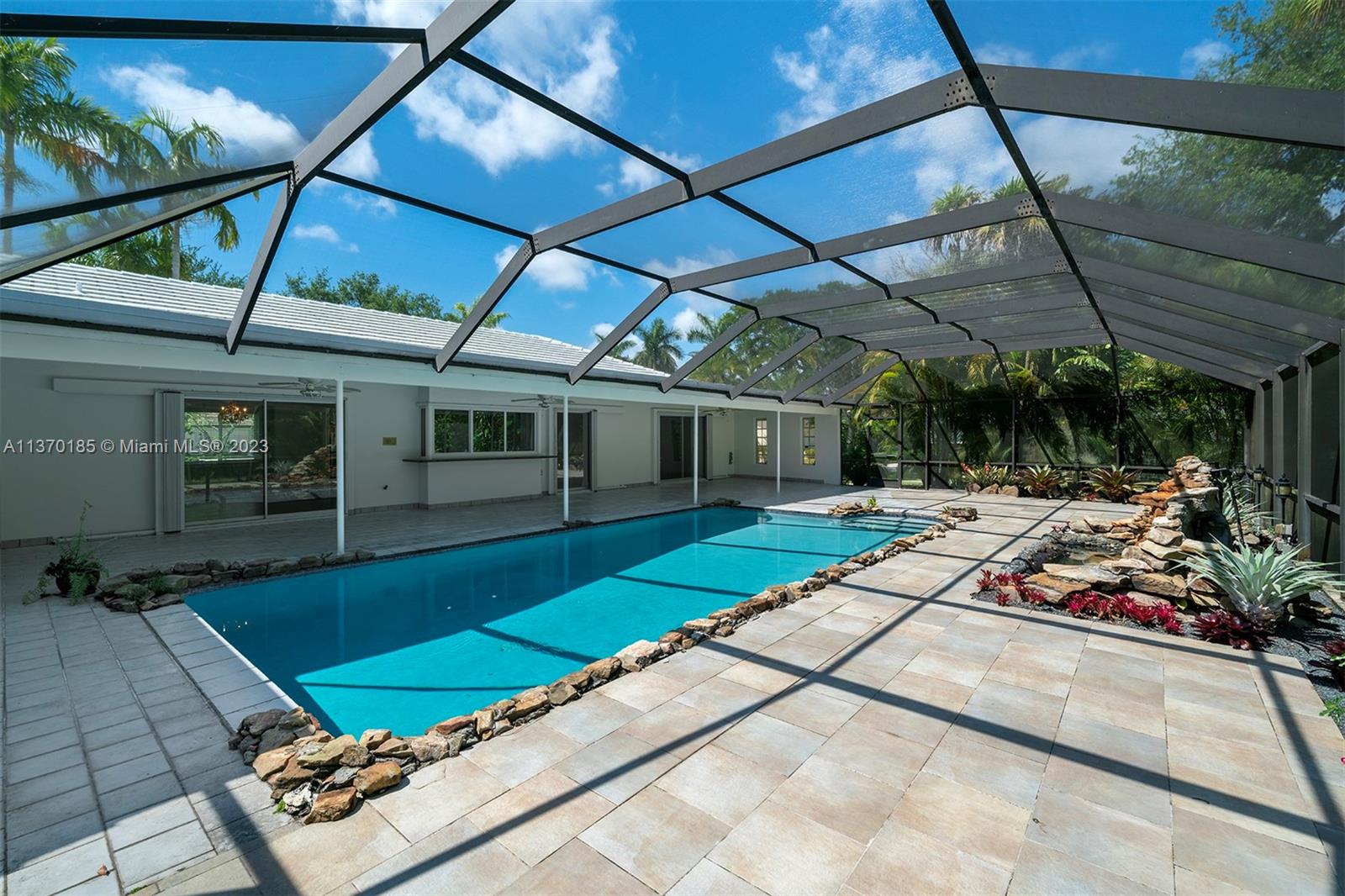 Spacious one-story nestled on a sprawling 17,545 sq.ft lot in North Pinecrest. With 4 bedrooms and 2 and a half bathrooms, this home boasts a bright and airy open floor plan with abundant living space, a gourmet eat-in kitchen with floor-to-ceiling cabinetry, breakfast area, and dining room. The master suite features a walk-in closet and direct access to the pool. Outside, take advantage of the peaceful outdoor haven with a screened covered terrace and swimming pool. Additional features include partial impact windows, home generator, 2-car garage, and elite Pinecrest Schools nearby.