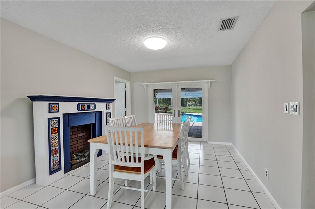This spacious 4-bedroom, 2-bathroom home, with an inviting living room features large windows that allow natural light to flood in, creating a bright and welcoming ambiance. The floor plan flows seamlessly into the dining area and kitchen, complete with stainless steel appliances, and ample storage space. The primary bedroom boasts a spacious layout with a walk-in closet and an en-suite bathroom that features a dual sink vanity and walk-in shower. Step outside into your very own private oasis, where you can enjoy year-round Florida living with a screened-in patio and a sparkling pool. The fenced backyard offers plenty of space for entertaining and outdoor activities, and the lush landscaping with many fruit trees creates a tranquil and joyful atmosphere.