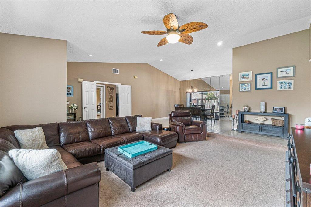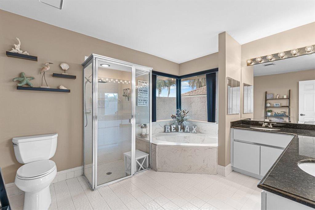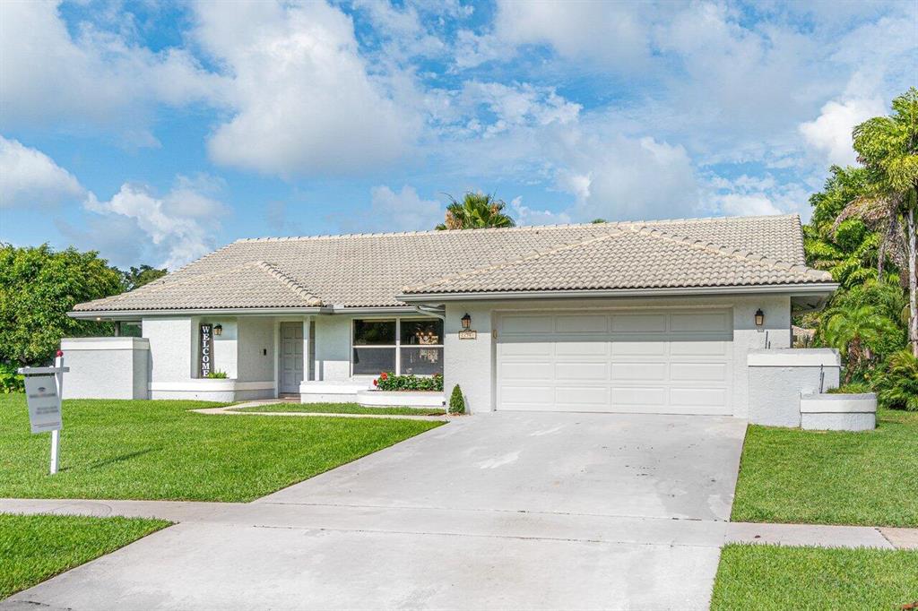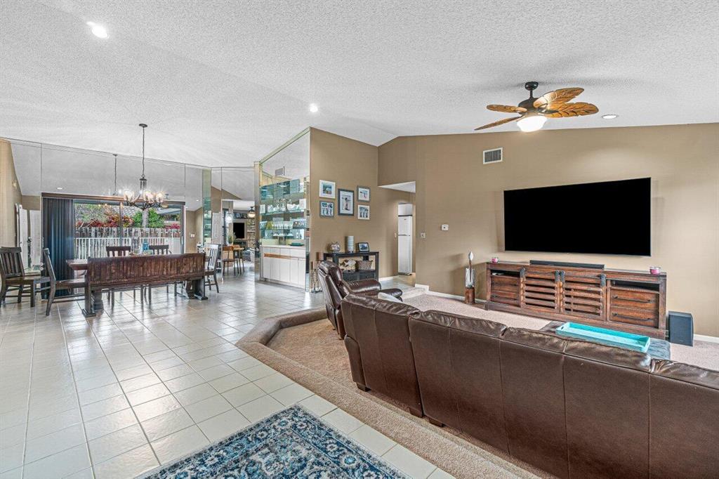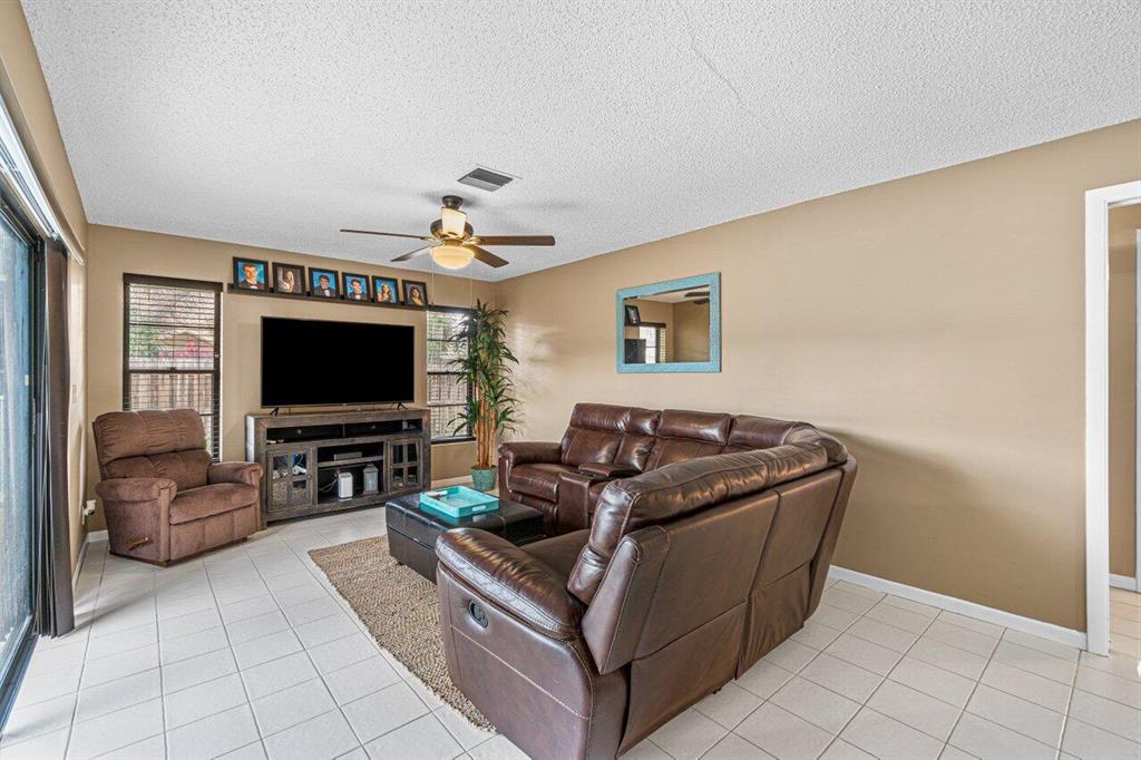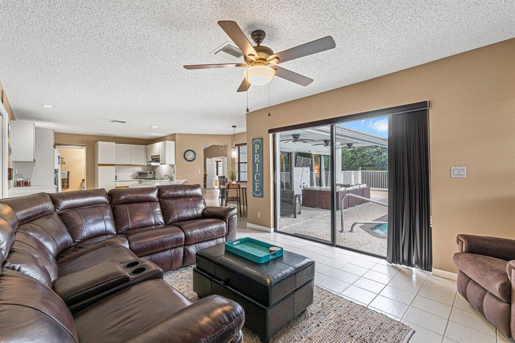 Don't miss this charming home with a spacious floor plan. The living room features volume ceilings and plenty of natural light. Flowing into the dining room, there is a convenient wet bar that offers additional storage and makes it a great spot to entertain. The kitchen has an eat-in breakfast area and is open to the family room for full connectivity. The split floor plan allows the primary suite to be situated on its own for maximum privacy. The primary bedroom has access to the outdoor patio space, a walk-in closet, and a spacious bathroom with separate tub. The three other bedrooms share a full bathroom and an additional powder bathroom. Outside, a covered patio is a great spot to relax or dine outdoors as you enjoy your pool. A laundry room and a two car garage complete this home.