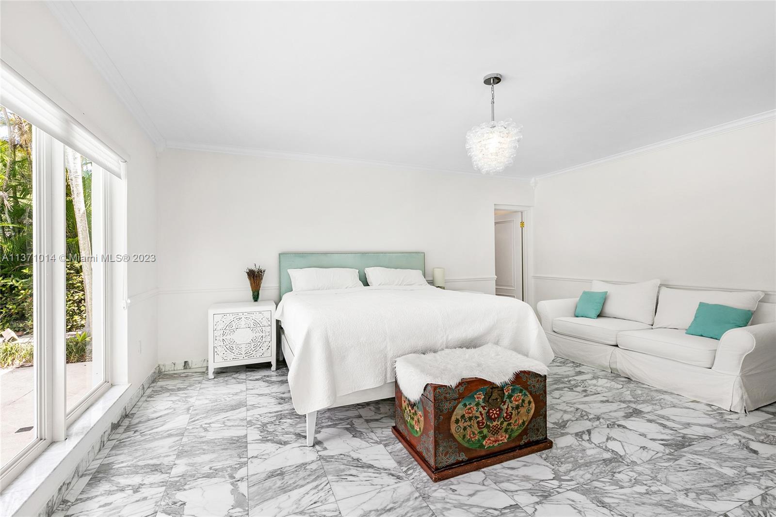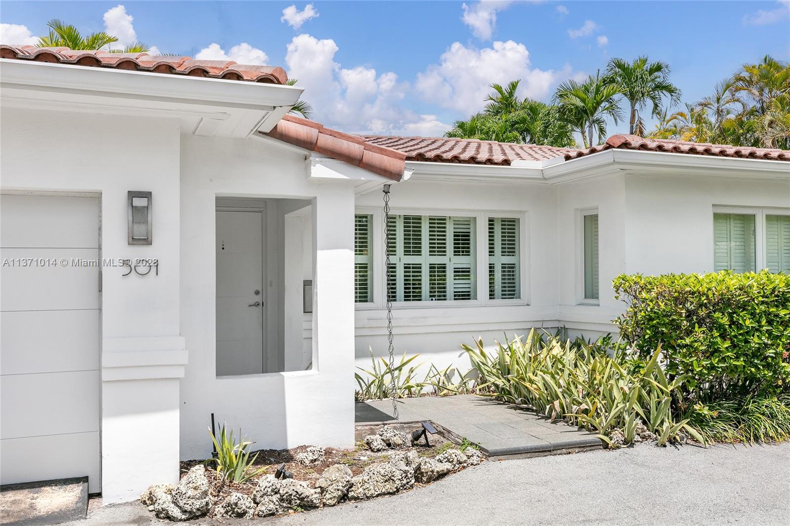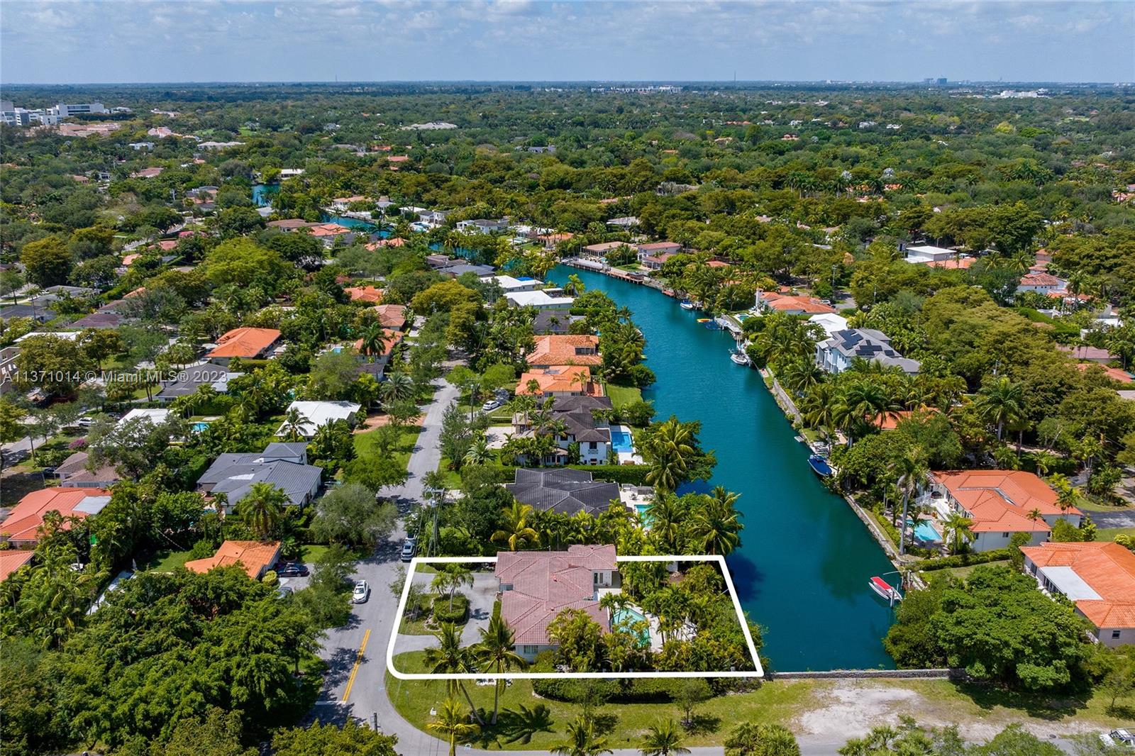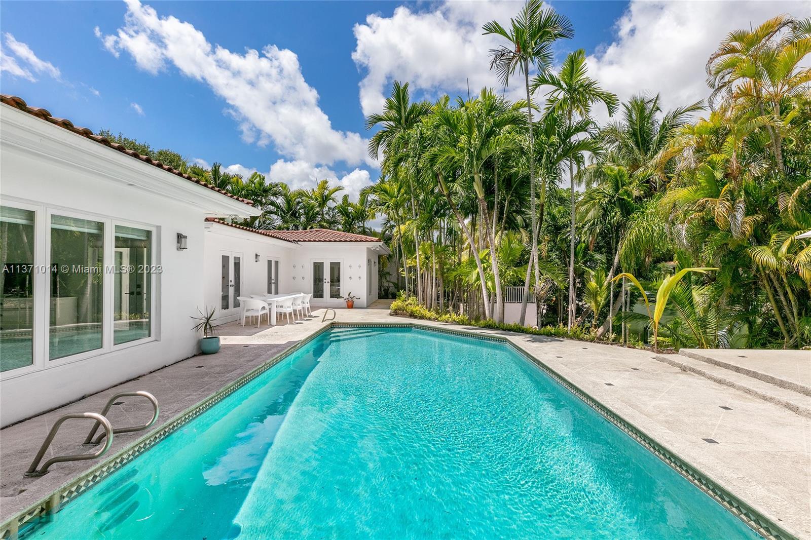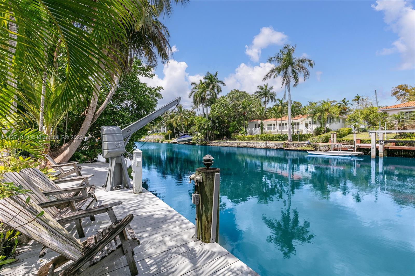 This elevated ranch style home sits on the intracoastal waterway on a 12,000 SF lot in a quiet family neighborhood in Coral Gables. The 4BR/3BA home features Statuary marble floors, high ceilings, spacious living room & private dining area w/large windows that provide direct views to the large pool deck & waterway. An open kitchen sports Kitchen Aid appliances, Quartzite counter tops plus a breakfast area. Elegant principal suite offers direct waterway views, & beautiful principal bath w/glass shower & soaking tub. The other 3 BRs are each well proportioned. Outdoor highlights incl. large pool w/cabana bath, large palms, a boat lift & private wood dock. Hurricane impact resistant windows/doors, laundry room & 2 car gar, plus amazing central location complete this offering.