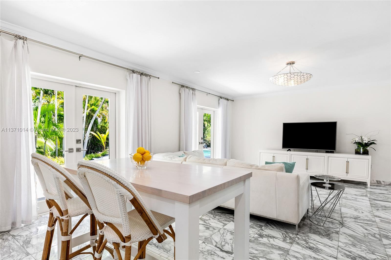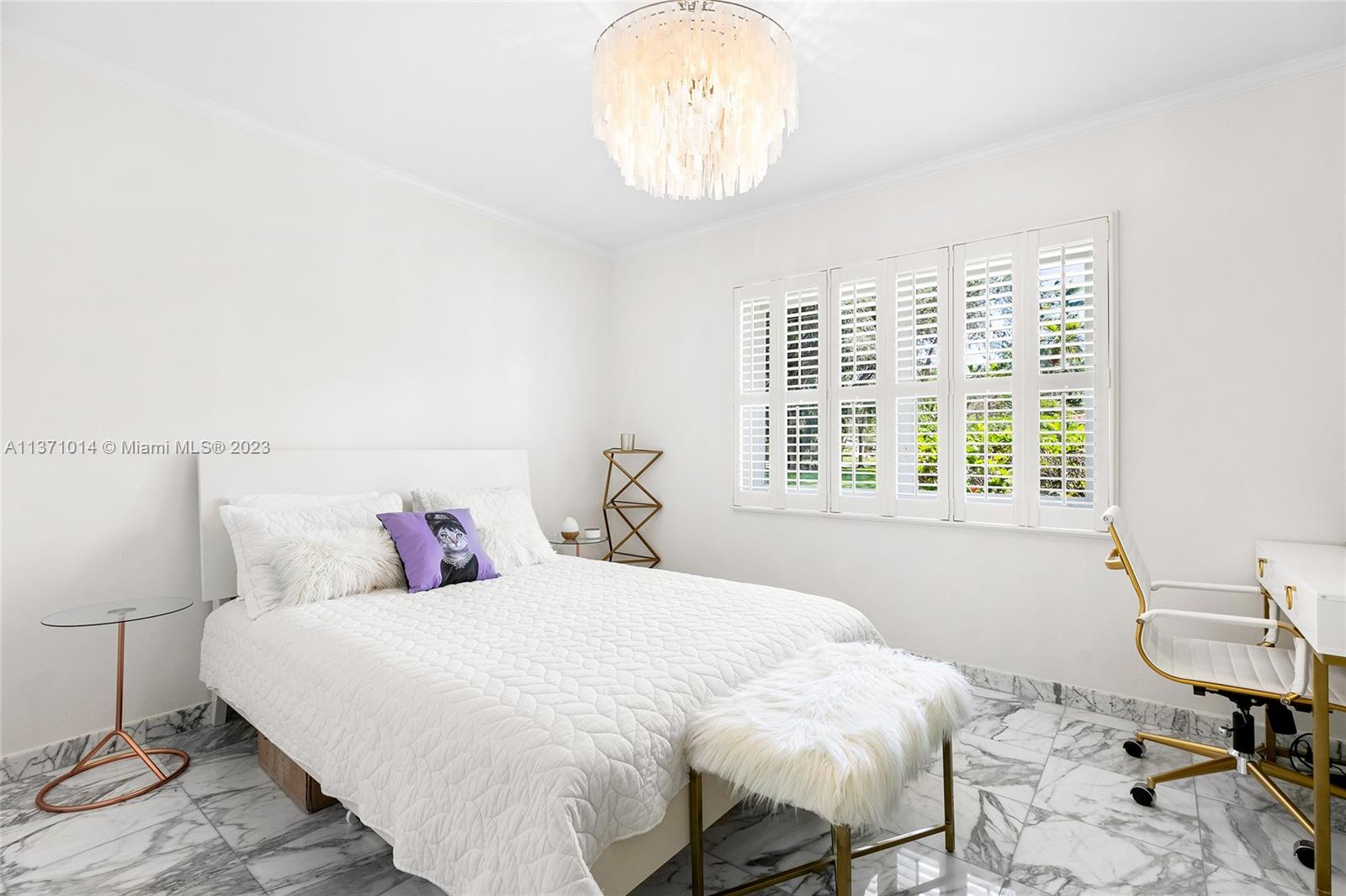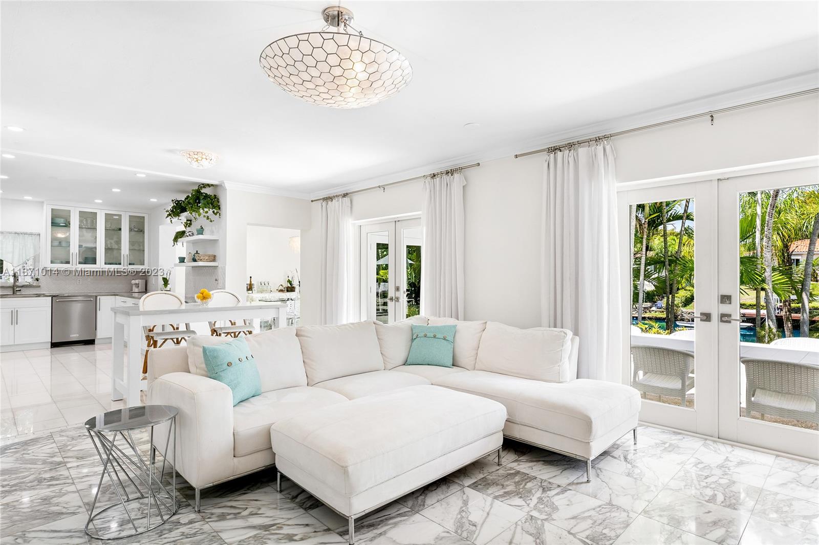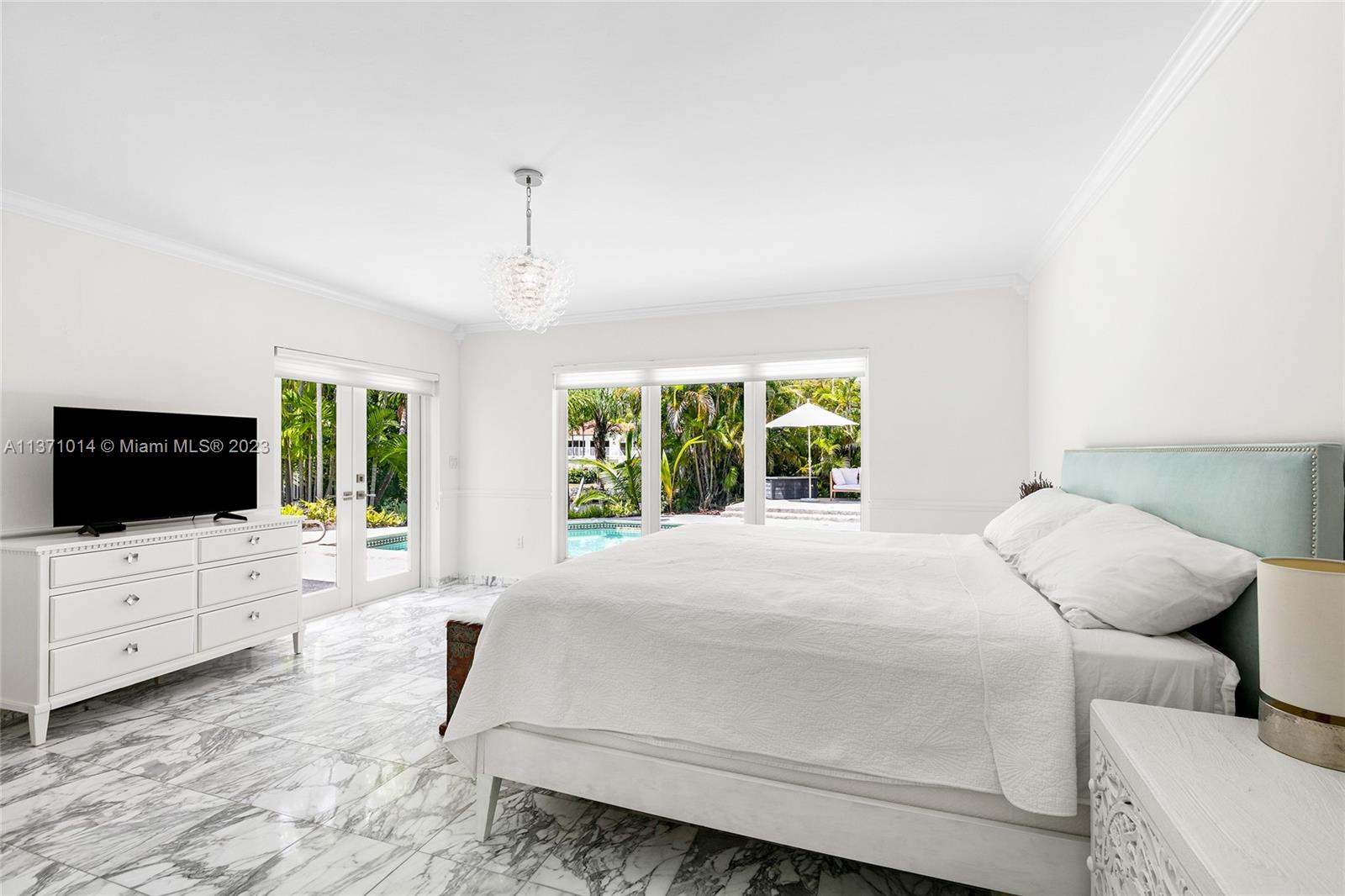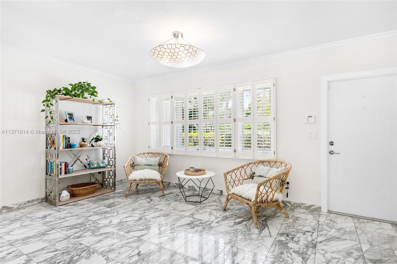 This elevated ranch style home sits on the intracoastal waterway on a 12,000 SF lot in a quiet family neighborhood in Coral Gables. The 4BR/3BA home features Statuary marble floors, high ceilings, spacious living room & private dining area w/large windows that provide direct views to the large pool deck & waterway. An open kitchen sports Kitchen Aid appliances, Quartzite counter tops plus a breakfast area. Elegant principal suite offers direct waterway views, & beautiful principal bath w/glass shower & soaking tub. The other 3 BRs are each well proportioned. Outdoor highlights incl. large pool w/cabana bath, large palms, a boat lift & private wood dock. Hurricane impact resistant windows/doors, laundry room & 2 car gar, plus amazing central location complete this offering.