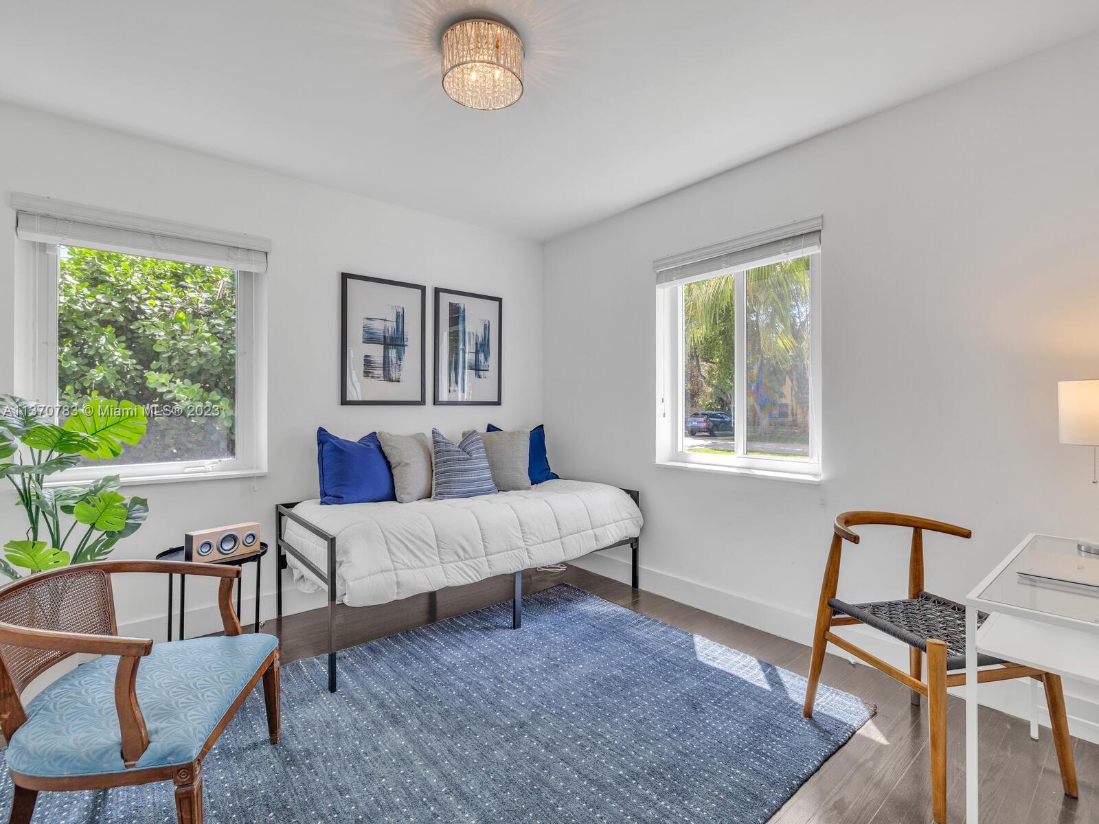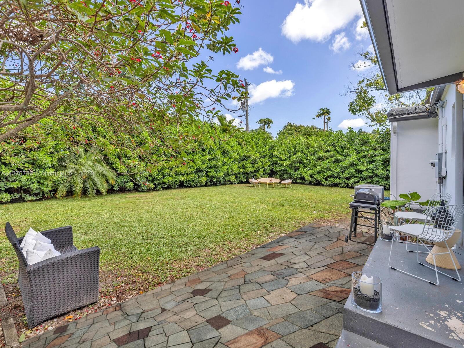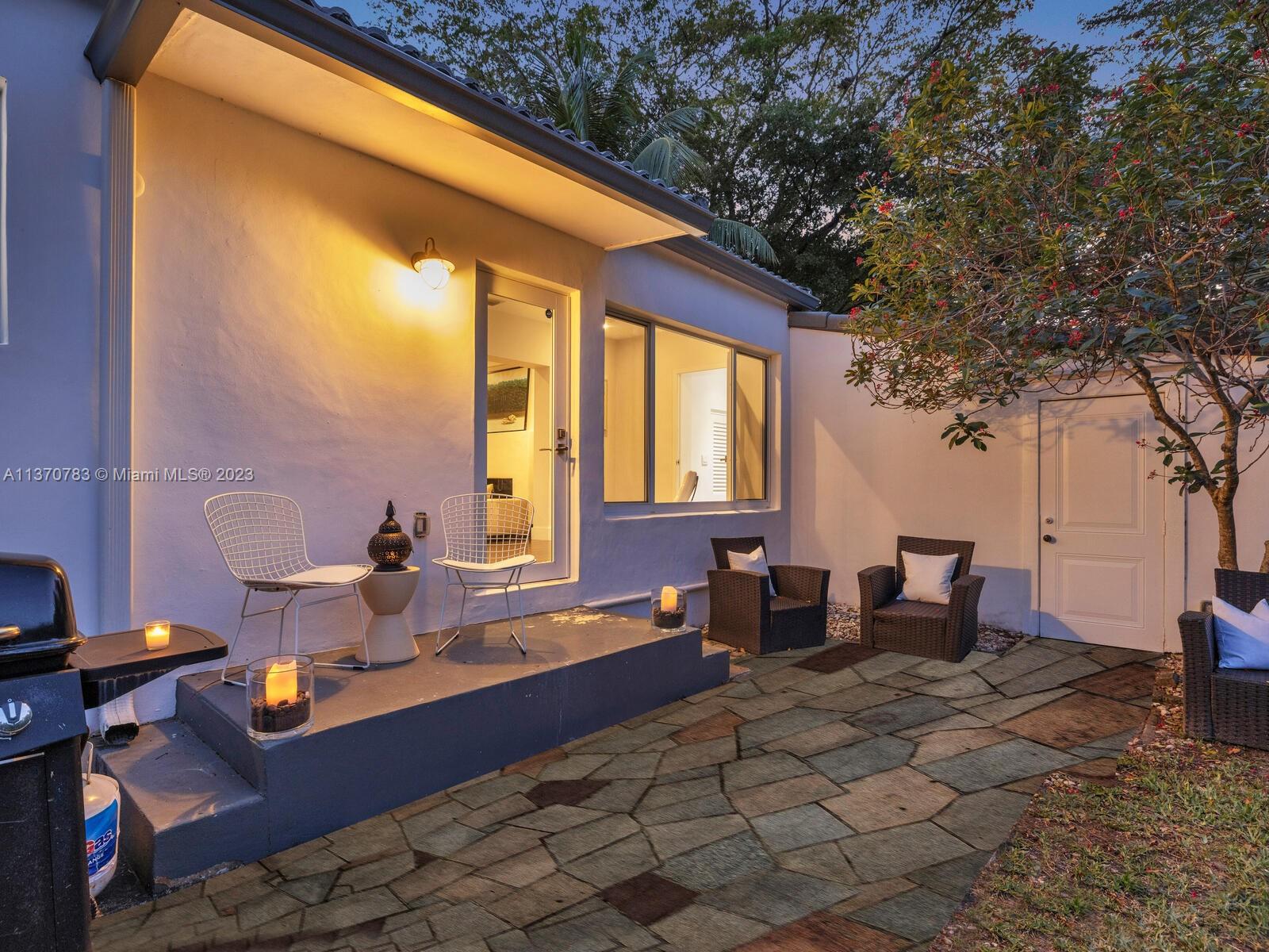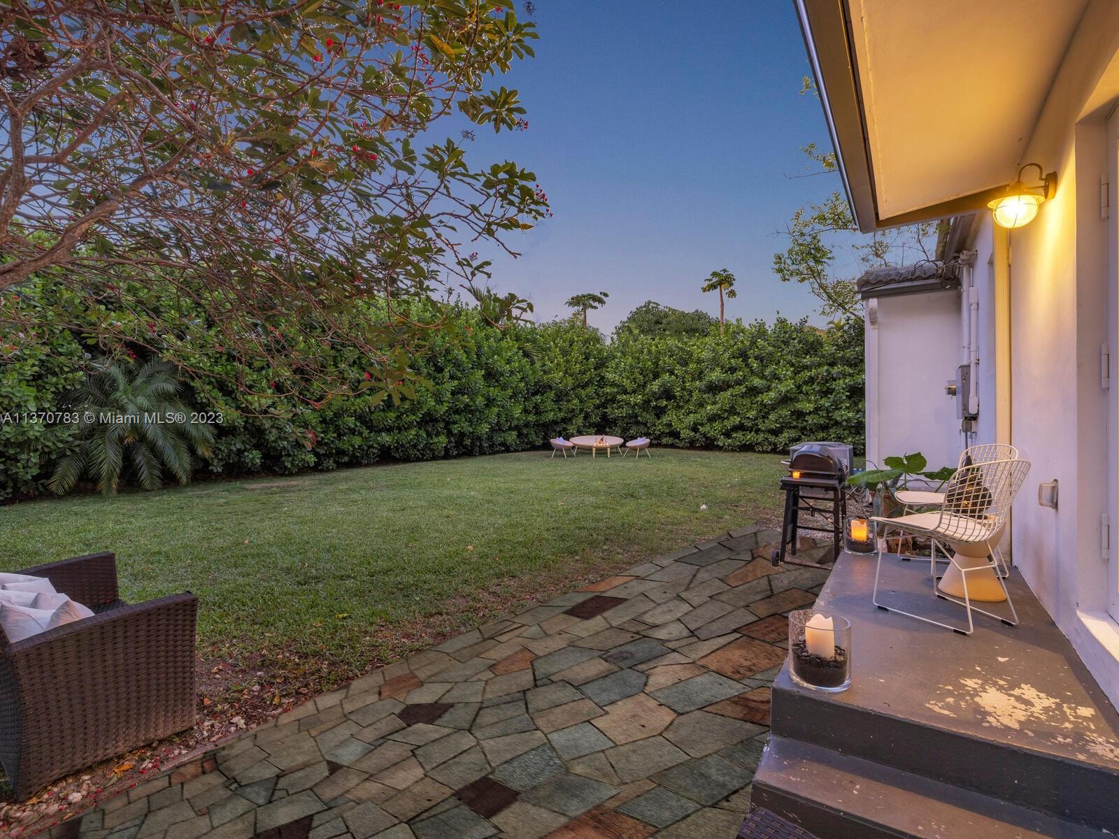 Welcome to Villa Esquina! Live large in this artfully updated Miami Shores retreat home on a large tree-lined corner lot. Arriving home is a breeze, thanks to the welcoming circular driveway and plentiful guest parking. Enter into the grand great room with layered Art Deco waterfall tray cut ceiling and multiple spaces for living and relaxing. An entertainer’s delight, with a modern designer kitchen and bright sunroom opening to lush private rear gardens and entertainment patio. Extra privacy with a split bedroom plan, including the secluded west wing main suite retreat, with vaulted ceilings, walk-in closet, and spa-like bath. Great features: beautiful wood plank floors, impact windows-doors, updated kitchen-baths, laundry room, and room for a pool. This signature corner home has it all!