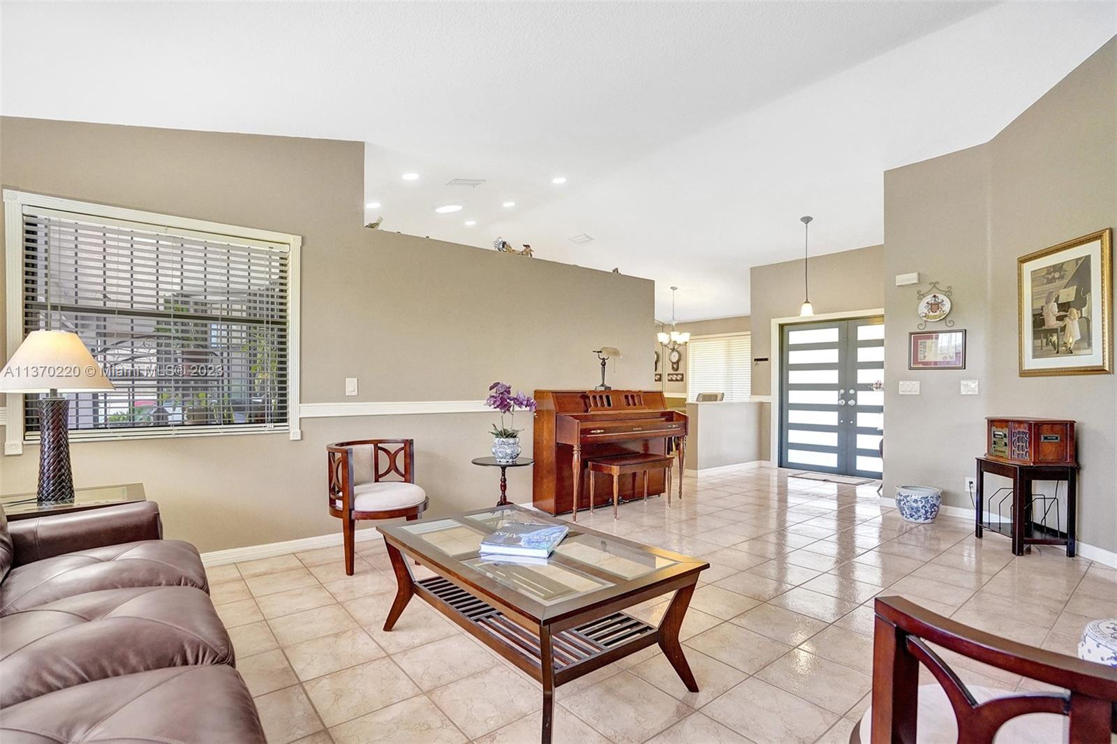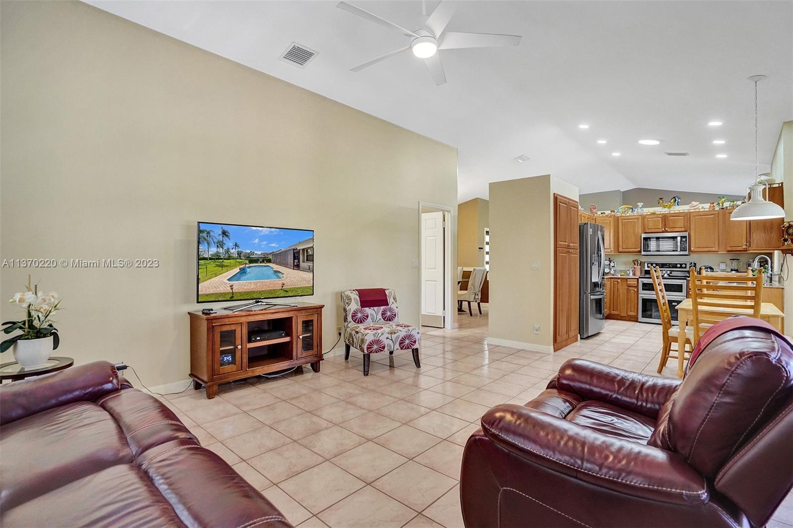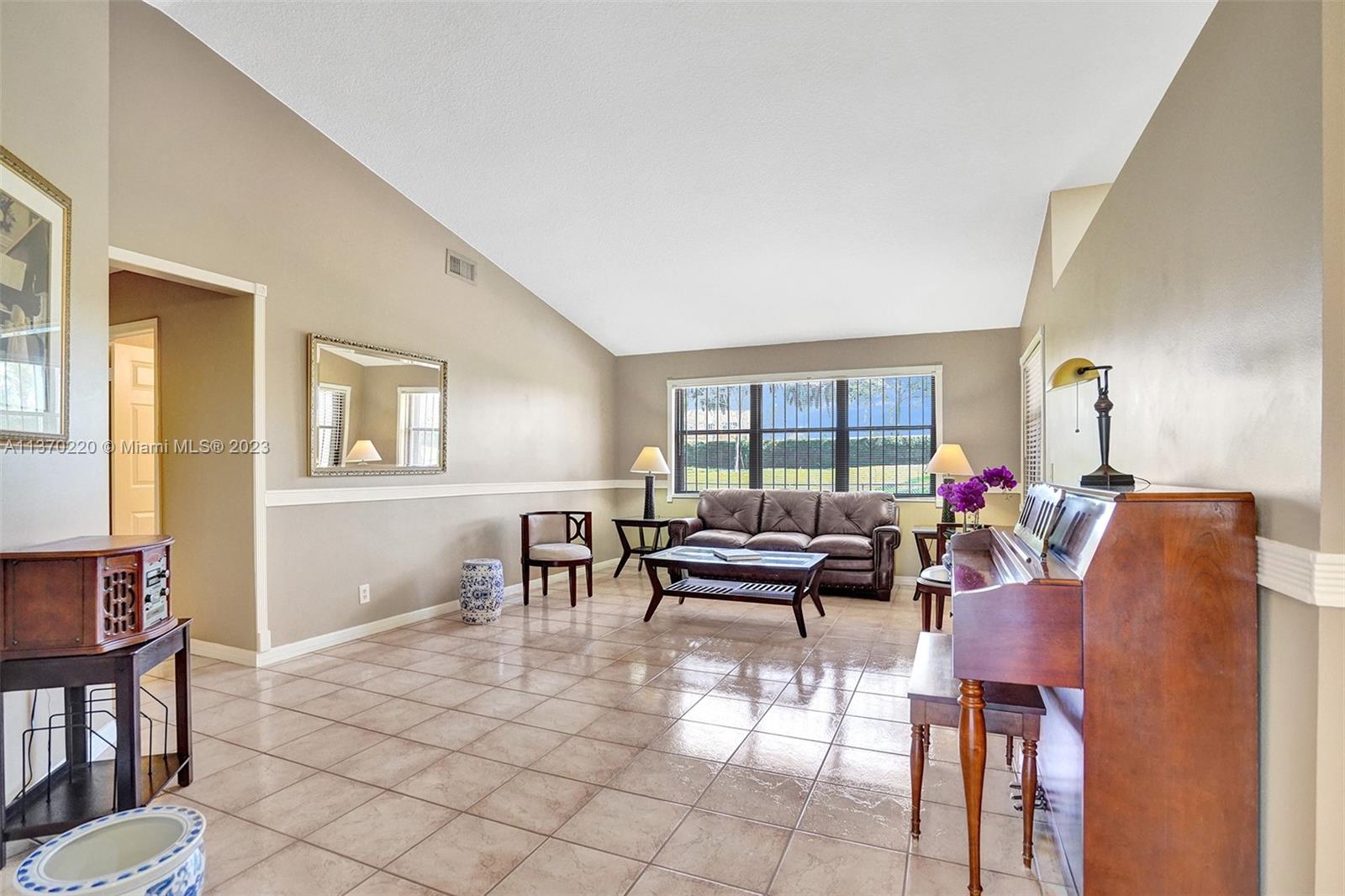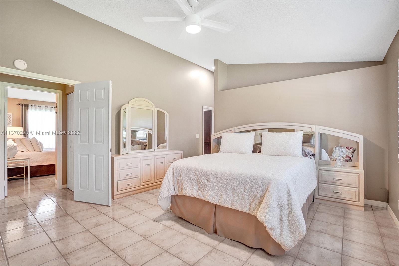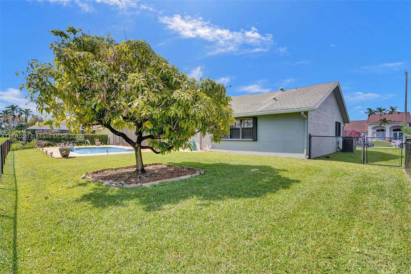 Maintained to perfection by original owner! This popular Sagamore model is situated on a spacious (11,074 sq. ft.) lot. Tile floors throughout. Freshly painted interior, neutral colors. Kitchen features granite countertops, newer SS appliances all replaced in the last 5 years. Updated cabana bath. Master bath with dual sinks. Large Master bedroom, plantation shutters, walk-in closet. Aluminum screen enclosure installed 2022 overlooking lovely pool area with pavers. Enjoy freshly resurfaced pool with waterfall. Fully Fenced backyard. Impact windows on front of home and impact front door. Accordion shutters on all other openings. Roof replaced 2010, A/C replaced 2017. Mud sink in laundry room. Low HOA dues cover basic cable and internet. Excellent schools!