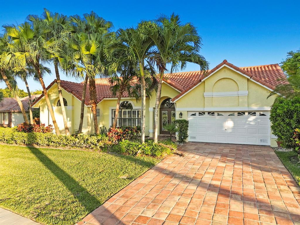 This beautiful, very well maintained house is clean, vacant and ready to sell. Overlooks golf and large water, large open rooms, split plan, updated kitchen lots of light.Boca Greens is a gated community of 586 homes located one mile north of Glades road on US 441. This community is also the home of the Boca Greens County Club. All residents can play the course on a pay for play basis. No membership is required. Premium cable package and high speed Internet included the homeowner fee.
