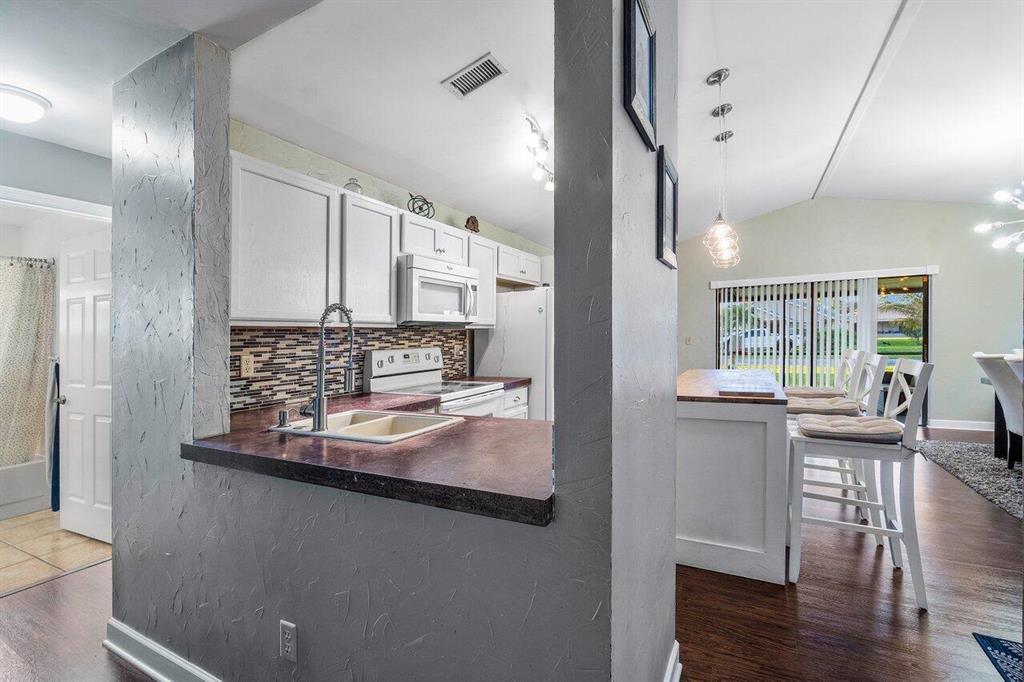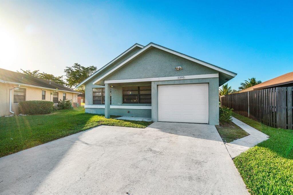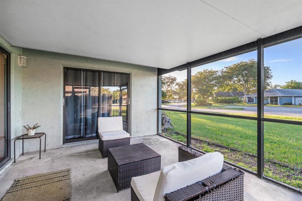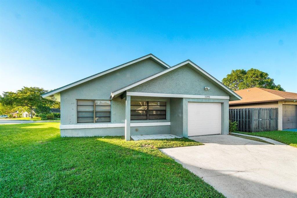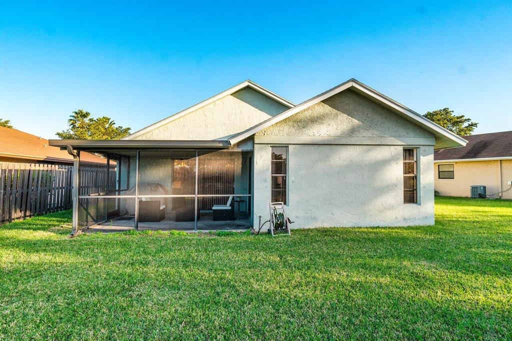 Beautiful 3 Bedrooms, 2 Bathrooms, Screened Covered Patio & 1 Car Garage. Kitchen features an island with butcher block counter & large pantry. Vaulted ceilings, with no POPCORN TEXTURE, laminate flooring and bathrooms with tile flooring. Master Bedroom with spacious walk-in closet. Air conditioner installed 2019, newer washer & dryer, ROOF 2006, LOW association fee, community amenities includes clubhouse, pool, tennis courts, children play area. Located close to schools, shopping centers, park, Wellington Mall.*HOA REQUIRES credit score of 650.*