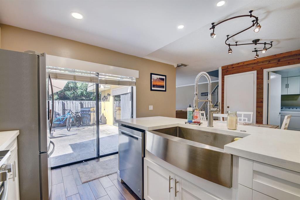 Pride of ownership is evident the moment you walk into this 2 bedroom/ 2.5 bath townhouse in the centrally located neighborhood, The Village of Sandalwood Lakes. Multiple sets of sliding glass doors off of the kitchen and family room open up to your cozy patio, giving you a great space to enjoy the South Florida lifestyle. The interior the property features an updated, open kitchen with quartz counter tops, white cabinets, stainless steel appliances, tile backsplash and a farmhouse sink. Other updates include porcelain tile throughout the first floor, an updated powder/laundry room and updated fixtures. Upstairs you will find 2 bedrooms with laminate flooring and 2 updated bathrooms. The master bathroom has dual vanities and a large, frameless shower with a rainfall shower head.