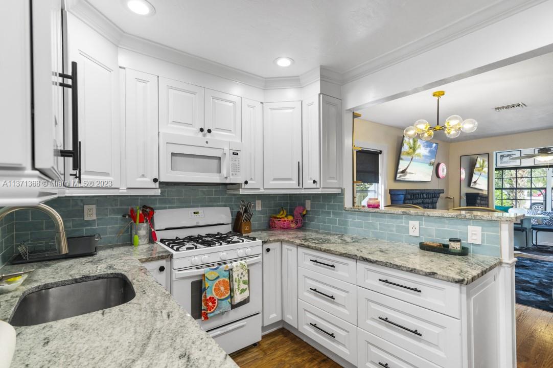 Charming and fully renovated, this 2 bedroom, 1 bathroom home in Historic Sailboat Bend boasts 1,044 sqft of living space and original Miami-Dade pine floors. The Florida room features an office with custom wood desk on one side and a breakfast nook on the other, the living room has in-ceiling speakers. The updated kitchen has granite countertops and a breakfast bar. The master bedroom includes a massive walk-in closet, and the bathroom has a walk-in shower. The laundry room features built-in cabinets, a teak folding table, and new Samsung washer and dryer. The backyard is a tropical oasis with a 6' privacy fence, large paver patio, and 13'x15' gazebo. Paver driveway, new roof, and tankless water heater. Furniture negotiable. Currently owner occupied until May 5th. Being sold AS IS.