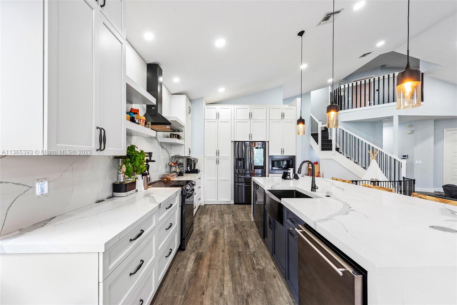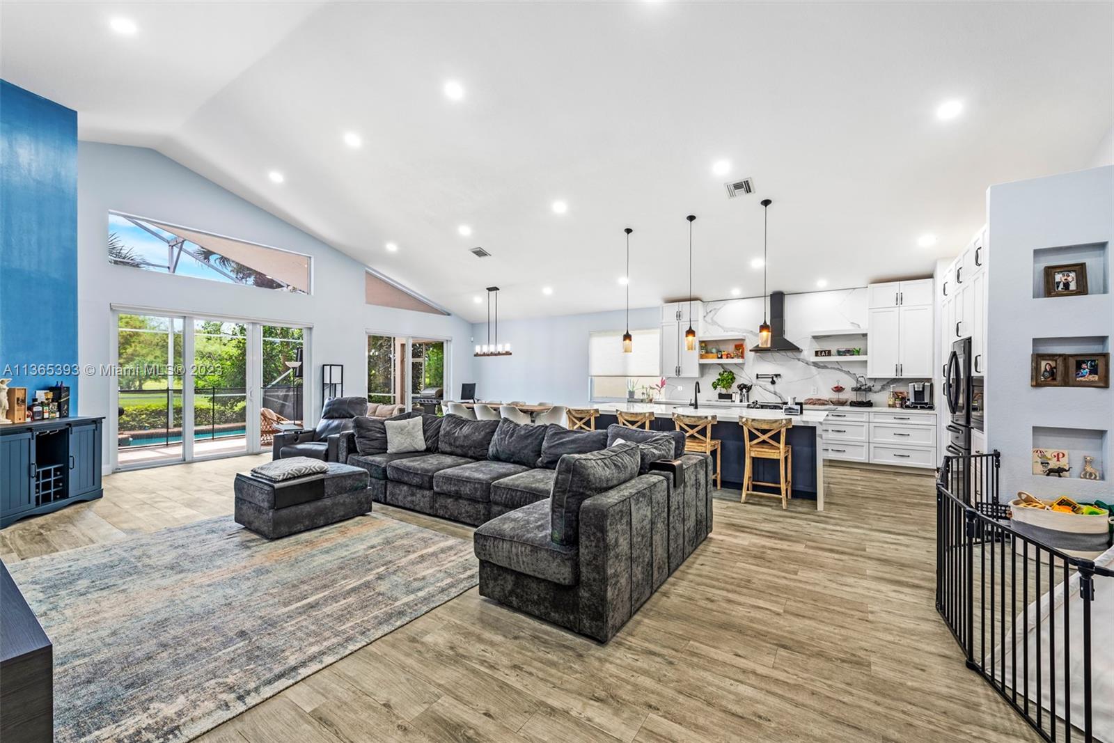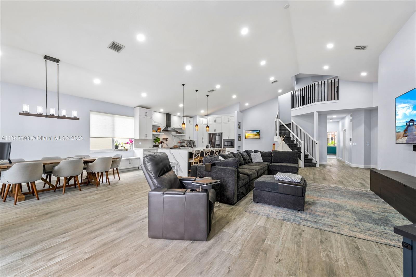 Stunning 2-story fully renovated smart home boasts 4 beds, 3.5 baths, a spacious floor plan with an open and airy living space, a modern kitchen that is both spacious and stylish with sleek cabinetry, stainless steel appliances and a large island, soaring ceilings, fully automated smart home system, washer/dryer and more. A chic interior design with teal-blue accents throughout add a touch of warmth and elegance. An outdoor covered patio overlooking the golf course with a pool provides a refreshing escape and ideal space for hosting gatherings. The master bathroom is a true oasis with a luxurious tub and shower combo, and double sinks. Located in a desirable gated community of Grand Palms in Pembroke Pines FL, this home is conveniently situated near shops, restaurants, and entertainment.
