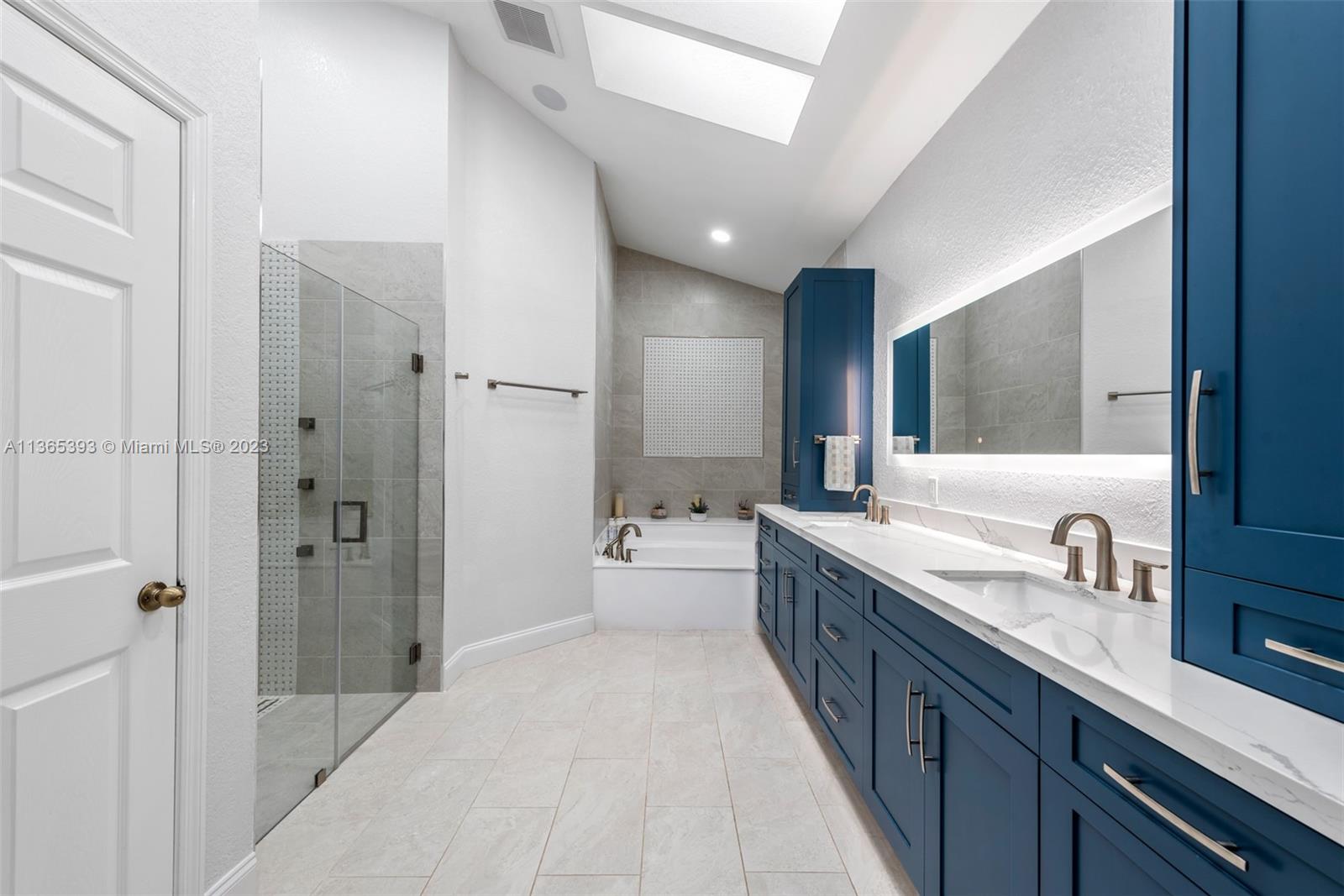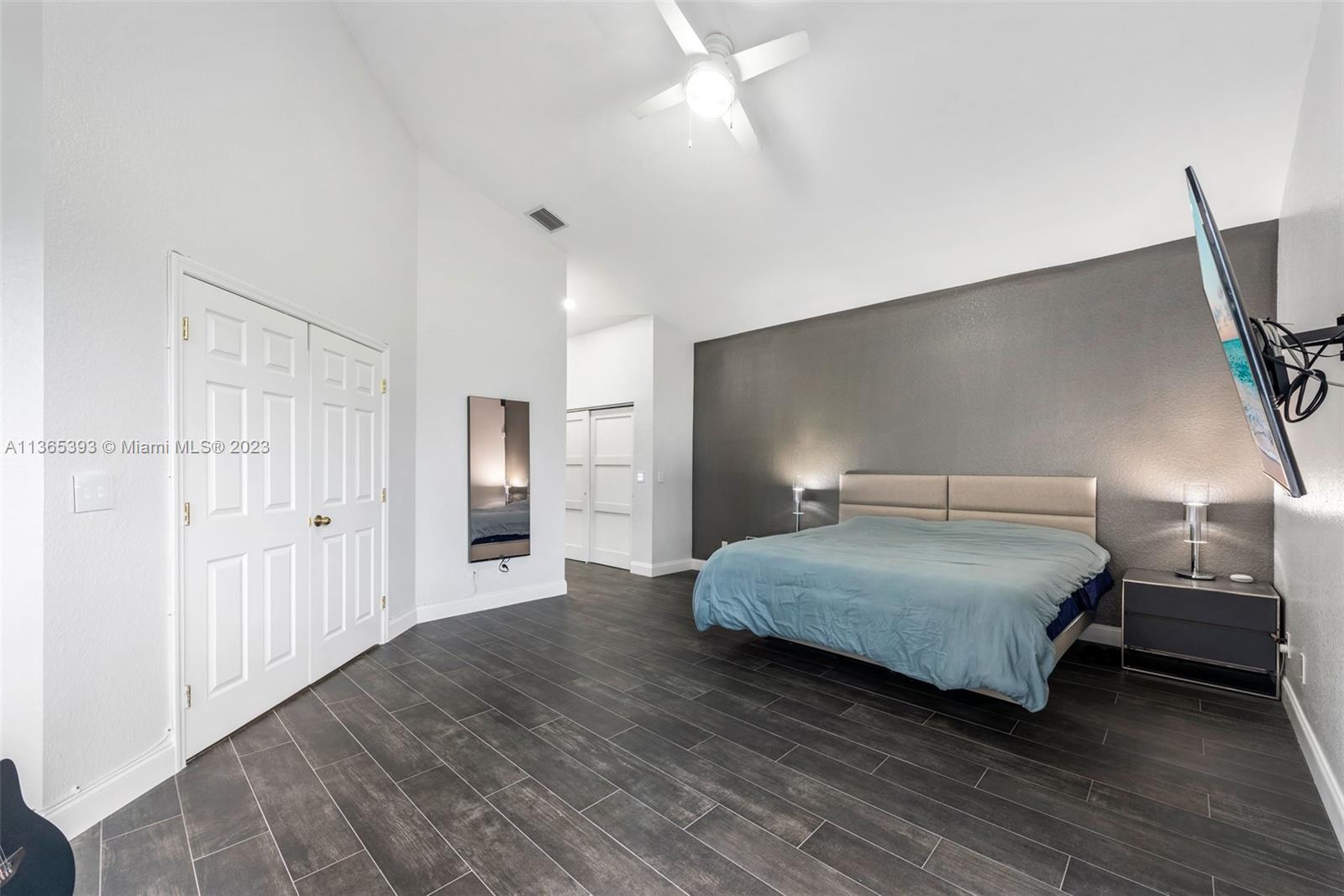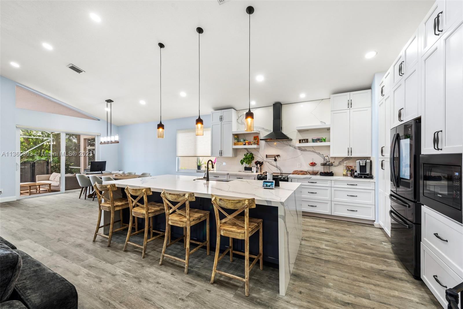 Stunning 2-story fully renovated smart home boasts 4 beds, 3.5 baths, a spacious floor plan with an open and airy living space, a modern kitchen that is both spacious and stylish with sleek cabinetry, stainless steel appliances and a large island, soaring ceilings, fully automated smart home system, washer/dryer and more. A chic interior design with teal-blue accents throughout add a touch of warmth and elegance. An outdoor covered patio overlooking the golf course with a pool provides a refreshing escape and ideal space for hosting gatherings. The master bathroom is a true oasis with a luxurious tub and shower combo, and double sinks. Located in a desirable gated community of Grand Palms in Pembroke Pines FL, this home is conveniently situated near shops, restaurants, and entertainment.