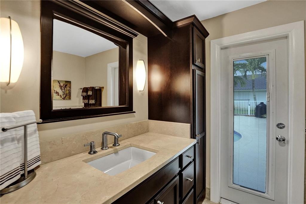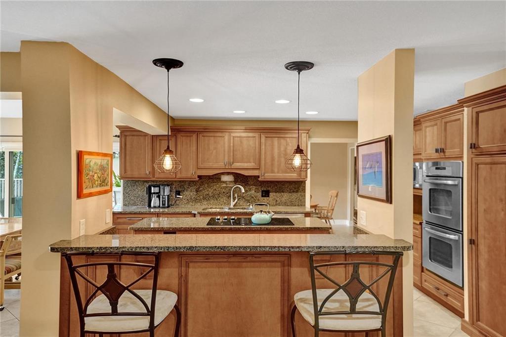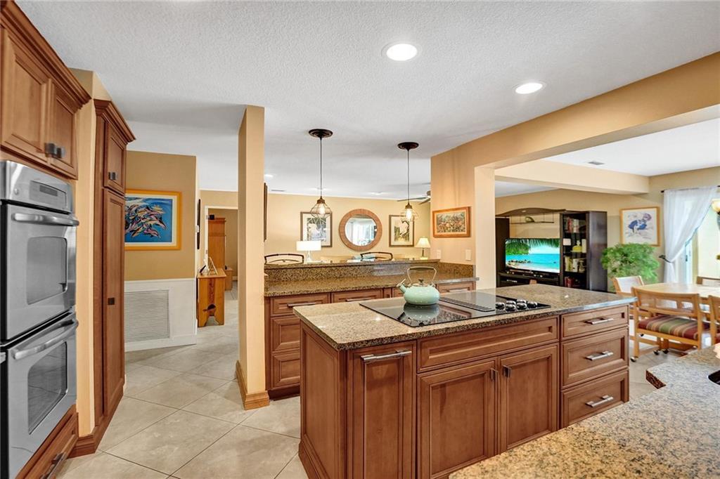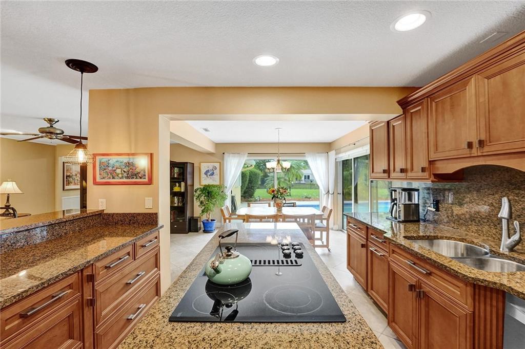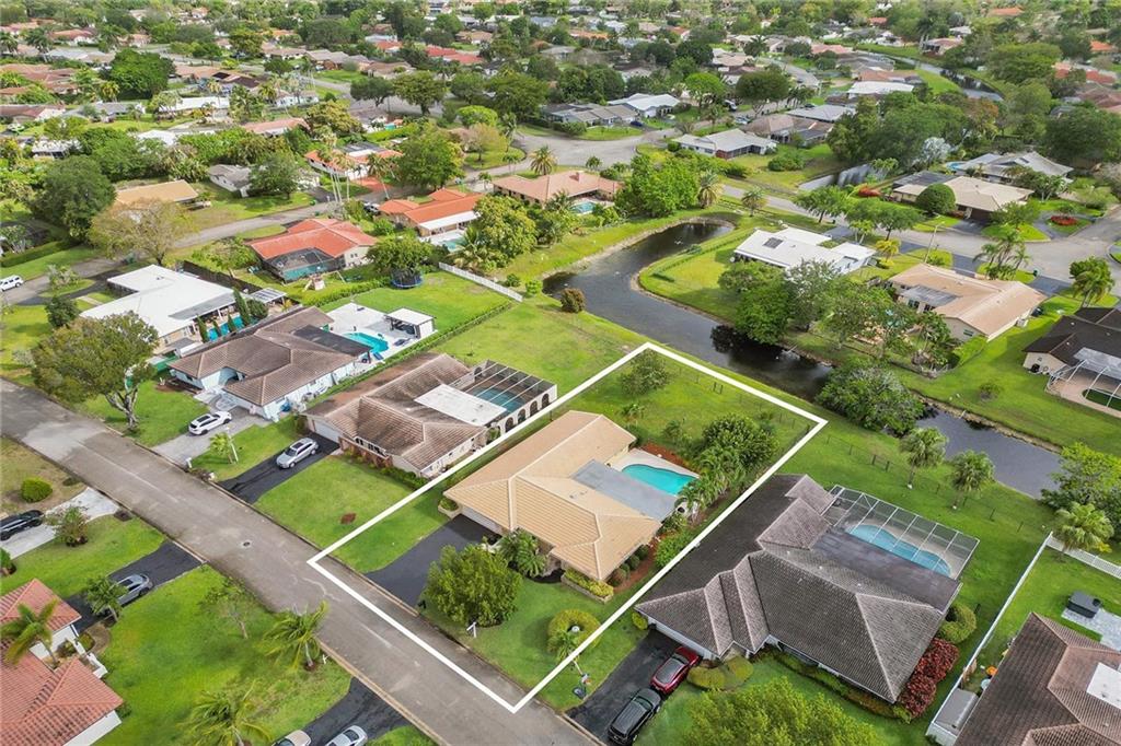 Oversized .28 acre waterfront lot in highly desirable Ramblewood neighborhood - NO HOA! 5 true bedrooms - tons of closets! Glass inlay double doors welcome you w/ tons of natural light. Split bedroom plan for added privacy. Beautifully updated kitchen w/ granite counters, island, and stainless steel appliances opens up to the large family room & eat-in kitchen area. Master bedroom has views of the pool & features XL walk-in closet w/ 2 sinks & built in extra storage. Updated master bathroom has an oversized shower w/ frameless glass door & waterfall shower head. 3 bedrooms towards the back have a pocket door for added privacy. 2nd bathroom is also updated & leads out to the pool. Extra deep lot is great for pets or kids. Flat roof - 2018, Barrel Tile Roof 2000, AC 2021, Water heater 2011.