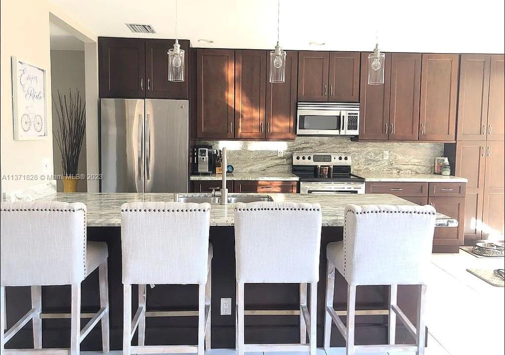 Beautiful lakeview, 4 bedroom, 3 bathroom, recently renovated kitchen, bathrooms, and pool. Eat in kitchen with beautiful granite countertops. Oversized master bedroom with walk out balcony and spacious master bathroom with dual sinks, large tub and separate shower. Large walk-in closet in master bedroom with builtins. Large closets in each bedroom with additional storage under the stairs. Hurricane shutters. Fresh exterior paint in 2022. 2 car garage. Quiet street with great neighbors. Located close to major highways, grocery stores and restaurants.