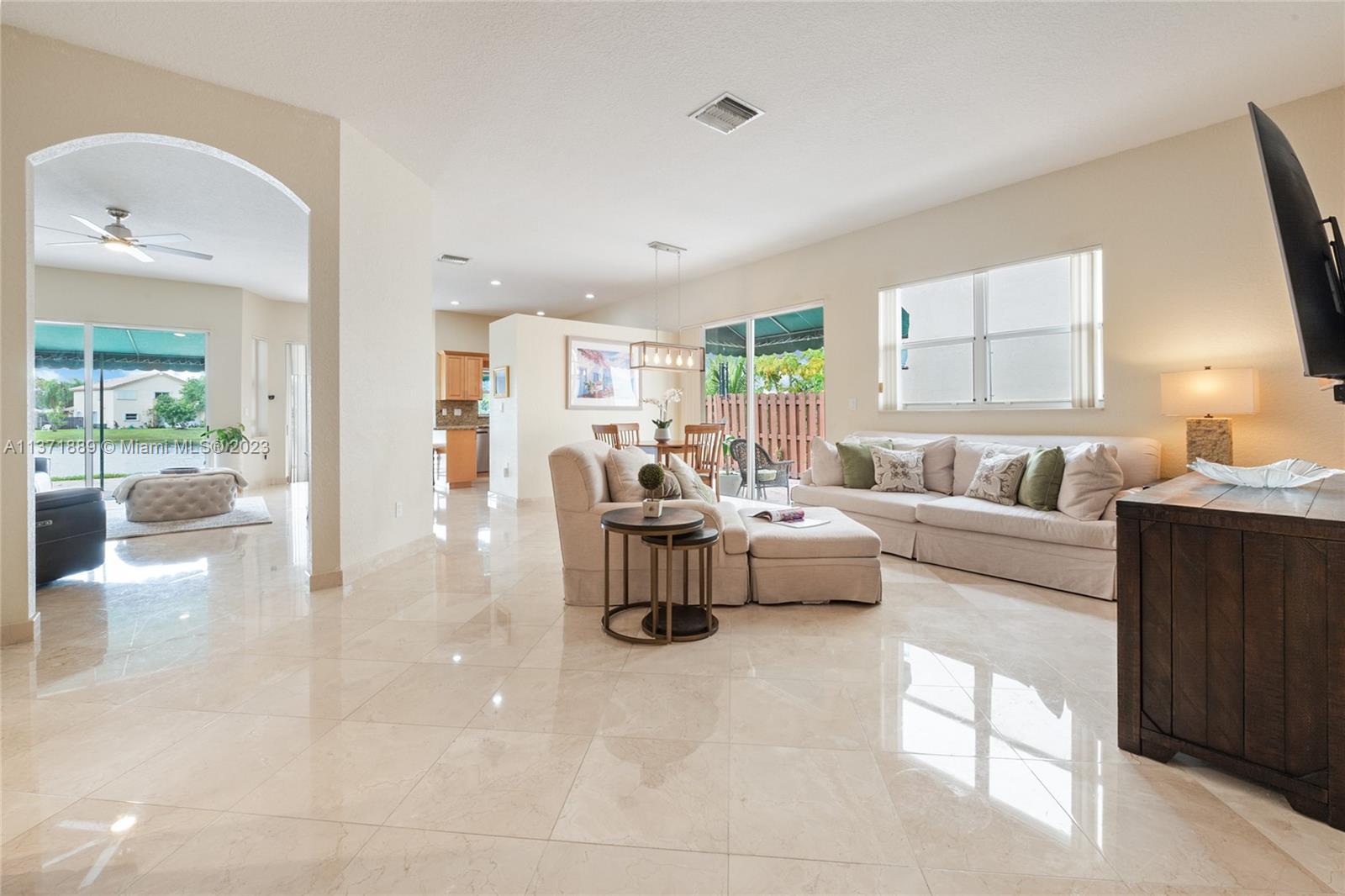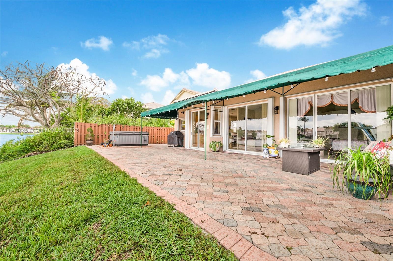 This beautiful one-story lakefront home is a rare find in the gated community of Doral Isles, complete with 24-hour security. The bedrooms are arranged in a split floor plan, with a large master bedroom that offers picturesque views of the lake and a luxurious ensuite bathroom. The backyard is a private oasis with a large Caldera Spa, pavers, and an awning. Additionally, this property is situated on a larger lot with no front-facing homes. Residents of Doral Isles enjoy resort-style living with access to a plethora of amenities such as a clubhouse, Olympic-style pool, hot tubs, sauna, full gym, exercise classes, tennis courts, massage room, restaurant, various party venues, soccer field, playground, bike and jogging trails, basketball and volleyball courts.