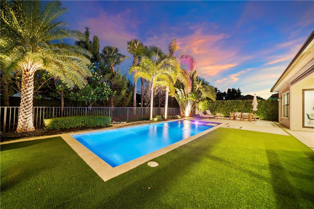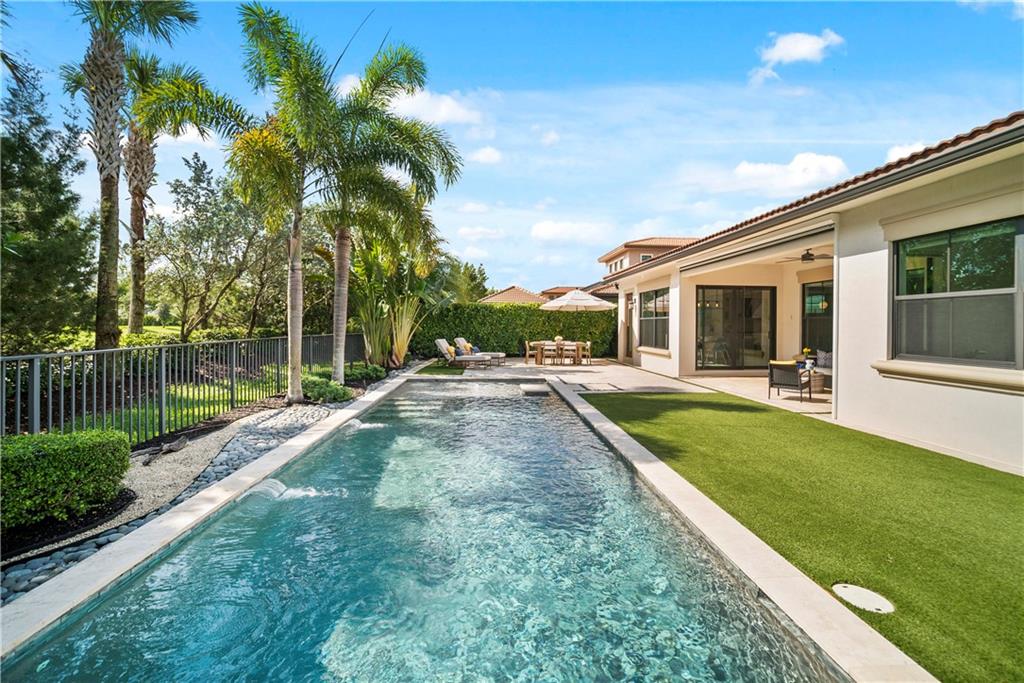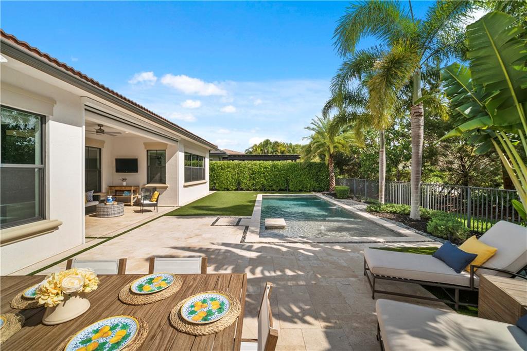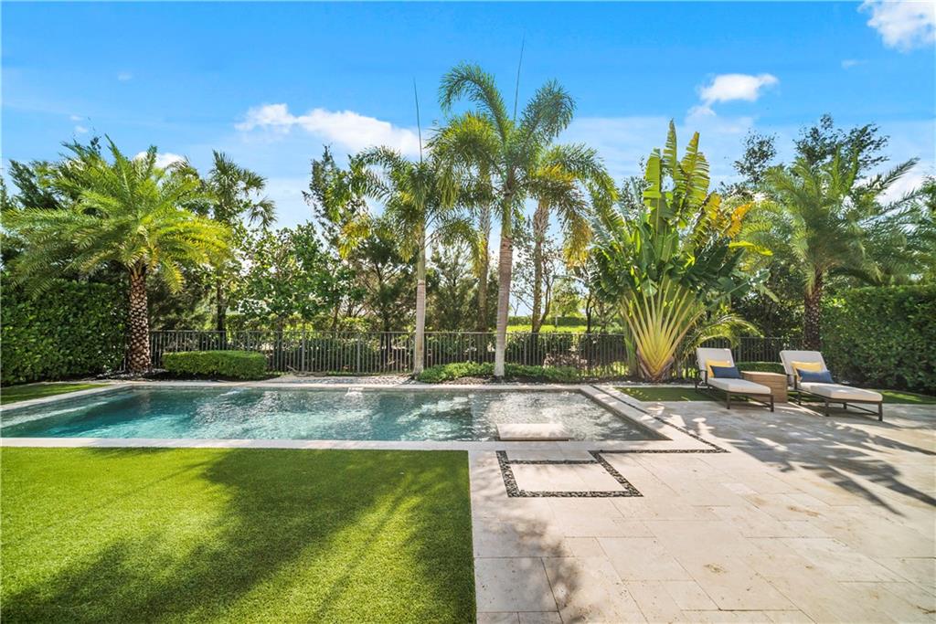 $250K in upgrades! Tropical paradise right in your back patio just in time for summer! Salt system heated/cooled pool w/LED lights, water features, 7ft sun shelf, extended patio area w/turf ideal for sunbathing & entertaining. Popular Hastings model w/4 beds, 2 full baths, 2 half baths, & 3-car garage. Huge kitchen w/3 inch quartz counters, gas range ideal for chef. Double ovens, stainless steel appliances, plantation shutters, updated light fixtures & Hunter Douglas custom window treatments, & retractable phantom shade in patio area. Spacious primary bed w/sitting area, walk-in closets w/built-ins, 24 inch porcelain tiles in main living areas, custom mud room, 2 pantries, updated landscaping & security cameras. HOA includes resort style amenities, A-rated schools, & 24-hour guard gated.