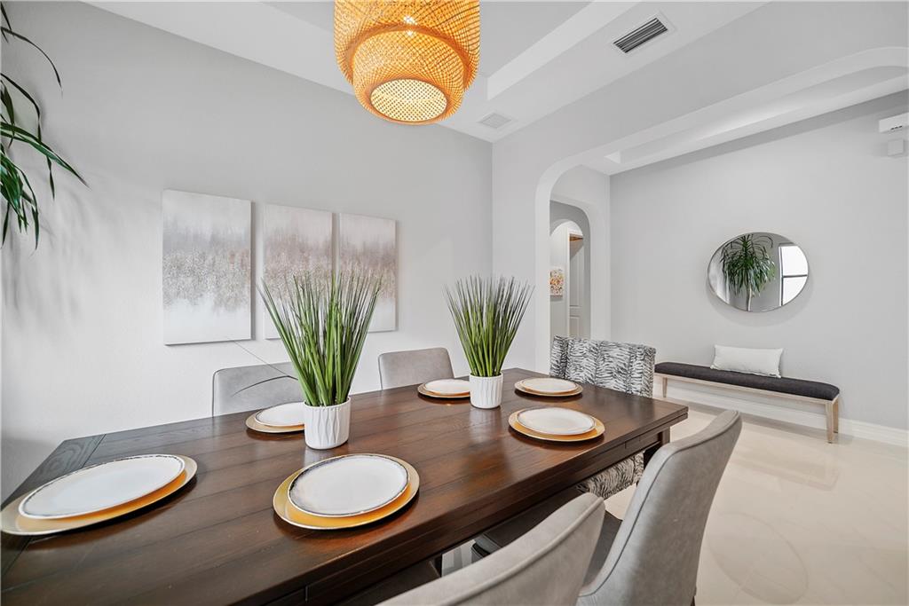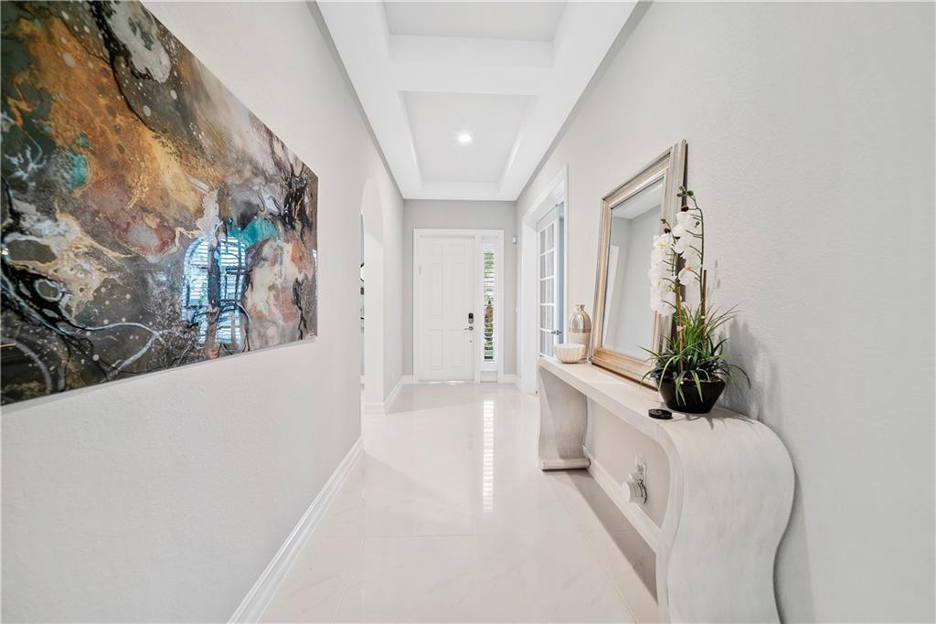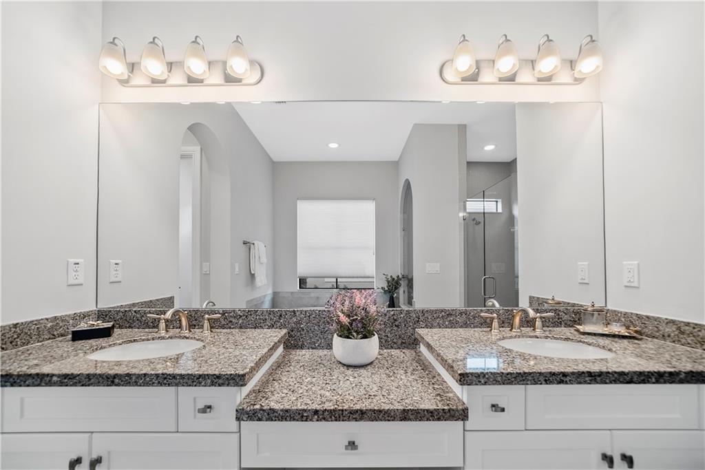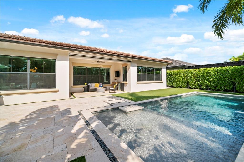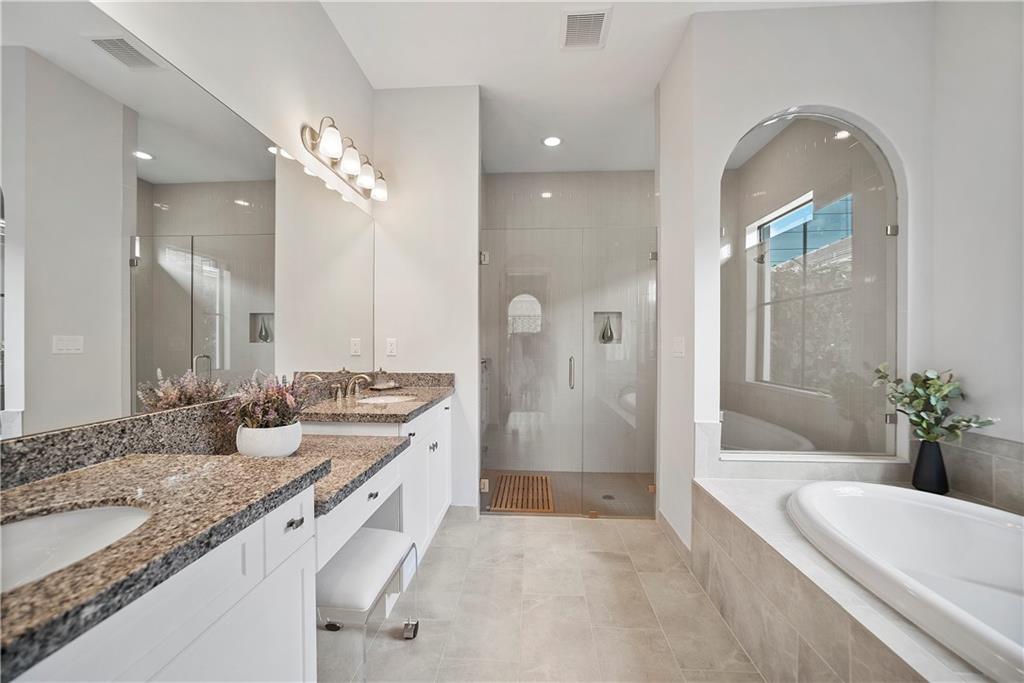 $250K in upgrades! Tropical paradise right in your back patio just in time for summer! Salt system heated/cooled pool w/LED lights, water features, 7ft sun shelf, extended patio area w/turf ideal for sunbathing & entertaining. Popular Hastings model w/4 beds, 2 full baths, 2 half baths, & 3-car garage. Huge kitchen w/3 inch quartz counters, gas range ideal for chef. Double ovens, stainless steel appliances, plantation shutters, updated light fixtures & Hunter Douglas custom window treatments, & retractable phantom shade in patio area. Spacious primary bed w/sitting area, walk-in closets w/built-ins, 24 inch porcelain tiles in main living areas, custom mud room, 2 pantries, updated landscaping & security cameras. HOA includes resort style amenities, A-rated schools, & 24-hour guard gated.