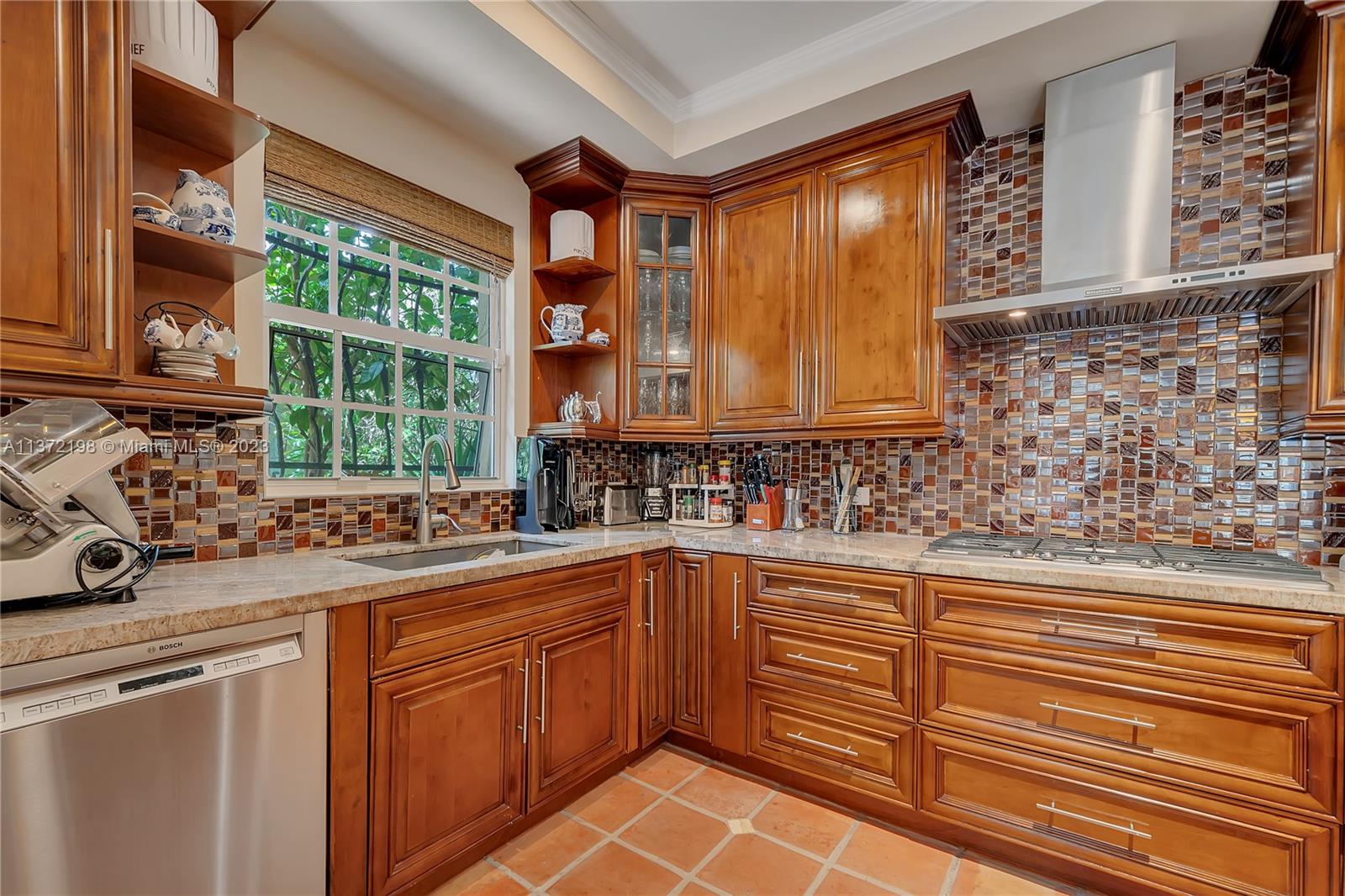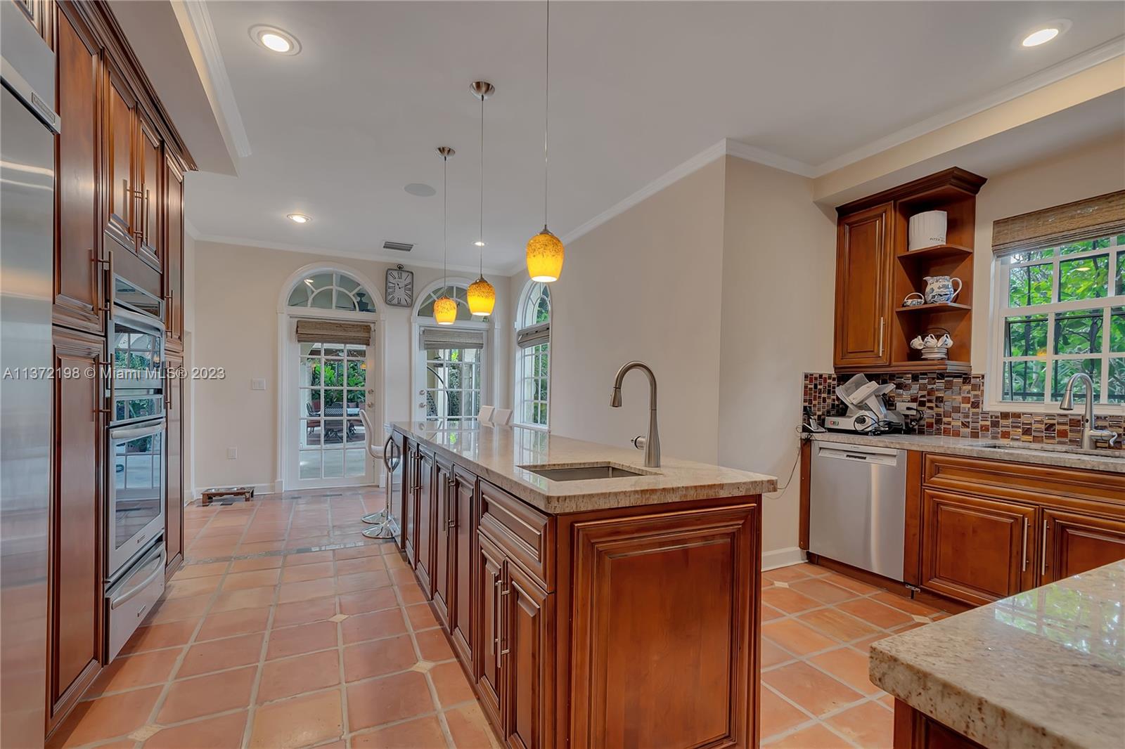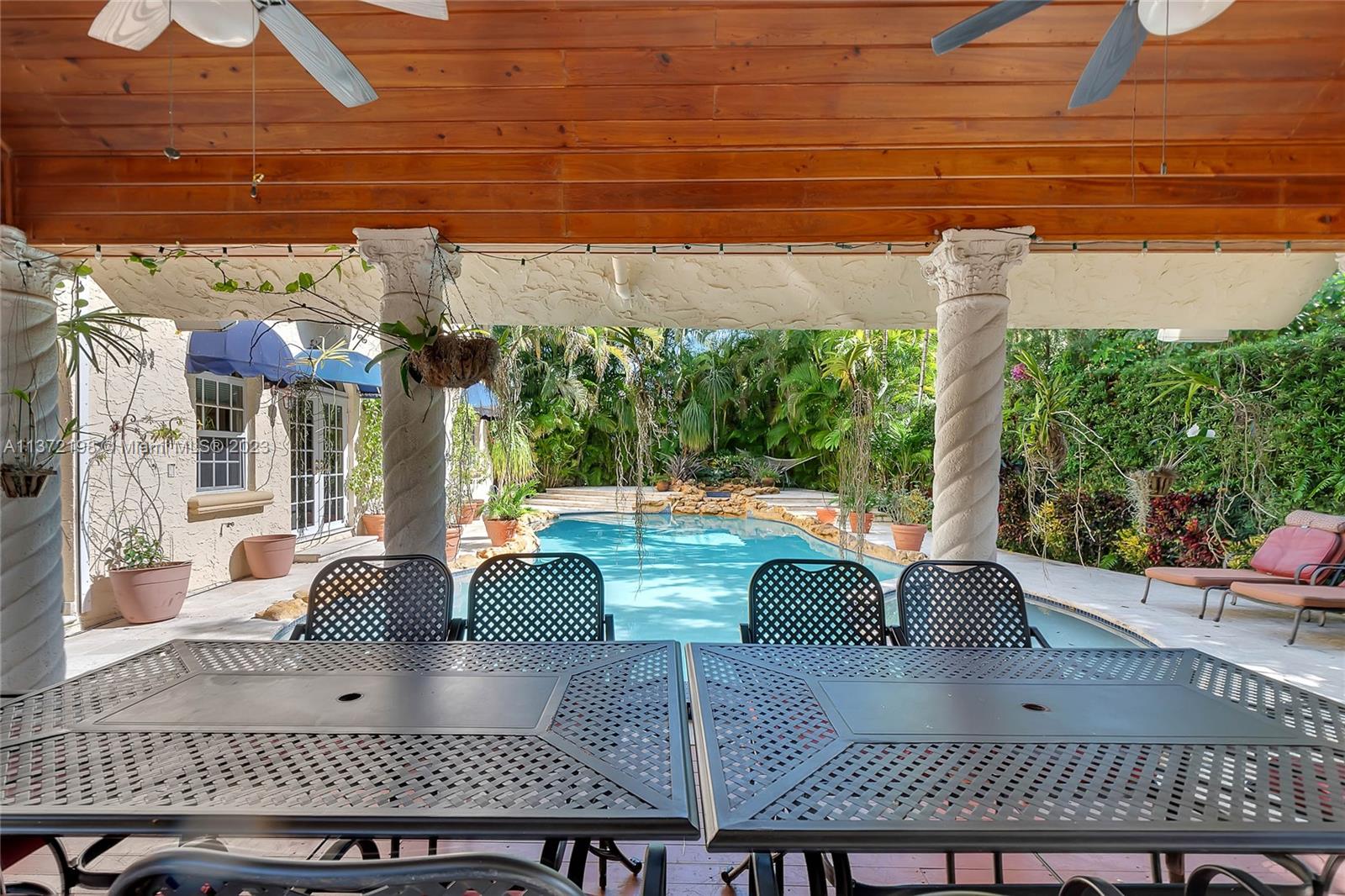 Stunning, classic Spanish style home built in 1923, renovated & move-in ready. 5 bdrm/ 3.5 bath home, on a 11,250 sq ft lot, on the quintessential Asturia Av in Coral Gables. Beautiful architectural details. Many entertaining areas incl. formal living w/ fireplace, formal dining, sunroom & charming interior courtyard. Fantastic chef’s kitchen w/ center island, granite counters, wood cabinetry, gas stove. Spacious family rm. 3 bdrms up incl. grand primary suite w/ fireplace, marble bath, terrace w/ seating. 1 ensuite bdrm down, perfect for guests. Relax under the shade on one of many covered patios surrounding the pool & heated jacuzzi. Lush landscaping. Gated, brick paver circular driveway. 2 car garage. Full home generator. Impact windows/doors. Only 1 block from Granada Golf Course.