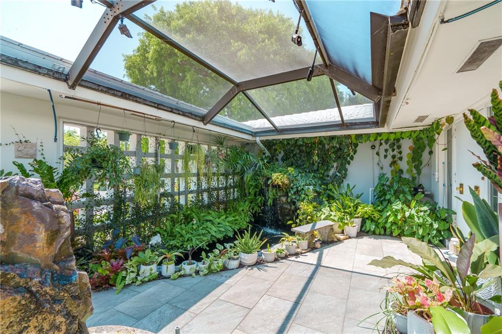 Unique lines in this mid century home offer a fine compliment to both the indoor and outdoor space. Enter the house through a double door courtyard into a well established garden complete with water features and koi pond. The large courtyard windows offer a view into the home, though the house to the backyard pool area. A second double door entry leads you into the home. The kitchen is surrounded by the "round room", a unique feature to this floorplan as well as a garden room. The split bedroom floor plan is a three bedroom, two and a half bath, a large great room, living and dining area. Newer roof, AC and water heater. Full house generator, natural gas, impact windows and doors. The area is walkable to restaurants and 1.5 miles to Lauderdale by the Sea. Property offered AS-IS.