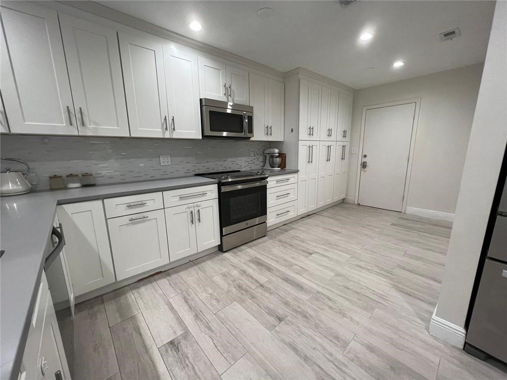 Stunning remodeled 3-bedroom townhome in the desirable neighborhood of Townhouses of Emerald Hills in Hollywood. Open style modern kitchen with brand new white shaker cabinets, built in wine cooler, quartz counter tops, and stainless-steel Whirlpool appliances. Wood-look porcelain floors throughout the kitchen, living room, and dining rooms. Dark wood laminate flooring in the bedrooms and a jack and jill bathroom. Bathrooms renovated with porcelain tile, quartz counter tops, and new shower glass doors. This one level townhouse also includes a back screened in patio with a garden view and hurricane shutters surrounding the home.