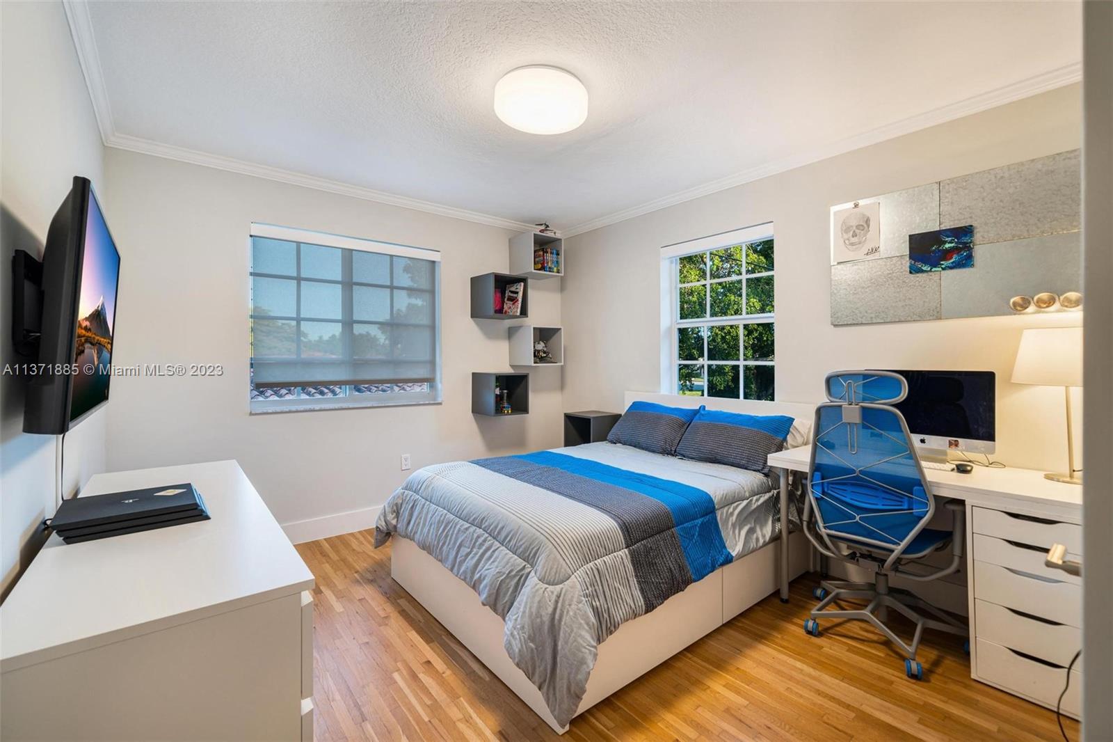 The perfect balance between style & functionality. Meticulously renovated home with exceptional attention to detail features 4 generously-sized bedrooms, 2 baths upstairs & a renovated ½ bath downstairs. Architect-designed features like the handcrafted oak bookshelves & stair add unique character to the living room while the vaulted ceiling in the family room creates warmth & invites you to kick up your feet. Lush landscaping surrounds the property providing privacy & a feeling of seclusion in the heart of Coral Gables. Improvements include impt. windows & doors, renovated kitchen, replacement of cast iron & new copper water lines, custom lighting & much more. Short walk to the Youth Center & Library, top schools, restaurants & shopping, this is the best way to enjoy South Florida living.