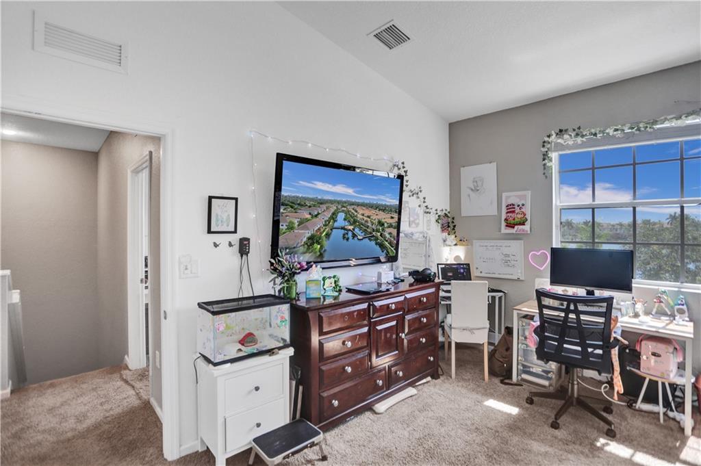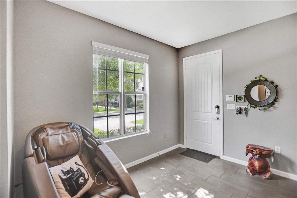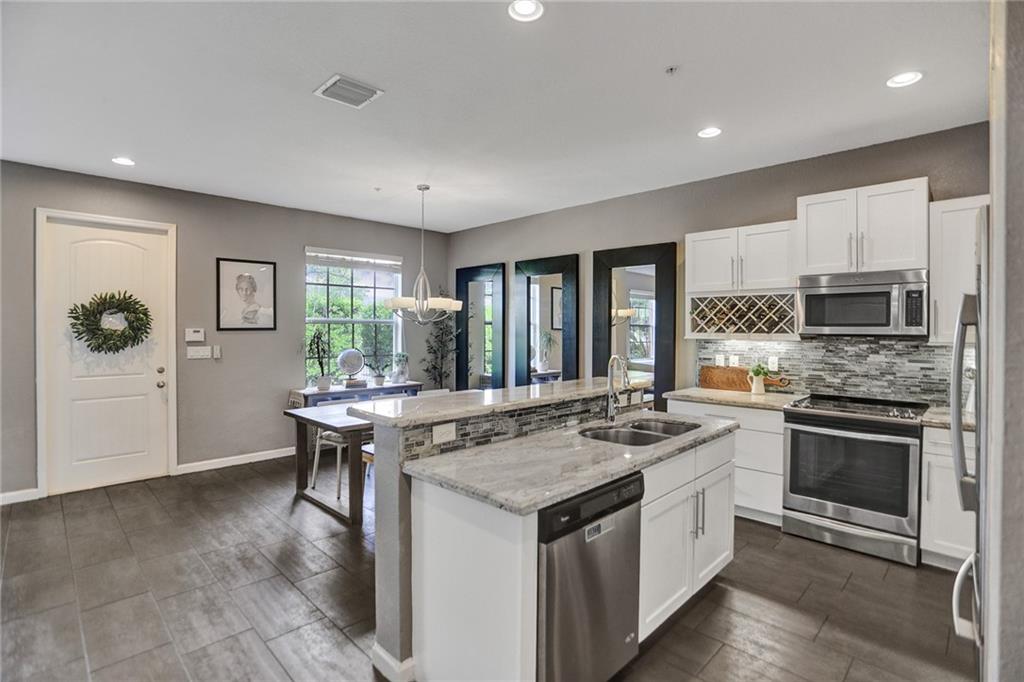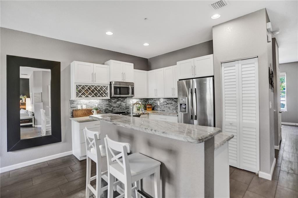Stylish updated 3/2.5 corner Townhome with direct lake view in Orchid Grove. Truly one of a kind. One of the larger units in the complex. Hurricane Impact Windows & Doors. Bright & airy open concept floor plan. 1st floor boast 9.5 ft ceilings, Gourmet kitchen, Granite countertops, wine rack, SS appliances. Over sized living/kitchen area. Upgraded 12x24 plank tile, den and 1/2 bath. Enjoy 9 ft ceilings on the second floor. Over sized master bedroom, large closets and spa like master bathroom with soaking tub & shower. 2 nicely sized guest bedroom. Gorgeous guest bathroom with upgraded cabinet & flooring. Larger 1 car garage with epoxy floor. Oversized driveway that will accommodate 2 cars. Plenty of outdoor space to grill and entertain while enjoying full lake view. Private backyard.
