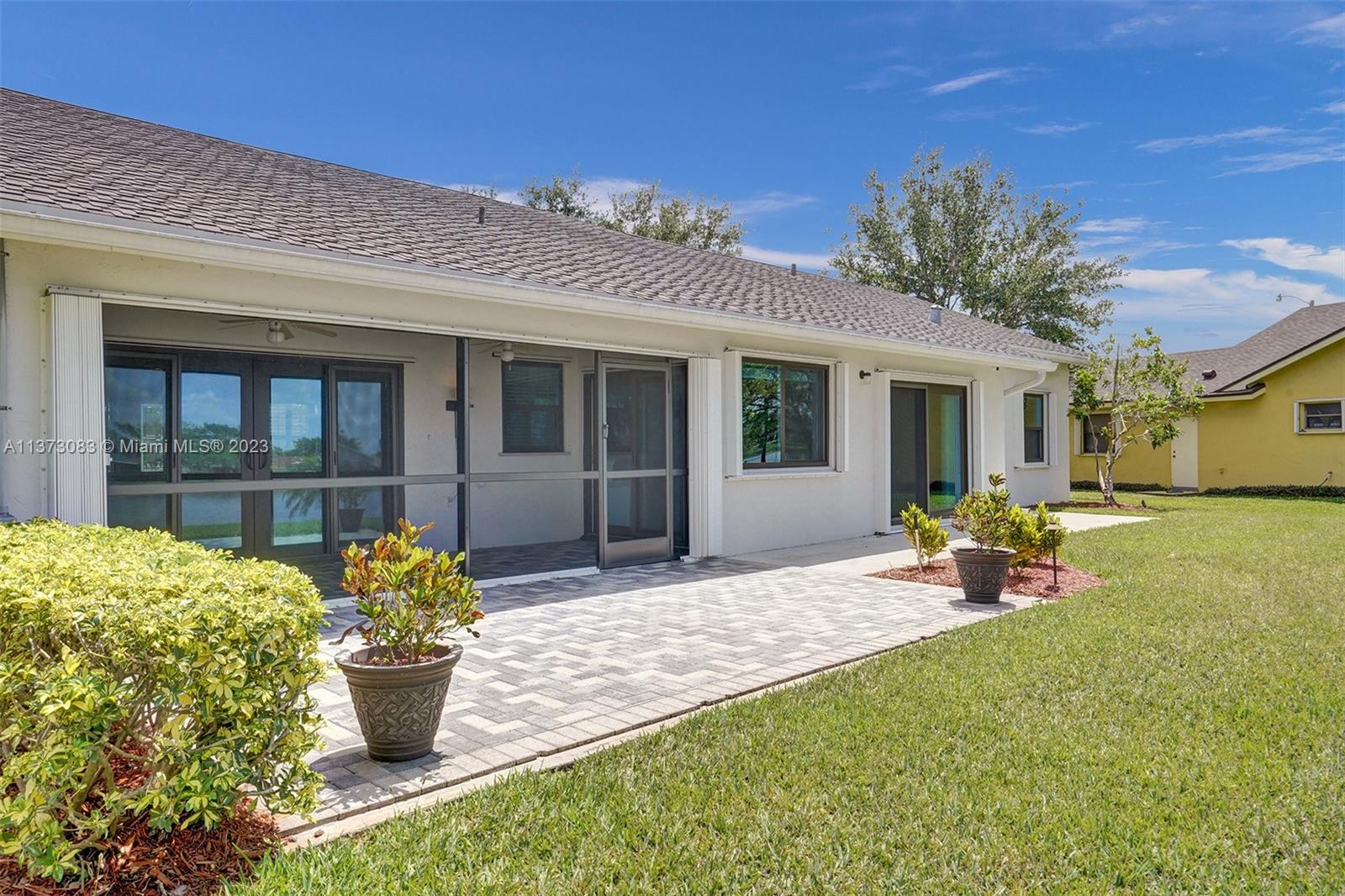 This popular Mt. Vernon model is situated on a OVERSIZED 16,000 SF CORNER LAKEFRONT LOT with plenty of ROOM FOR A POOL. IMPACT WINDOWS AND DOORS INSTALLED 2019 . Ceramic tile floors in main living area and WOOD-LOOK TILE FLOORS IN ALL BEDROOMS. Kitchen features WOOD CABINETS with GRANITE COUNTERTOPS. Master bath has DUAL SINKS and ROMAN TUB W/ SEPARATE WALK-IN SHOWER. Master bedroom has TWO SPACIOUS WALK-IN CLOSETS. Screened patio has WIDE SERENE LAKE VIEW and an EXTENDED PATIO AREA with pavers. A/C replaced 2020. Mud sink in laundry room. Close to Rose Price Park, which features a community pool, tennis courts, and club house. Excellent schools. Make this your home today!