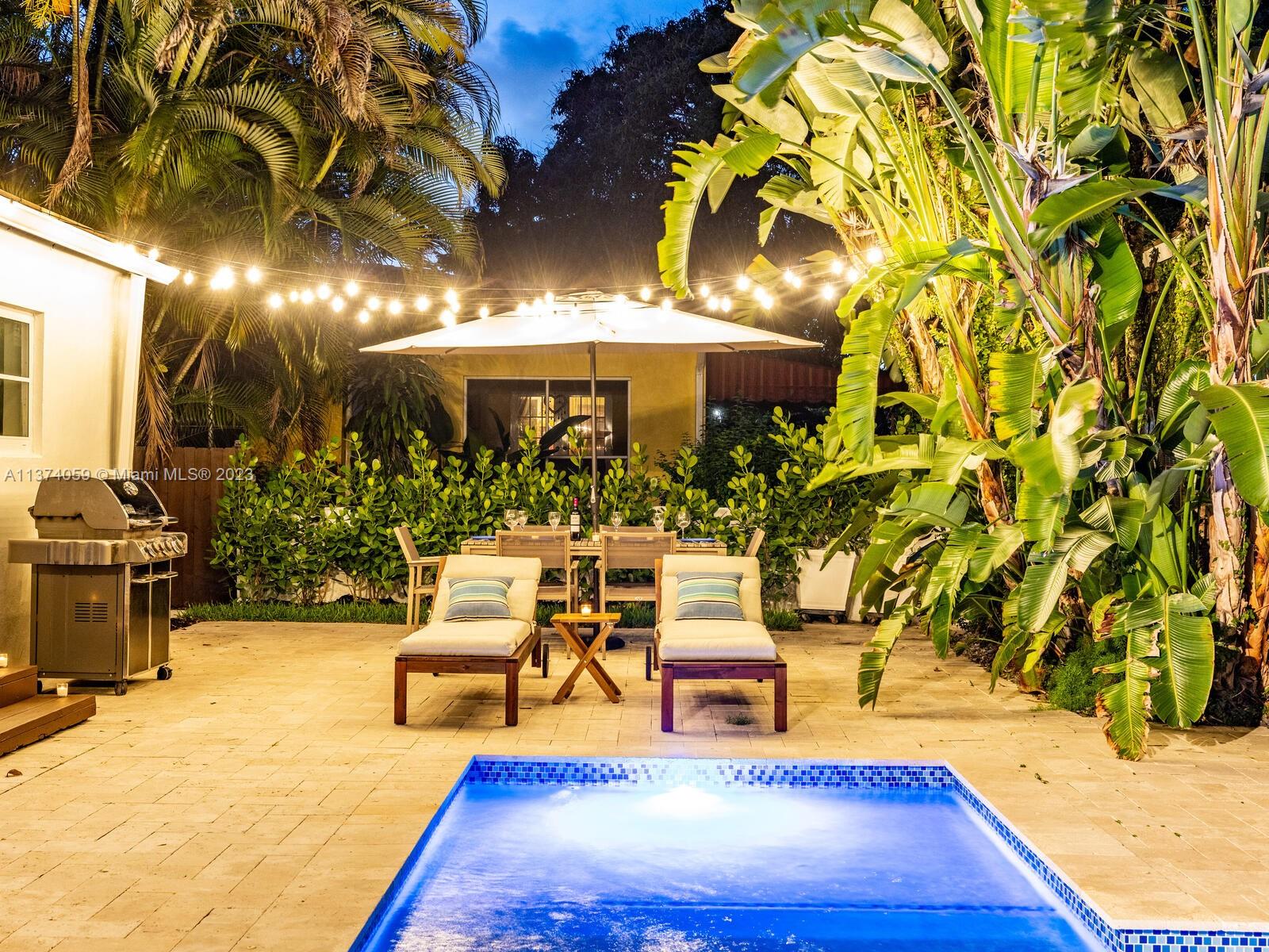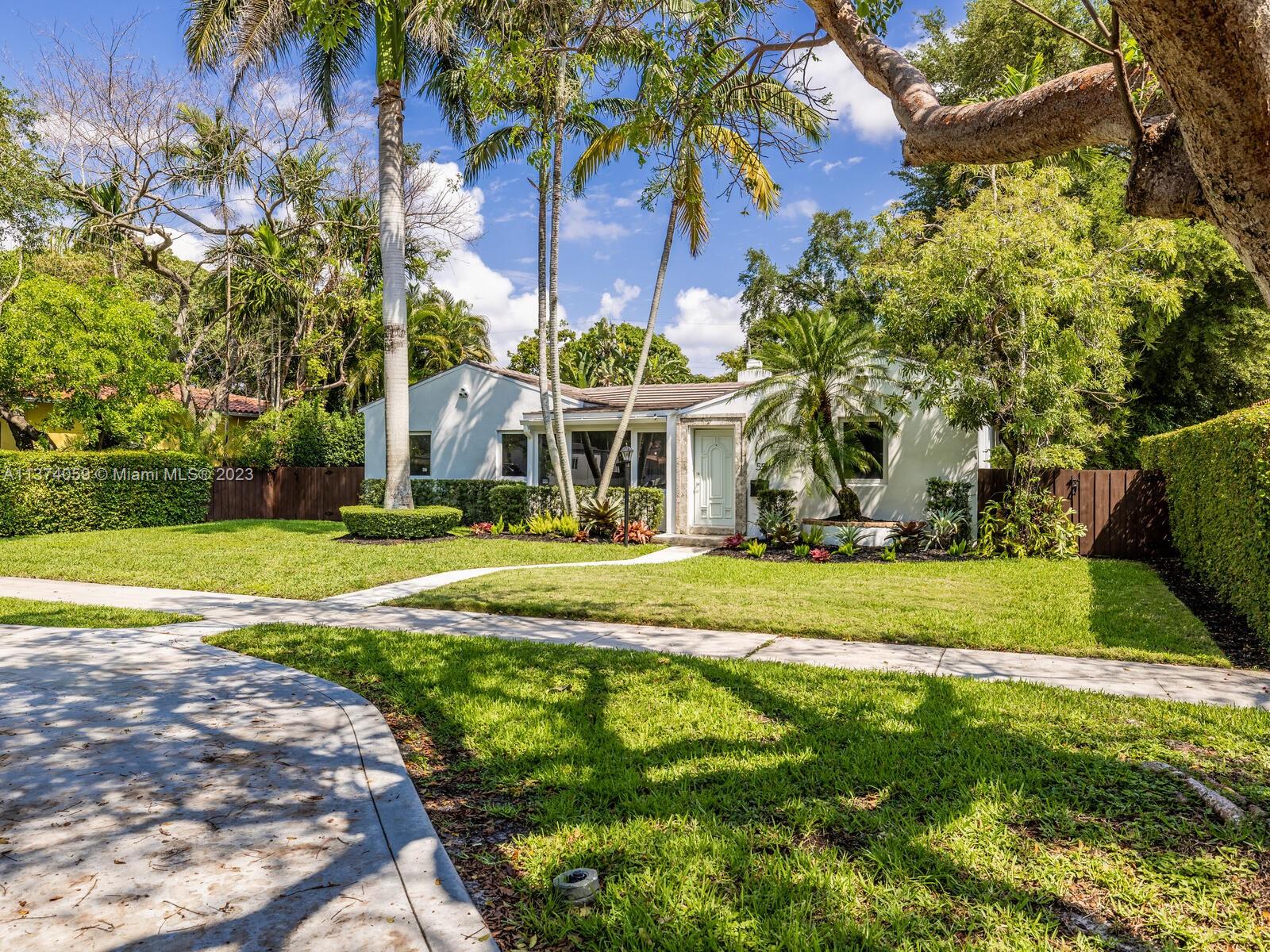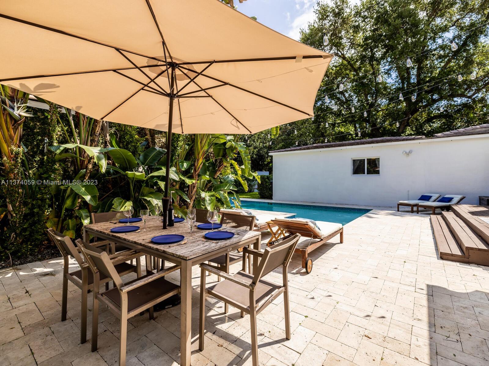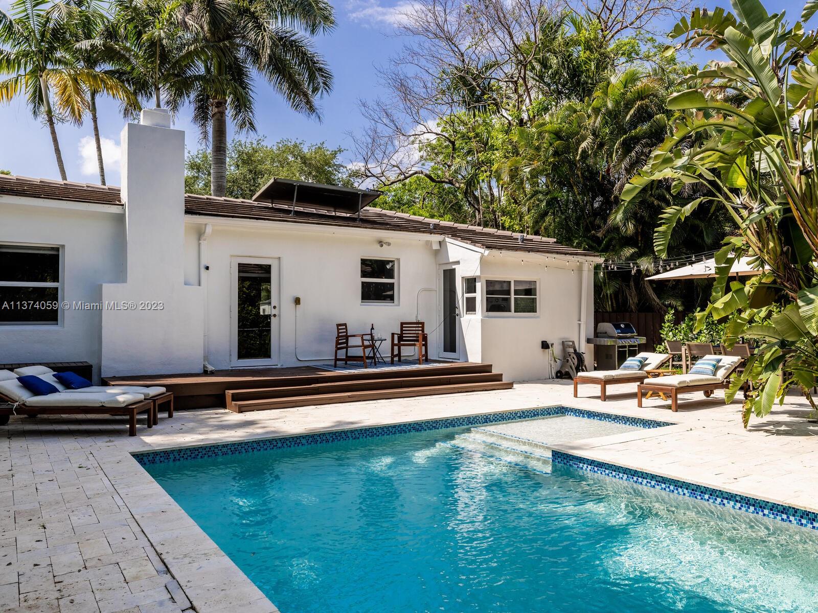 Welcome to Casa Palmera! You’ll feel like you’re in your own personal resort in this nicely-updated 4-bedroom 3-bath Miami Shores pool home. Fantastic interiors, with open-flow living, beautiful wood floors, chef’s eat-in gourmet kitchen, elegant dining with tray ceilings, laundry room, impact windows-doors, and a split bedroom plan for extra privacy, including a tucked away en-suite perfect for guests or nanny. Escape to the Tulum-inspired backyard oasis with cool sparkling pool, entertainment decks, gorgeous lush landscaping, an Instagram-ready vintage built-in BBQ wall, plus a detached huge 484 SF 2-car garage that could also be converted to a pool cabana for added enjoyment. All in a fantastic non-flood zone location, less than two blocks to Downtown Miami Shores shops and restaurants.