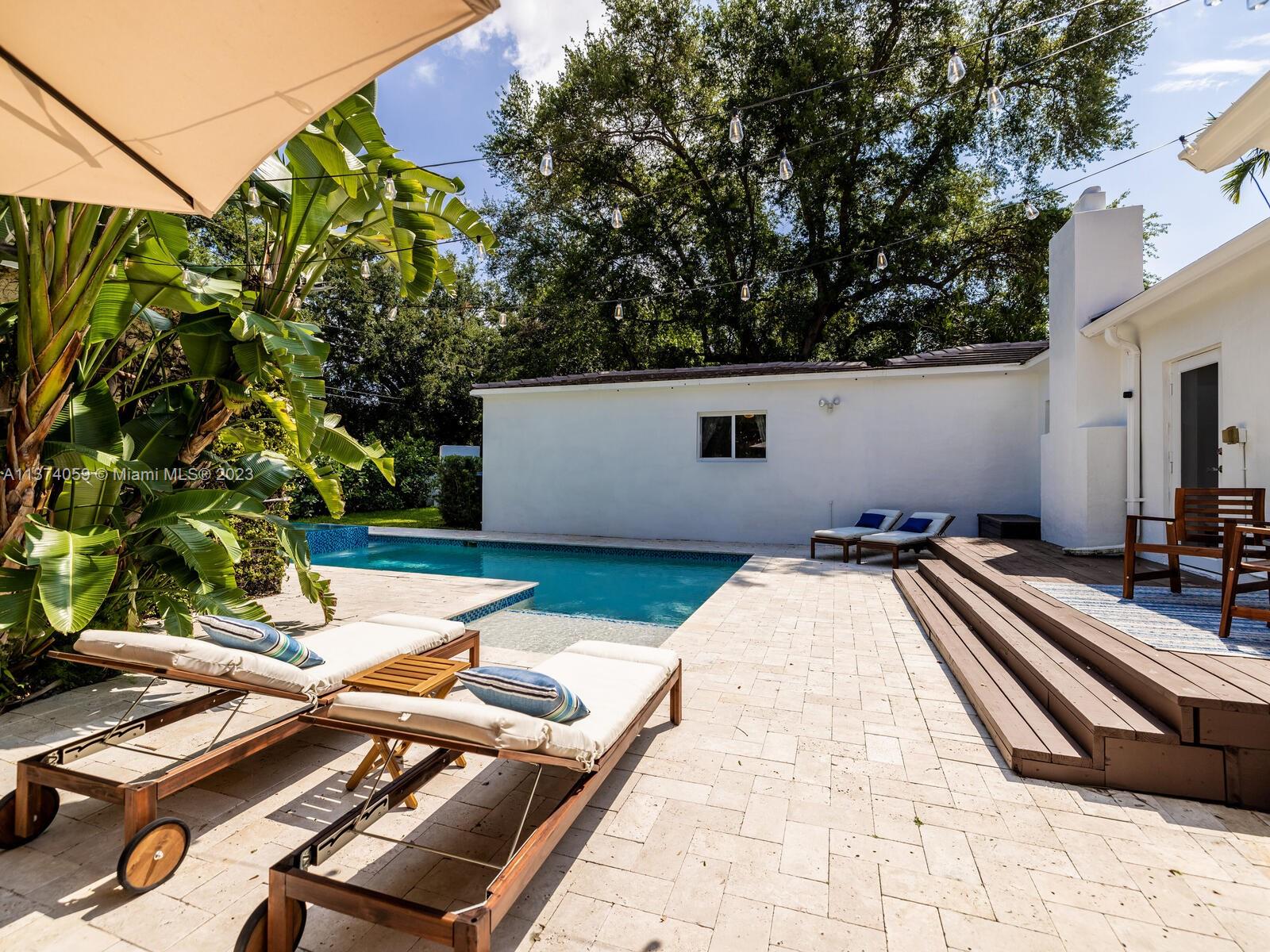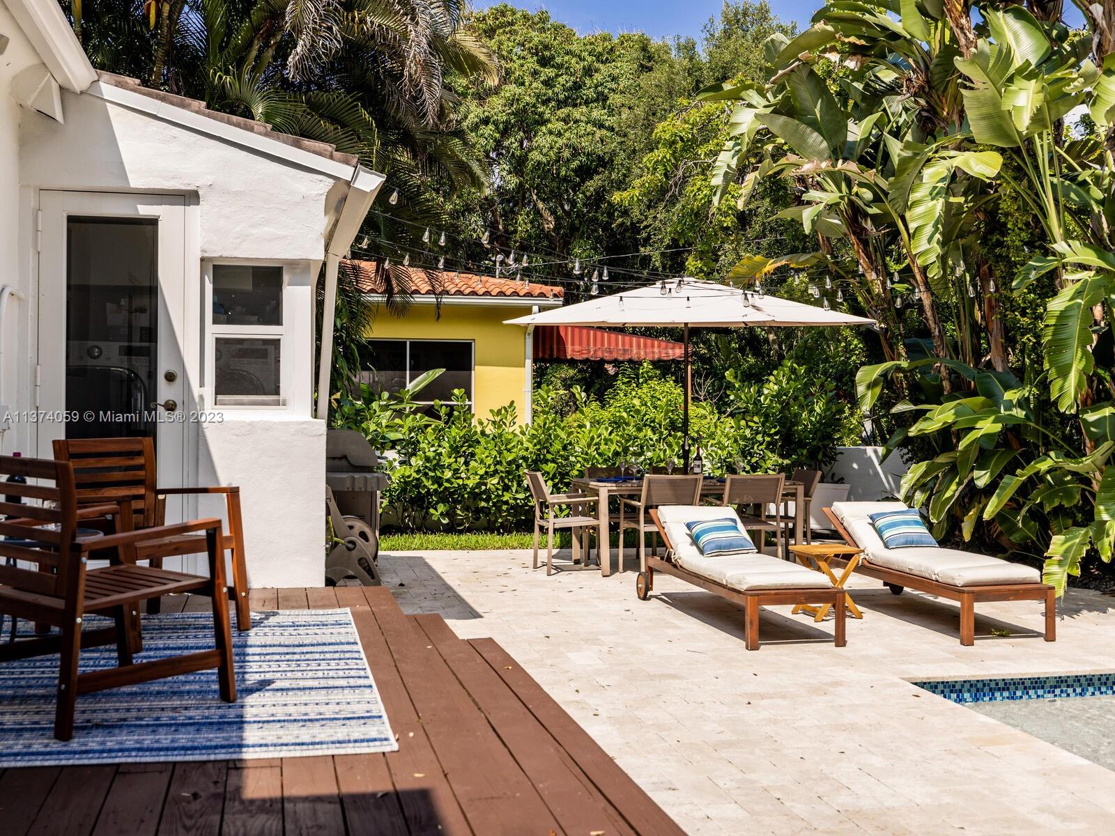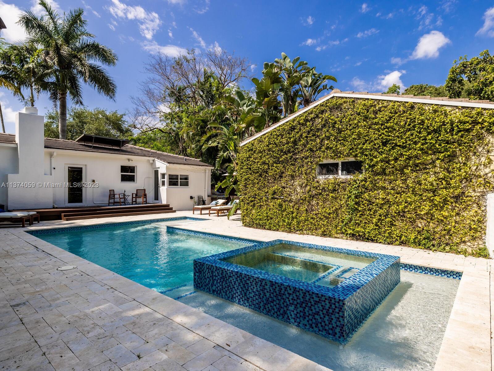 Welcome to Casa Palmera! You’ll feel like you’re in your own personal resort in this nicely-updated 4-bedroom 3-bath Miami Shores pool home. Fantastic interiors, with open-flow living, beautiful wood floors, chef’s eat-in gourmet kitchen, elegant dining with tray ceilings, laundry room, impact windows-doors, and a split bedroom plan for extra privacy, including a tucked away en-suite perfect for guests or nanny. Escape to the Tulum-inspired backyard oasis with cool sparkling pool, entertainment decks, gorgeous lush landscaping, an Instagram-ready vintage built-in BBQ wall, plus a detached huge 484 SF 2-car garage that could also be converted to a pool cabana for added enjoyment. All in a fantastic non-flood zone location, less than two blocks to Downtown Miami Shores shops and restaurants.
