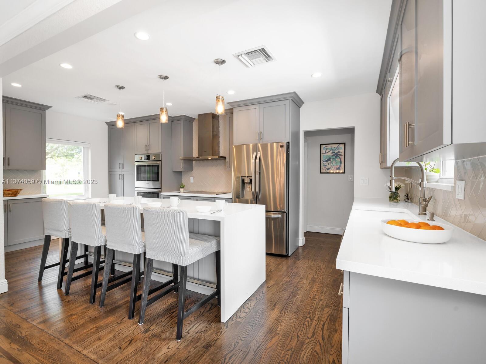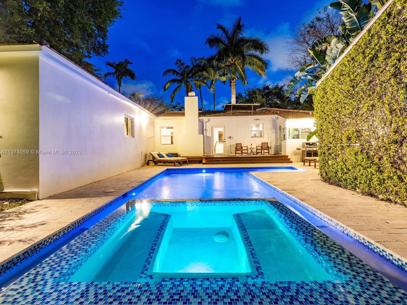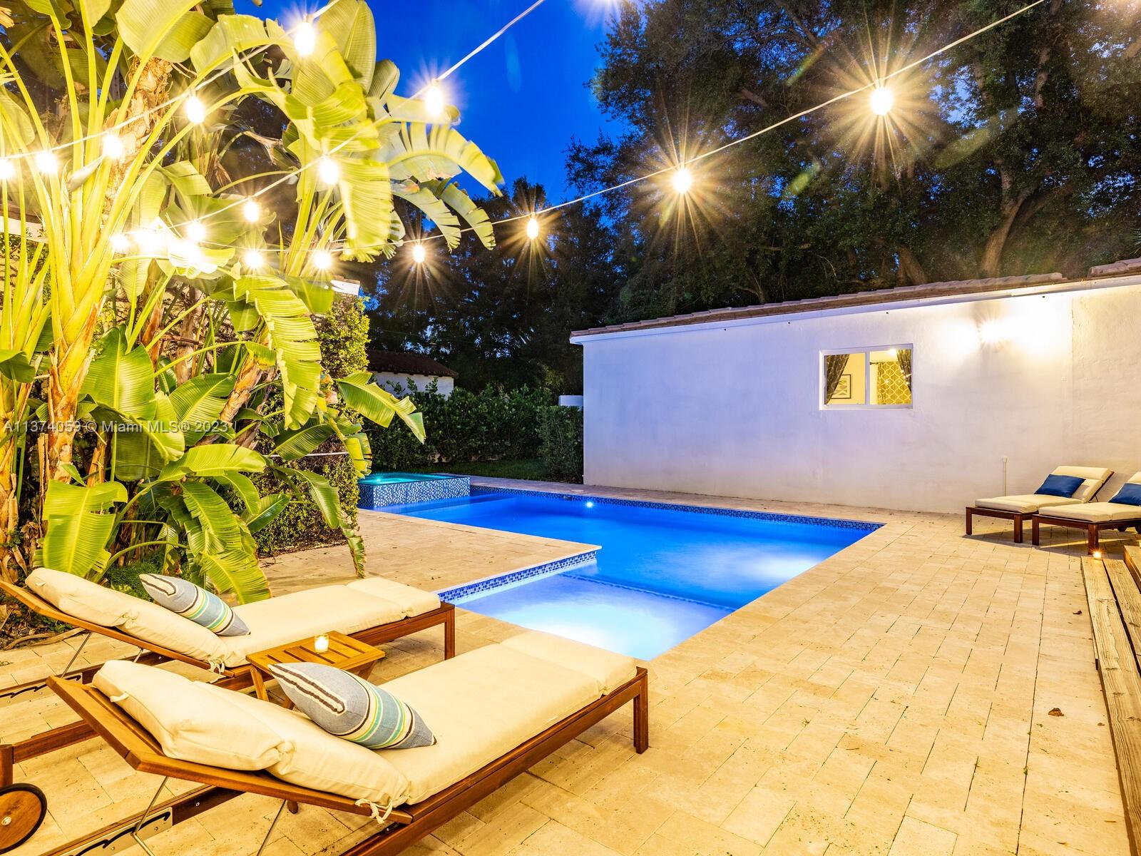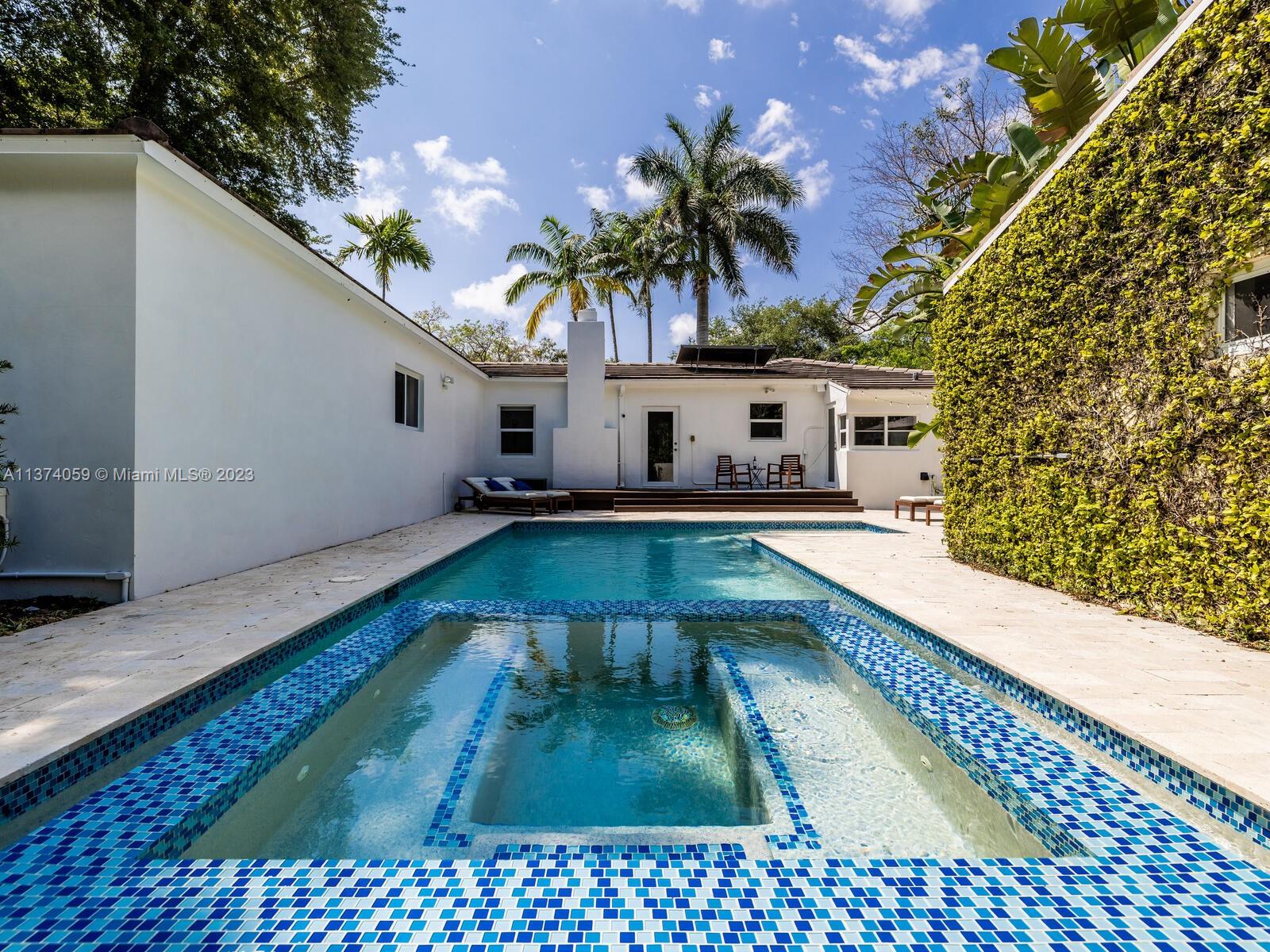 Welcome to Casa Palmera! You’ll feel like you’re in your own personal resort in this nicely-updated 4-bedroom 3-bath Miami Shores pool home. Fantastic interiors, with open-flow living, beautiful wood floors, chef’s eat-in gourmet kitchen, elegant dining with tray ceilings, laundry room, impact windows-doors, and a split bedroom plan for extra privacy, including a tucked away en-suite perfect for guests or nanny. Escape to the Tulum-inspired backyard oasis with cool sparkling pool, entertainment decks, gorgeous lush landscaping, an Instagram-ready vintage built-in BBQ wall, plus a detached huge 484 SF 2-car garage that could also be converted to a pool cabana for added enjoyment. All in a fantastic non-flood zone location, less than two blocks to Downtown Miami Shores shops and restaurants.