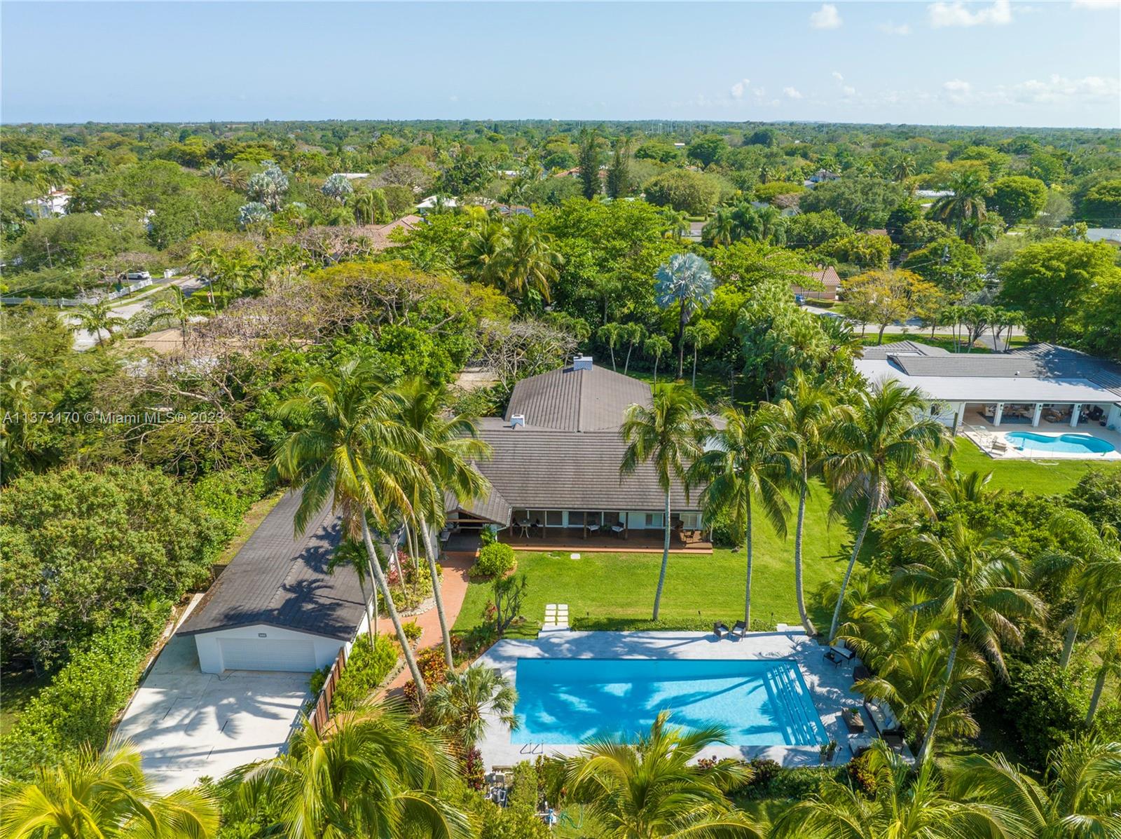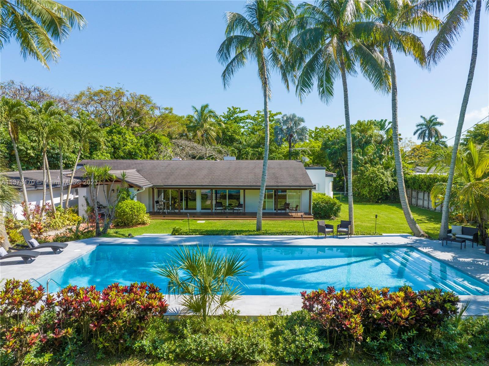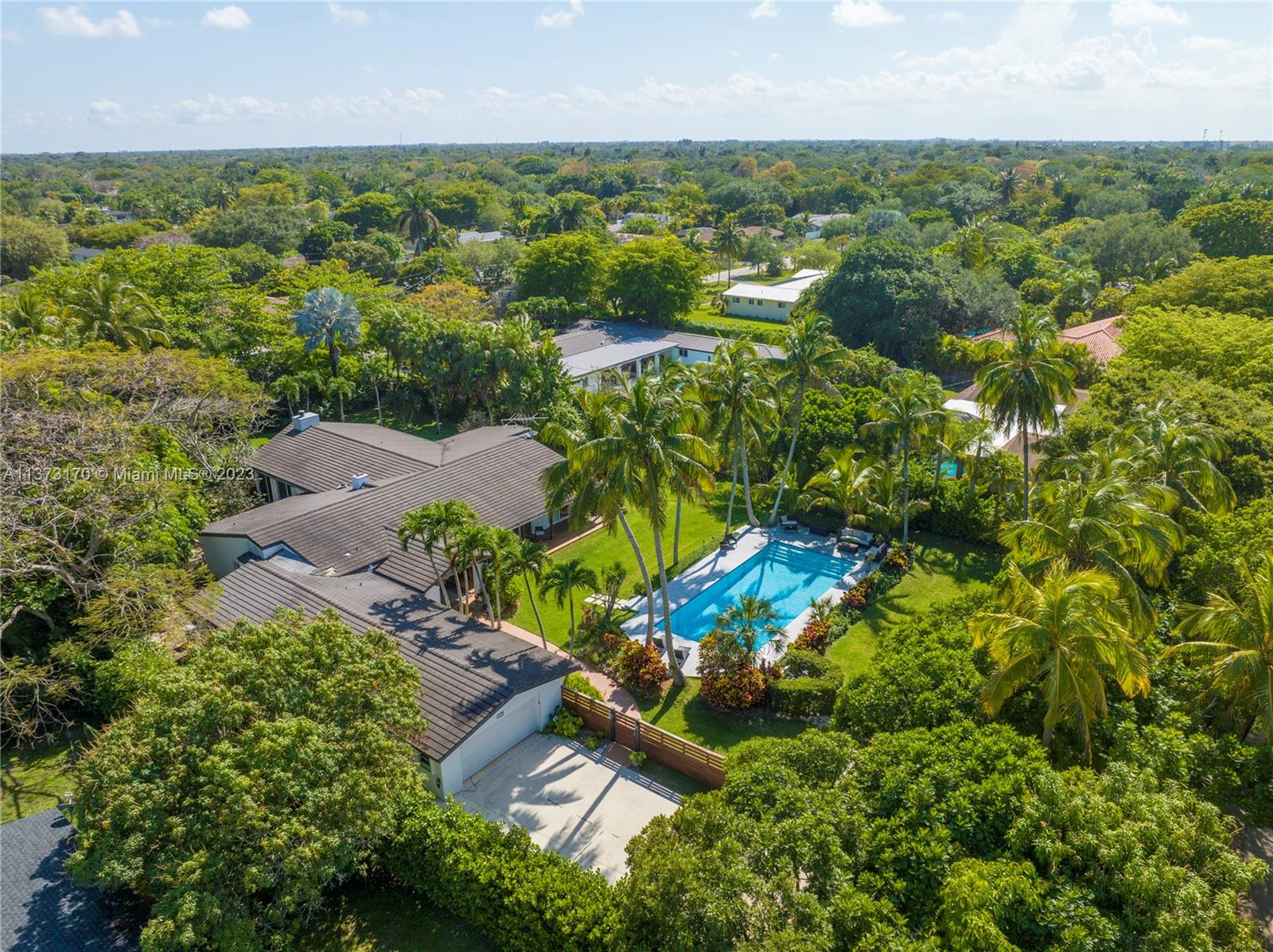 Coconut Grove staycation home vibes in Pinecrest! Enter through the gates to your tranquil, private street-to-street acre oasis. This stunning 4 bed/4.5 bath plus office is surrounded by lush landscaping on perfectly manicured grounds. The large owners suite is split for privacy, while the chef’s kitchen opens to oversized dining/family room. Plentiful windows and sliding doors allow in natural light to the indoor/outdoor open floor plan all leading to an oversized pool/patio perfect for enjoying South Florida living and entertaining. Bonus 4 car garage w/ ample space to store/park a boat and other toys. Hop on bordering paths steps away from parks and top-rated private, and public schools. Who is ready to call this fantastic oasis/house and neighborhood in The Village of Pinecrest, home?