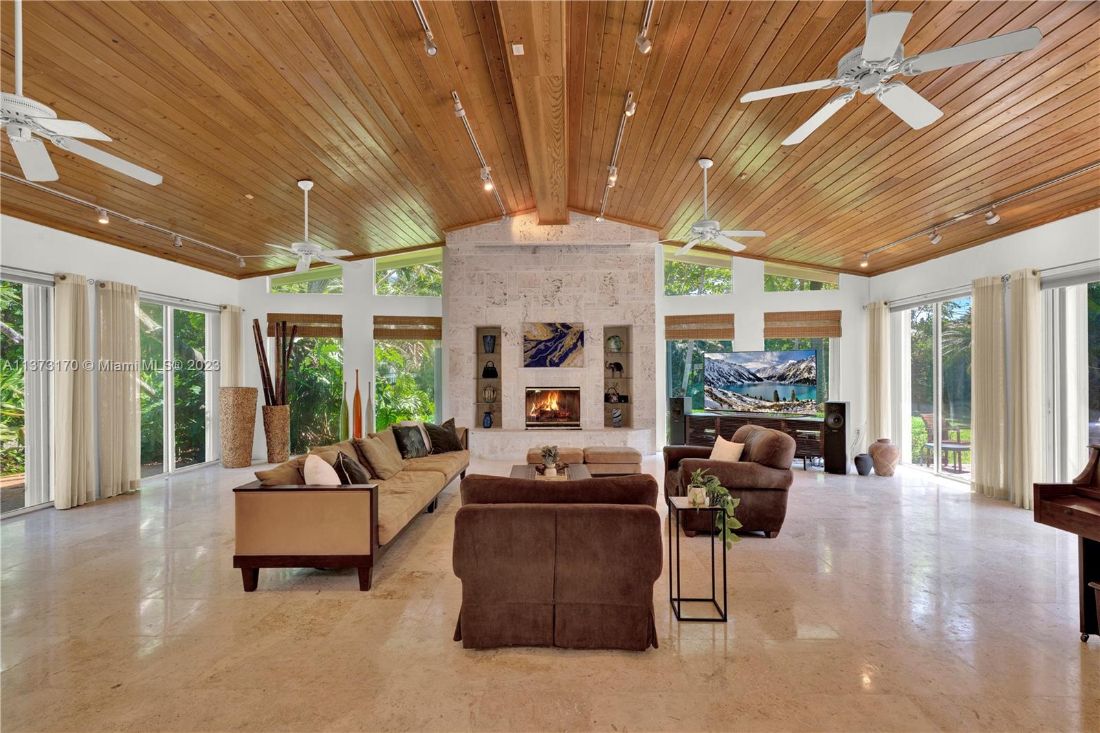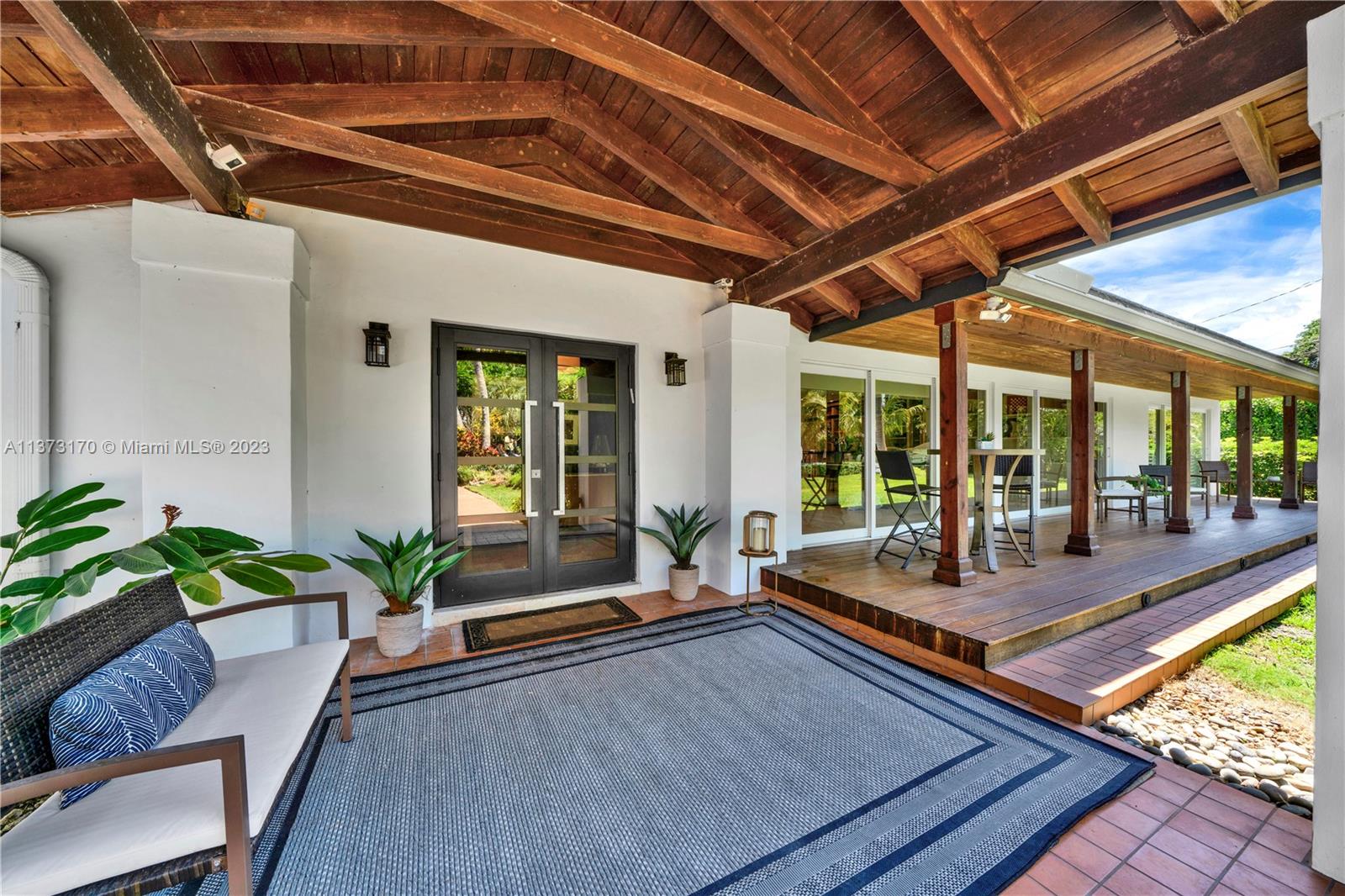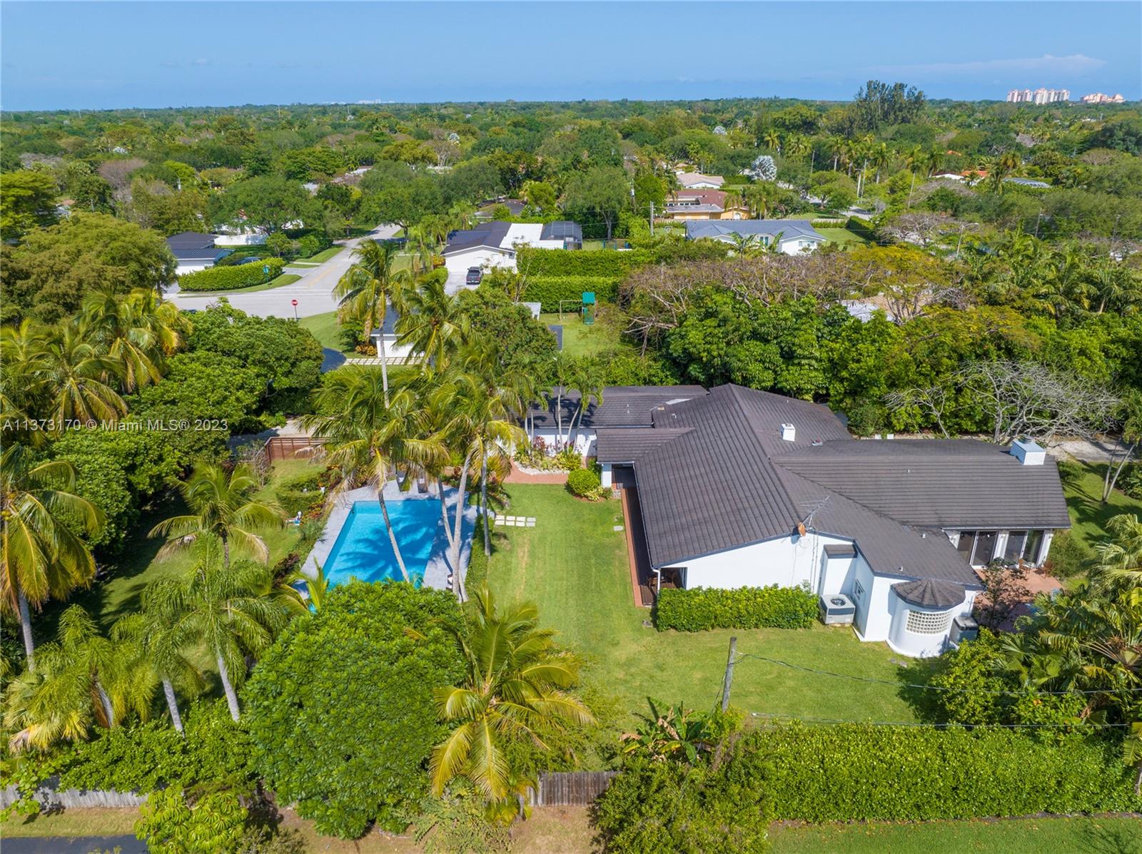 Coconut Grove staycation home vibes in Pinecrest! Enter through the gates to your tranquil, private street-to-street acre oasis. This stunning 4 bed/4.5 bath plus office is surrounded by lush landscaping on perfectly manicured grounds. The large owners suite is split for privacy, while the chef’s kitchen opens to oversized dining/family room. Plentiful windows and sliding doors allow in natural light to the indoor/outdoor open floor plan all leading to an oversized pool/patio perfect for enjoying South Florida living and entertaining. Bonus 4 car garage w/ ample space to store/park a boat and other toys. Hop on bordering paths steps away from parks and top-rated private, and public schools. Who is ready to call this fantastic oasis/house and neighborhood in The Village of Pinecrest, home?