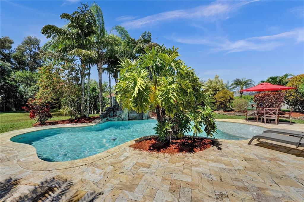 Nestled in SW Ranches, this home of 4 bed 2 bath offers an unrivaled living experience that blends indoor & outdoor living. With an exquisite pool with gazebo & waterfall, the resort-style backyard spans over 2,000 sf of Travertine, providing the perfect ambiance for relaxation & entertainment. Sellers have made this home the ultimate gathering place with an extended front porch & a huge screened back patio, an inviting atmosphere that is both luxurious & comfortable. Step inside to see a custom kitchen with a large island for creating culinary delights, remodeled baths, living, family, & multi-purpose rooms provide ample space for all your needs. This home also features impacts, 2 car garage, 280ft deep well, hurricane-rated shed, & highly-rated schools, making it the epitome of living.