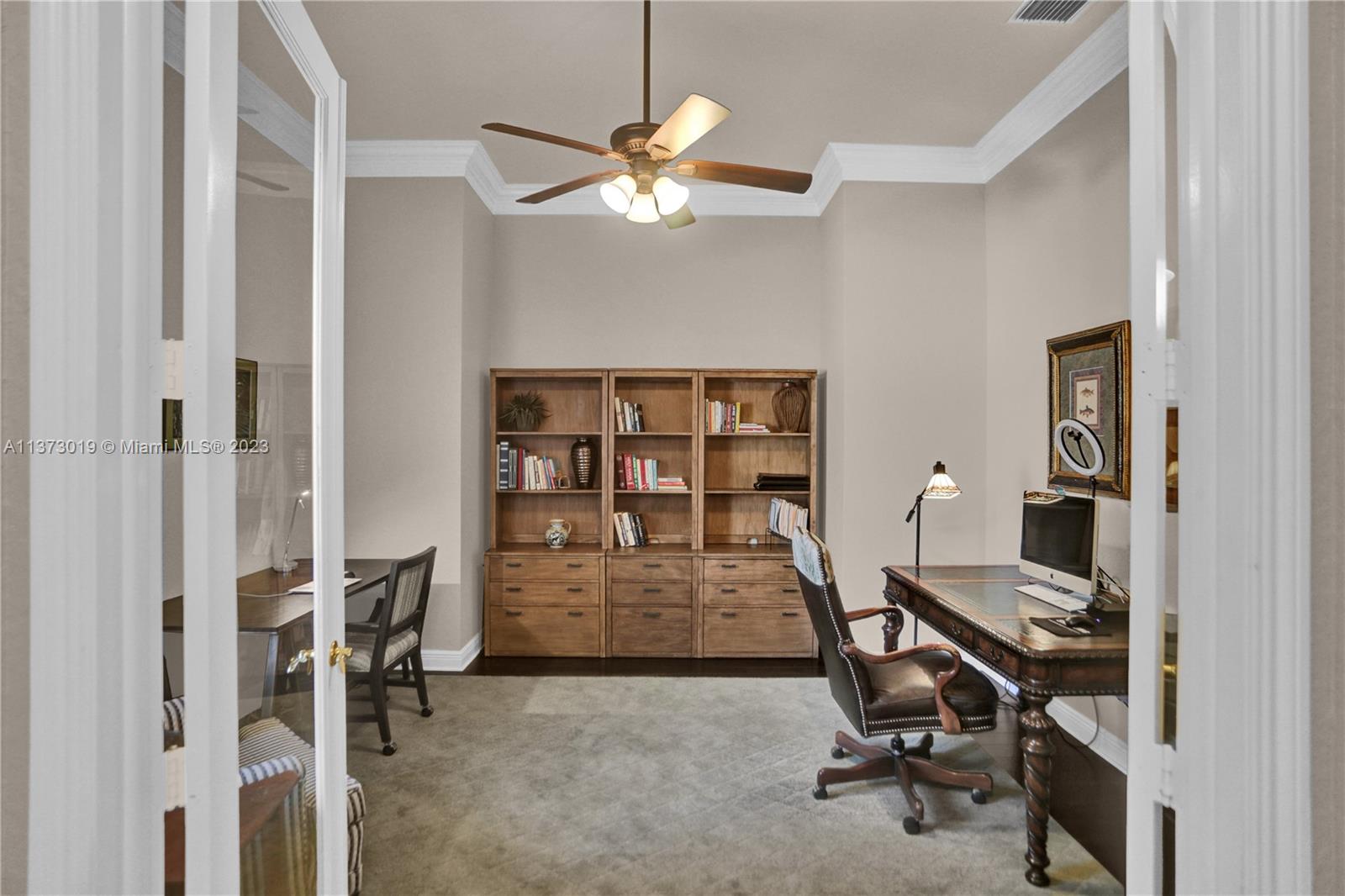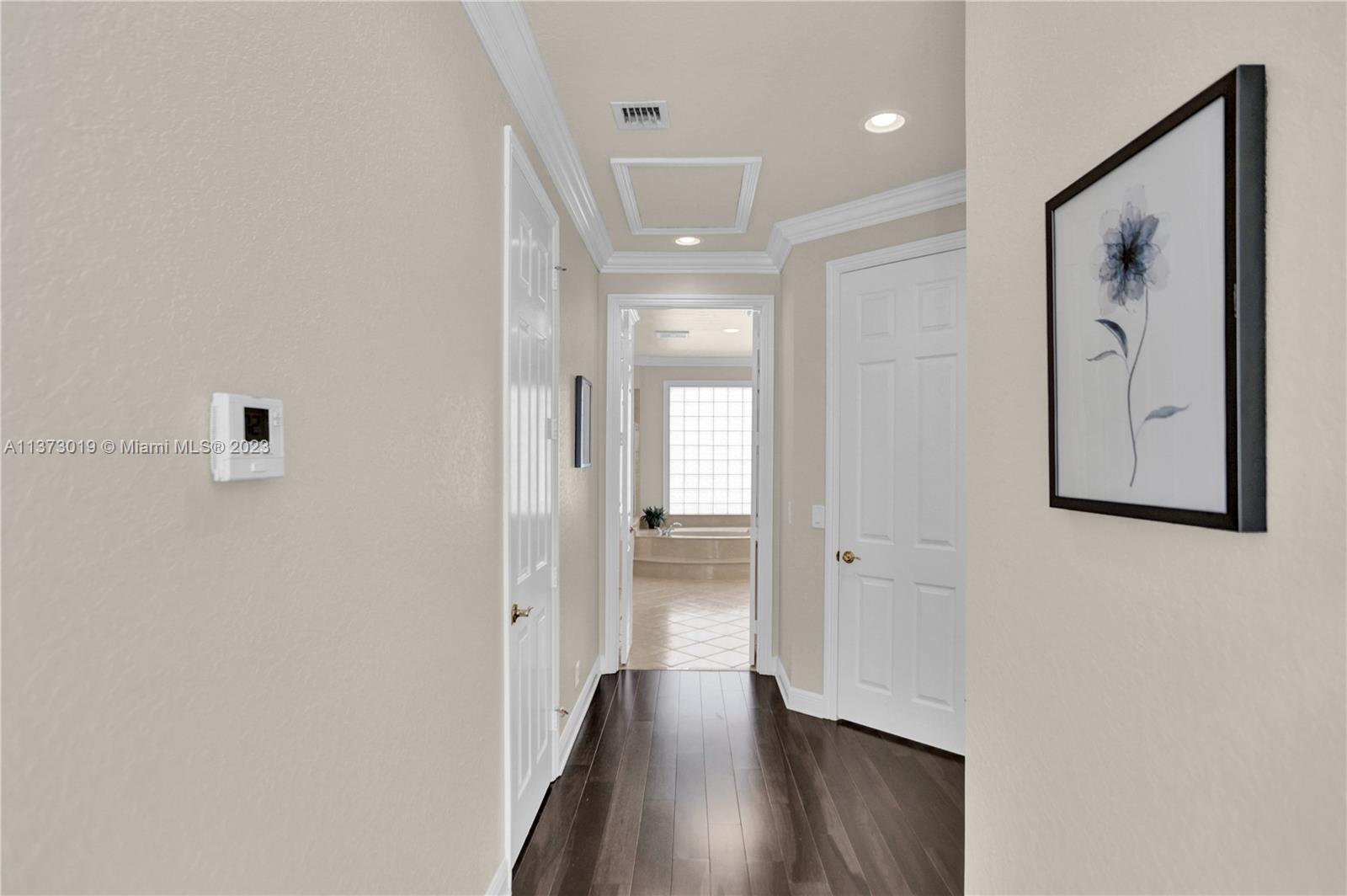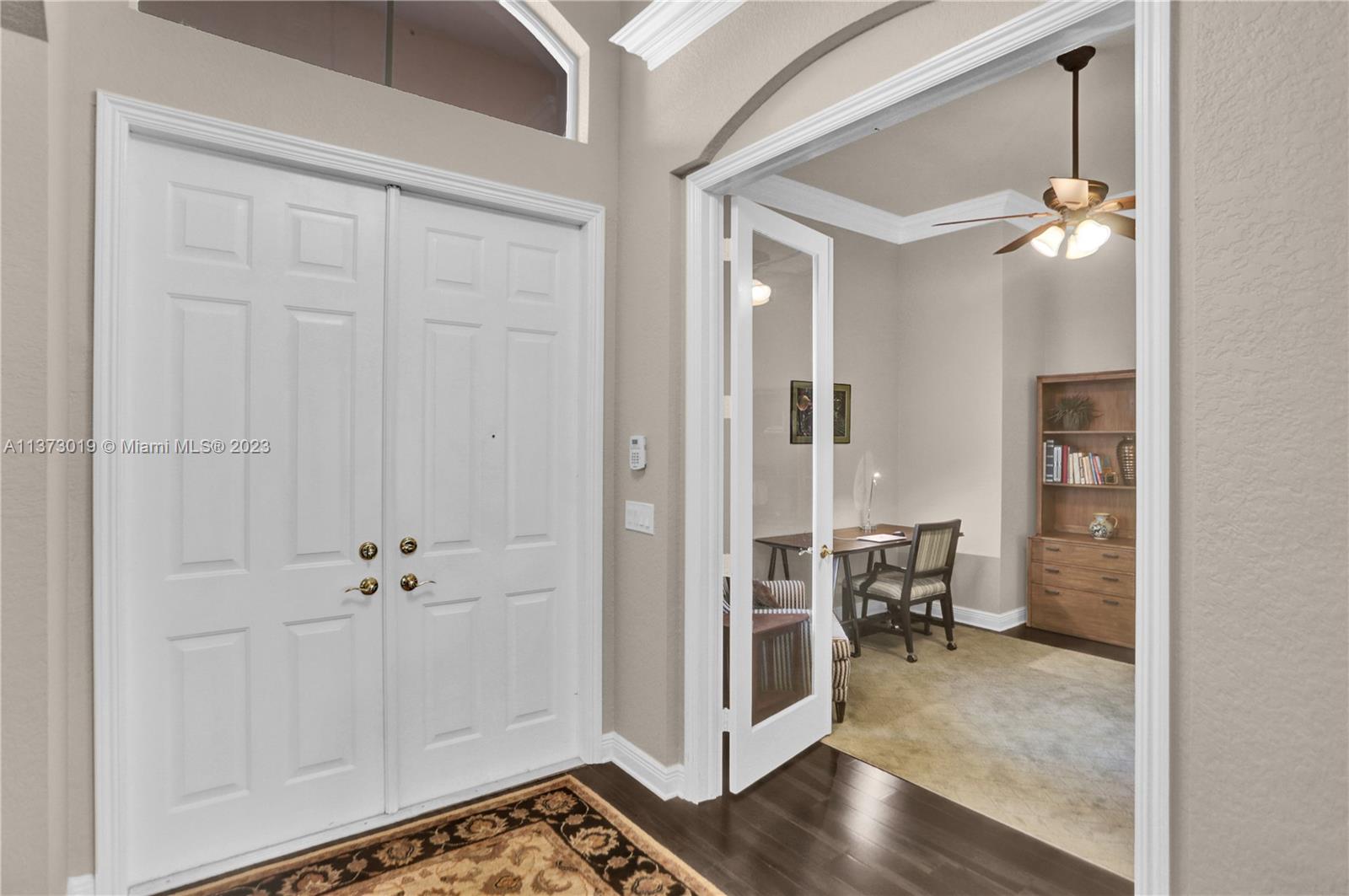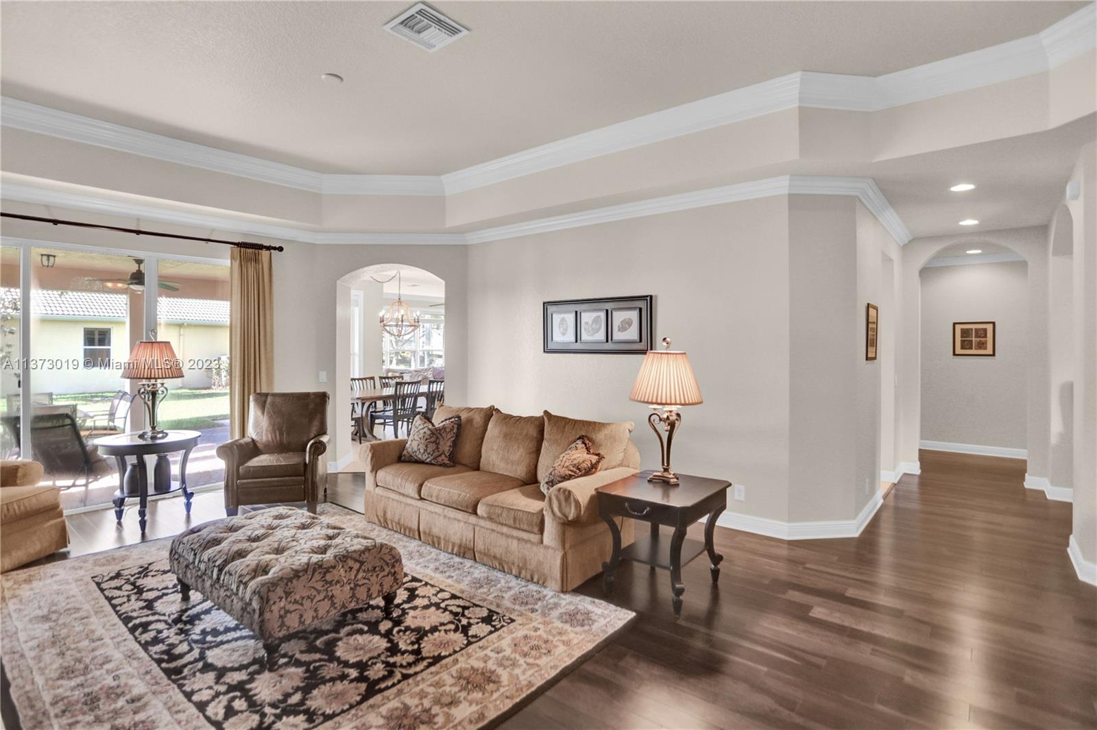 This beautiful 4bed, 3.5bath home plus a separate den/office in desirable Country Glen offers a perfect blend of style & function. The spacious open floor plan features high ceilings & a tastefully remodeled kitchen with granite countertops, stainless steel appliances & chef-inspired features. The one-story design offers updated bathrooms & a triple split floor plan ensuring privacy & comfort for all, plus tile & hardwood floors, crown molding & plantation shutters. A serene water view & large corner lot provide an idyllic setting & the circular driveway & 3-car garage offer great curb appeal combined with convenience & practicality. This guard-gated community offers tennis, volleyball & more in a great central location. Top-rated schools & a tranquil lifestyle - this is THE ONE!!!