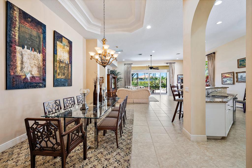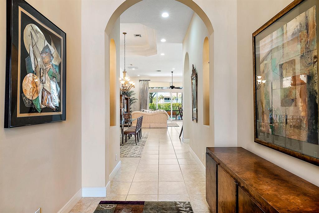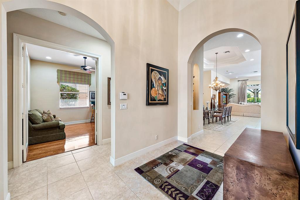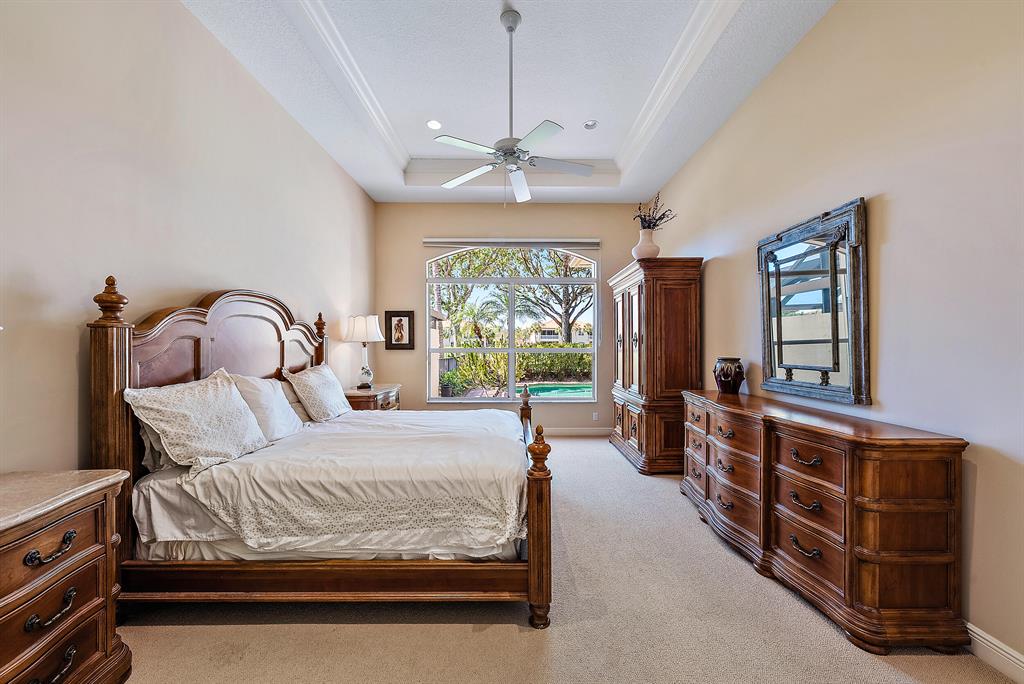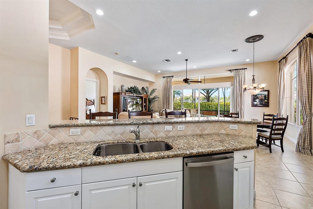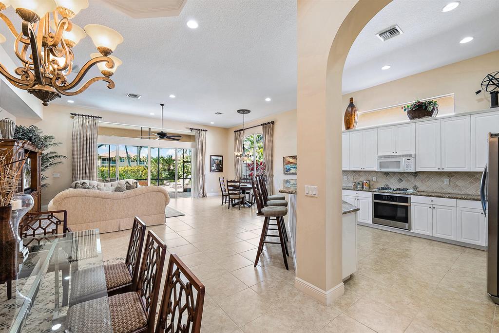 Light, bright, and move-in ready, this south-facing great room home boasts soaring ceilings, a lushly landscaped pool overlooking Tradition #8. Neutral tones, and timeless designer touches enhance this 3BR/2.5BA+Den home. The spacious kitchen opens to the family room providing a true great room plan. Oversized primary bedroom, and handsome wood floors in the den. Accordian hurricane shutters provide convenience and protection. The Club at Ibis is an award-winning community that boasts a 90,000 sq. ft. clubhouse, three 18-hole Nicklaus-family Championship golf courses, five restaurants, a world-class fitness complex and spa, and incredible tennis and pickleball facility.