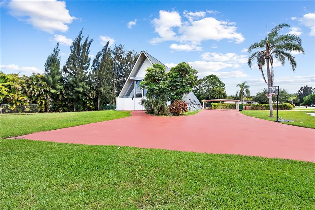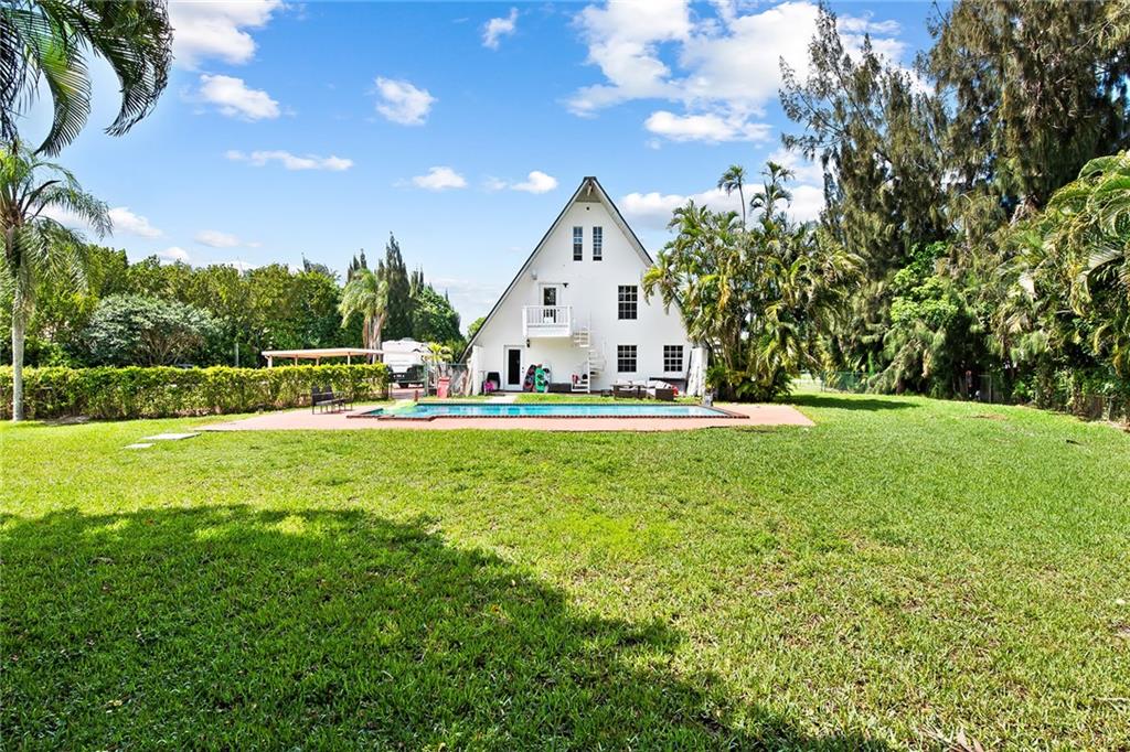 Come experience this spectacular sleek A-Frame style home located on a builder's acre corner lot in the highly desirable neighborhood of Paradise Farms. As you step inside, you'll be captivated by the breathtaking finishes & contemporary design. The interior of this home features an open concept living area, vaulted ceilings, exposed wood paneling, custom-built kitchen, brand new appliances, porcelain tile flooring, fully equipped smart home & more. Brand new 2023 metal roof & Hurricane impact windows on the way. Private backyard tropical oasis with a pool perfect for relaxing or entertaining. This quiet & secluded neighborhood with no HOA has excellent rated schools & is close to all major highways. Keep your RV, boat and other toys right at home. This home must be seen to be believed!