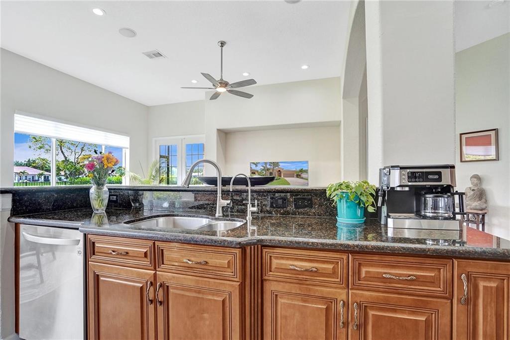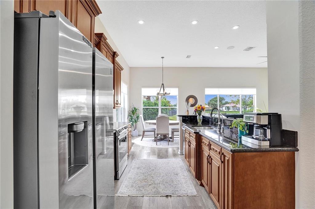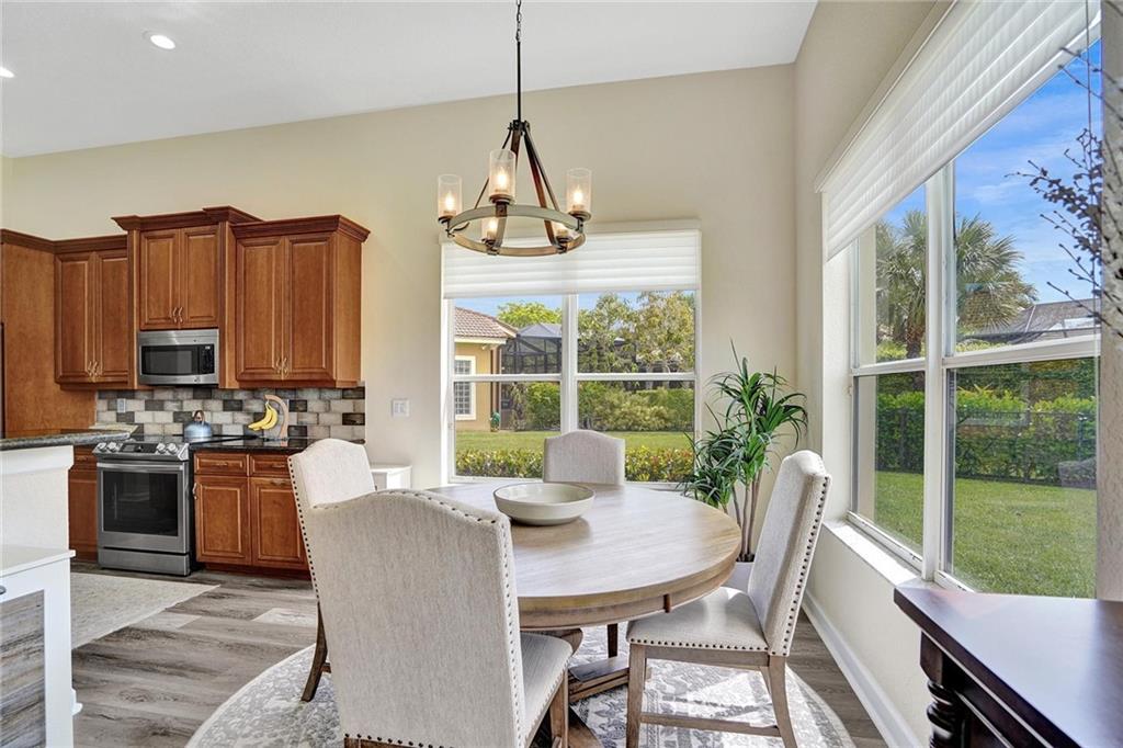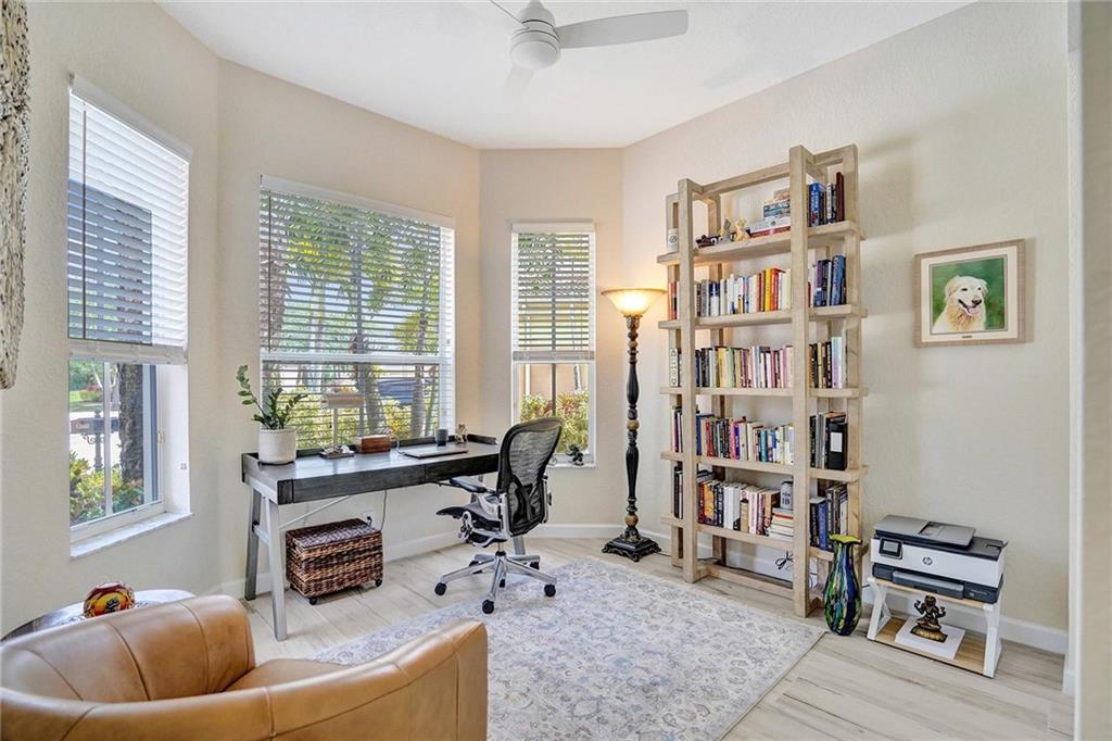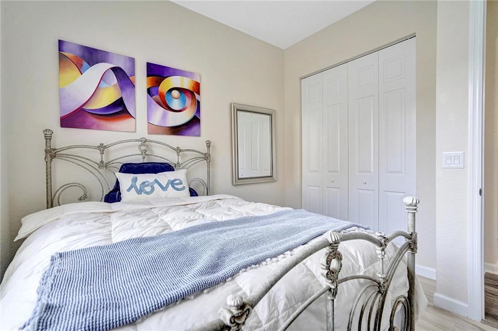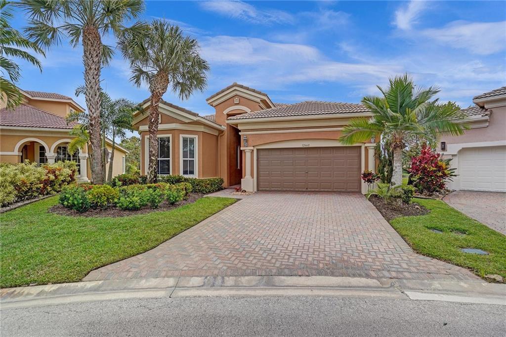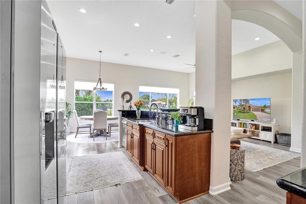 Expansive, updated 3 Bedroom waterfront home on oversized Cul du Sac, fenced lot. Contemporary, open plan w foyer entry, volume ceilings & lake views. Featuring wide plank wood laminate flooring throughout the main areas, wood plank porcelain tile floors in the bedrooms & baths. Spacious living areas, huge kitchen w island, rich wood cabinetry, under counter lighting accents, granite counters, new stainless appliances & plumbing fixtures. Big Master Suite, walk-in closet & stylish updated bathroom w separate tub & large shower. Good sized Bedrooms 2 & 3 w adjacent bath. Lakeside screened patio w fenced yard and privacy hedges. Close by resort caliber pool, clubhouse, gym, party rooms, tennis & pickleball. HOA includes lawn care. Special financing incentives available w Sirva Mortgage.